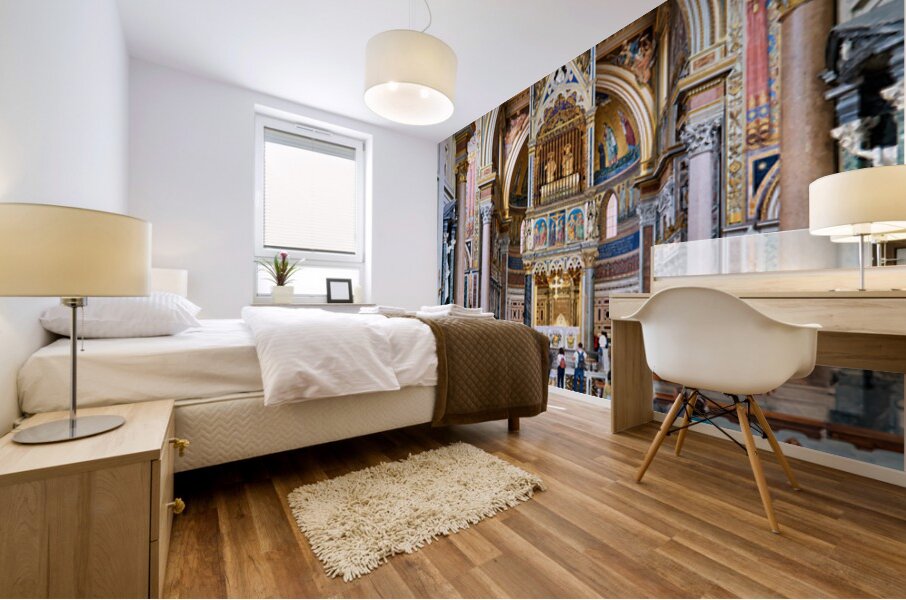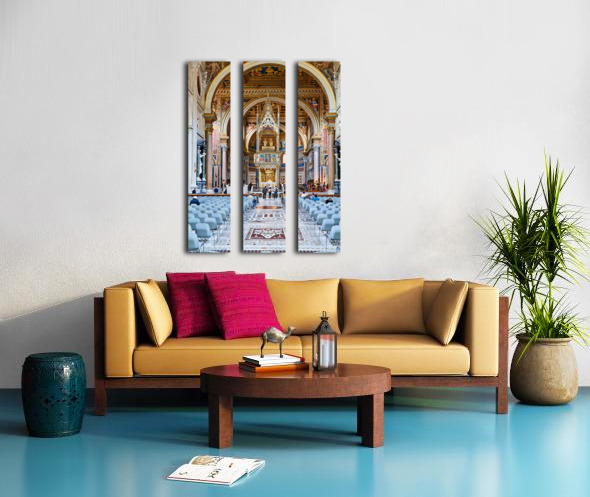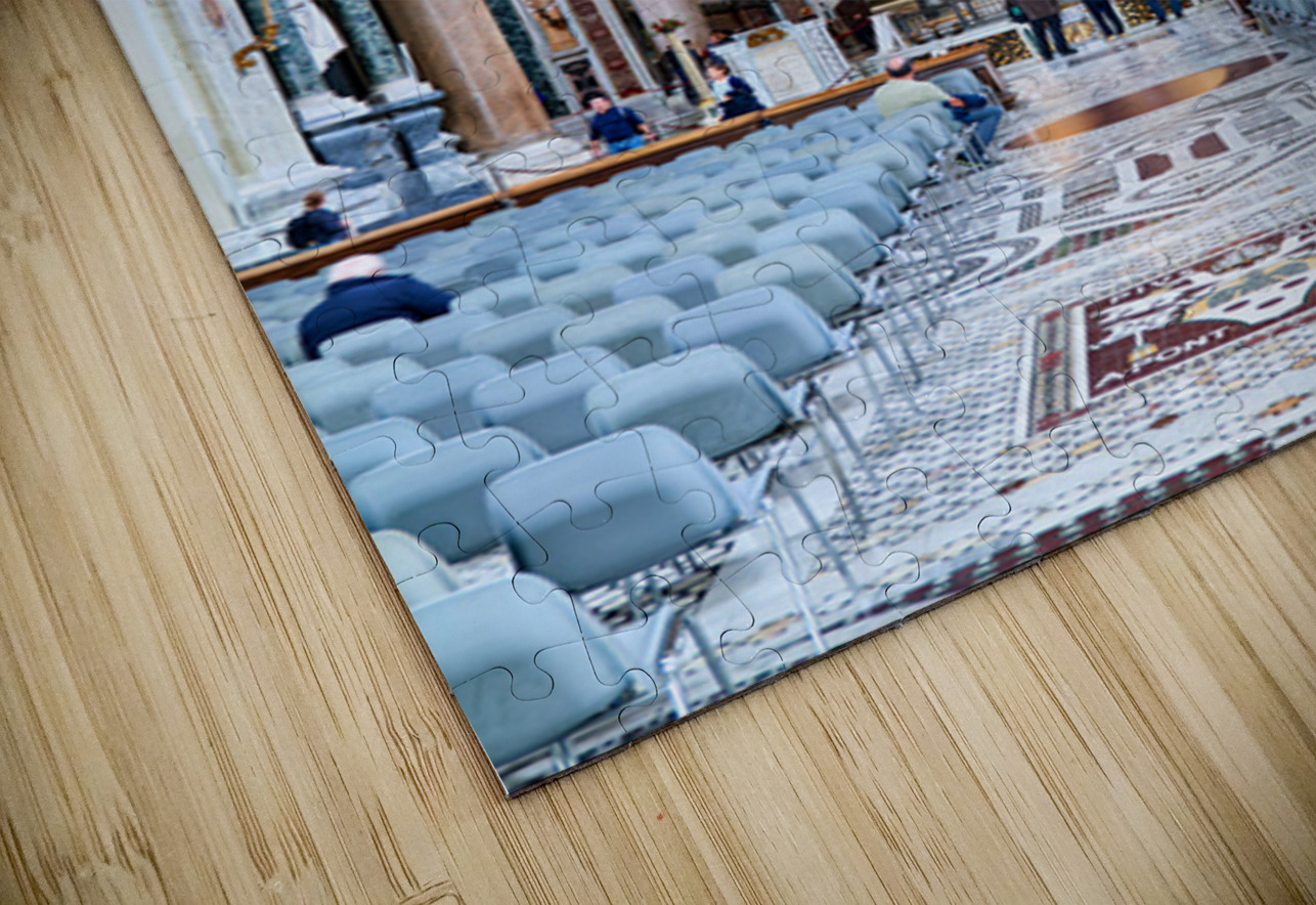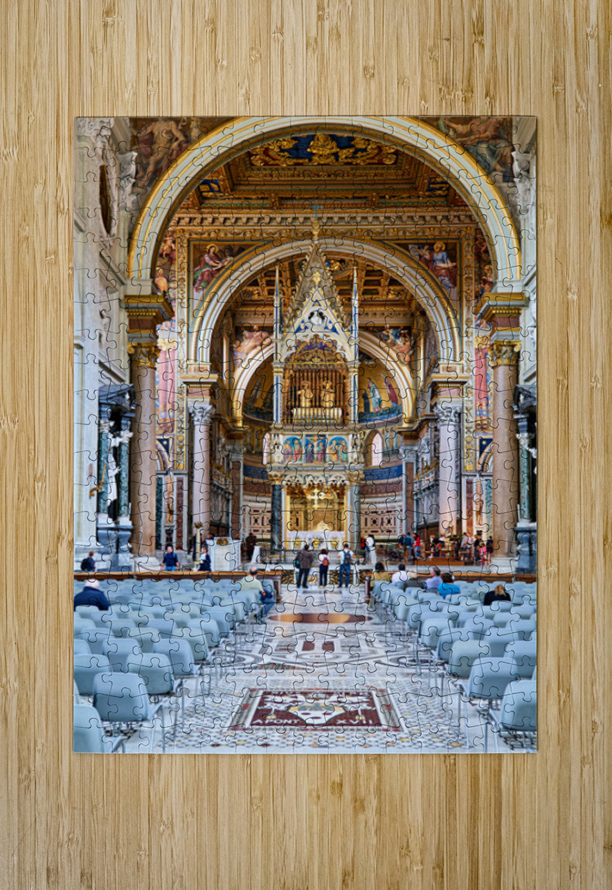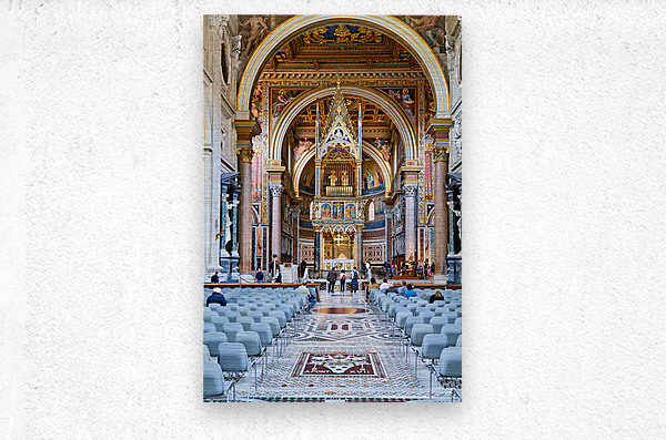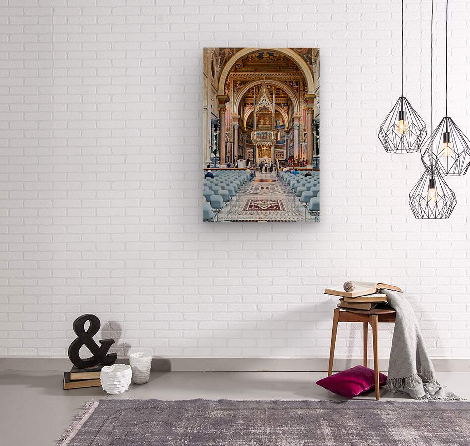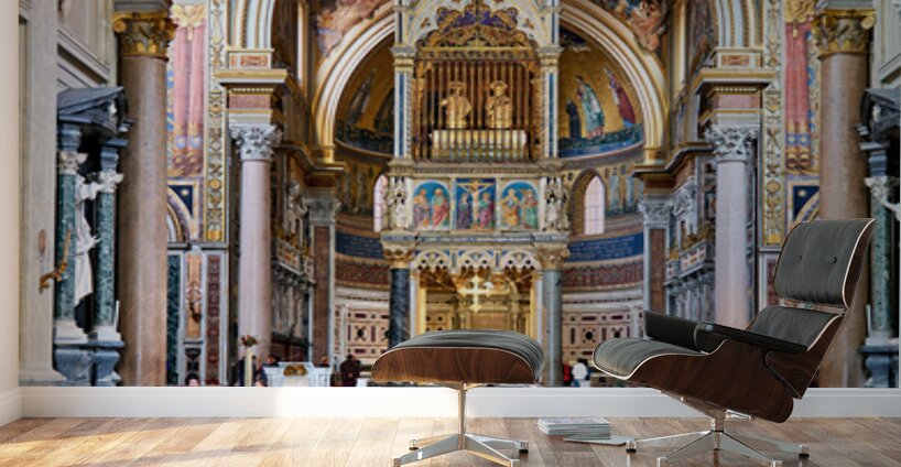 "Visitors explore the Archbasilica Cathedral in Rome Italy" in a framed print.