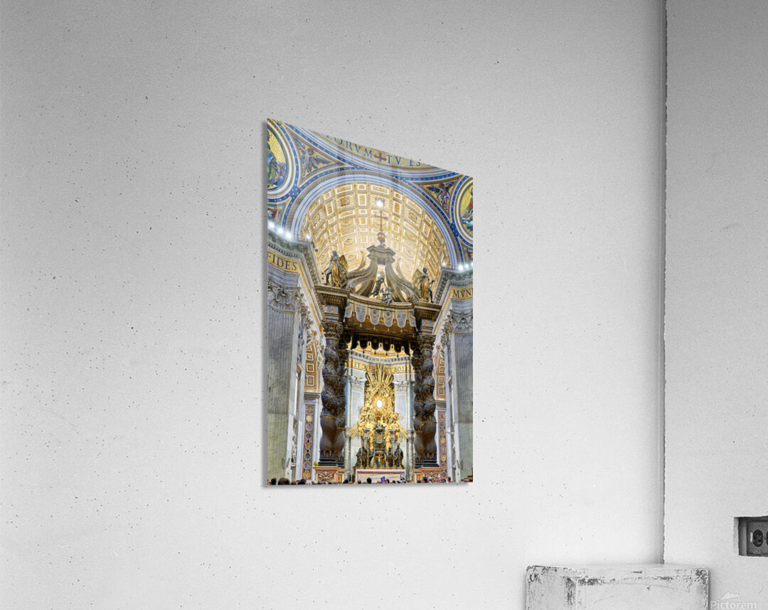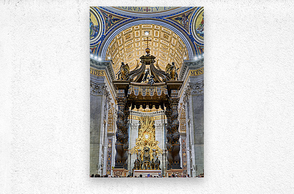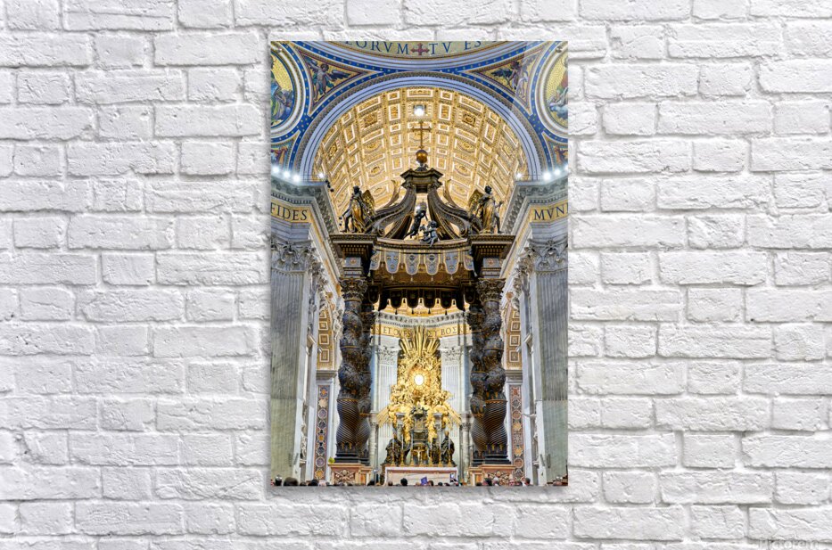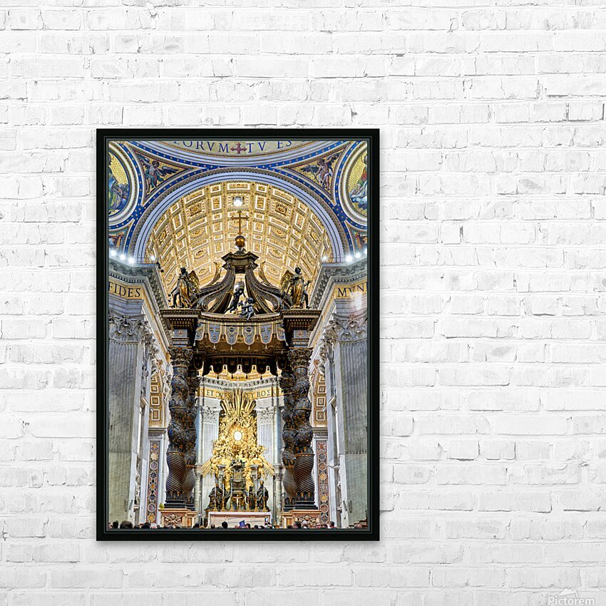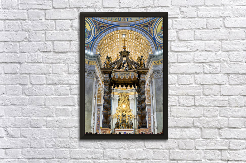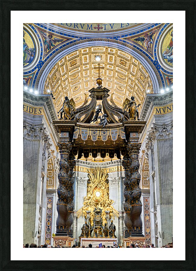 "Visiting the altar with Berninis baldacchino in St. Peters Bas" in a framed print.
