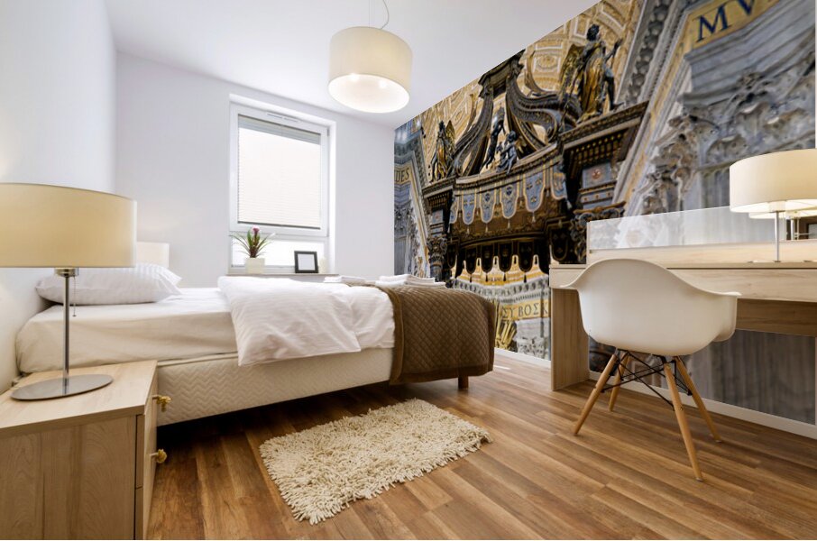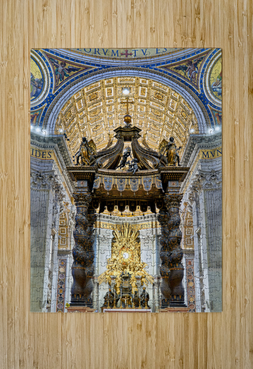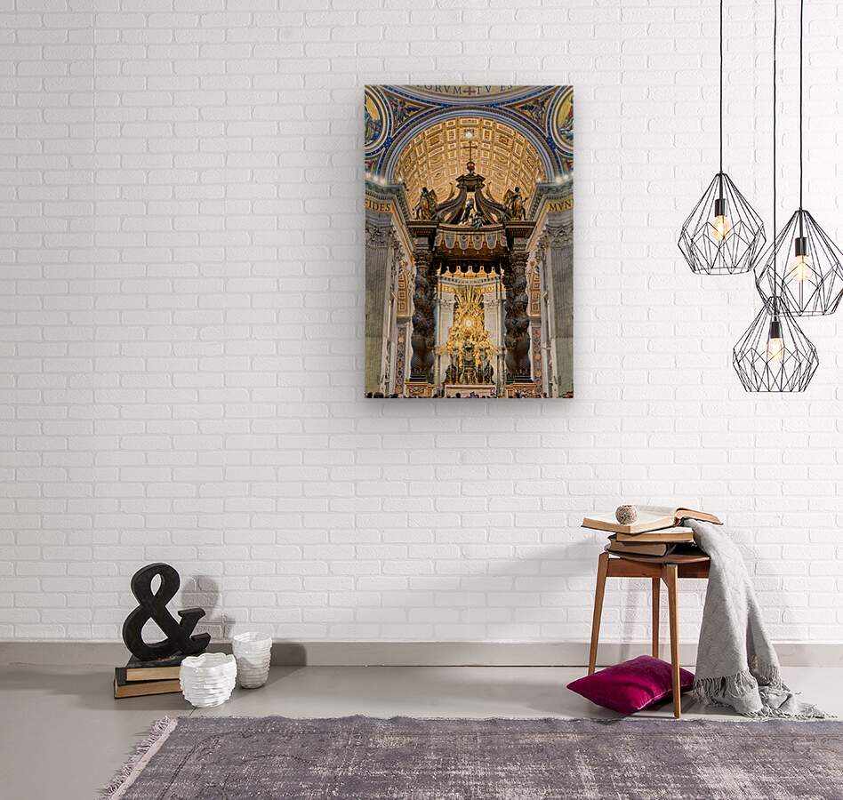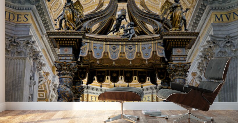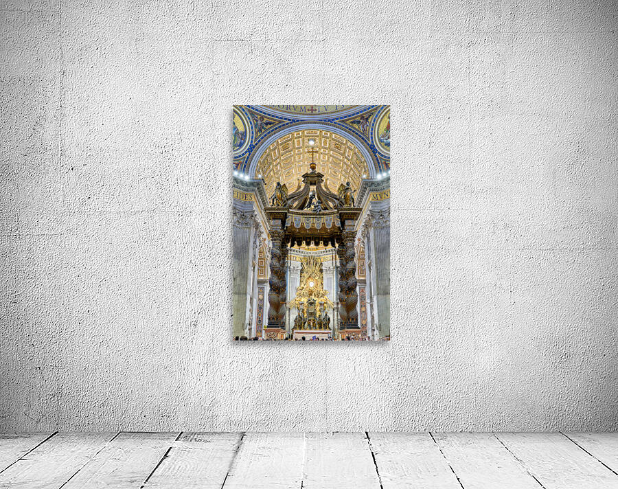 "Visiting the altar with Berninis baldacchino in St. Peters Bas" in a framed print.