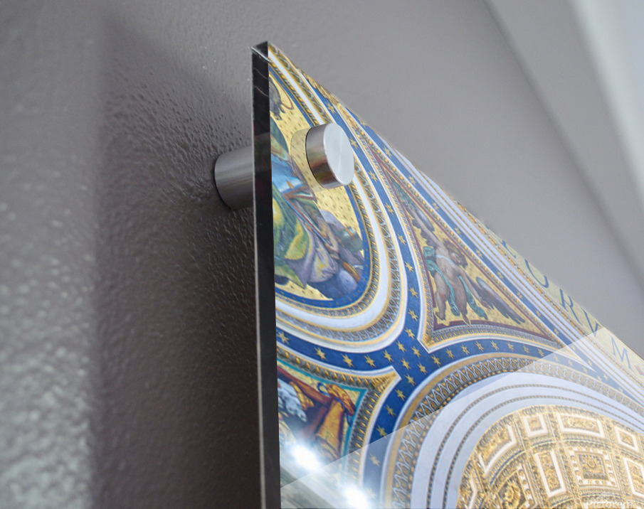 Printed to the edge - Ready to hang - provided with 4 premium polished aluminum stand off ( wall screws and mounting hardware provided )