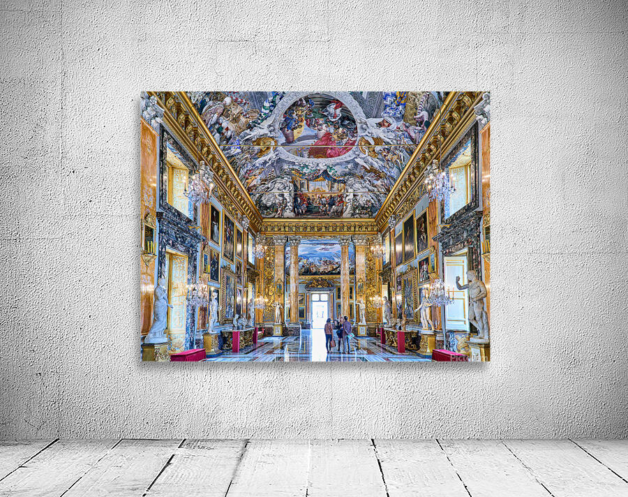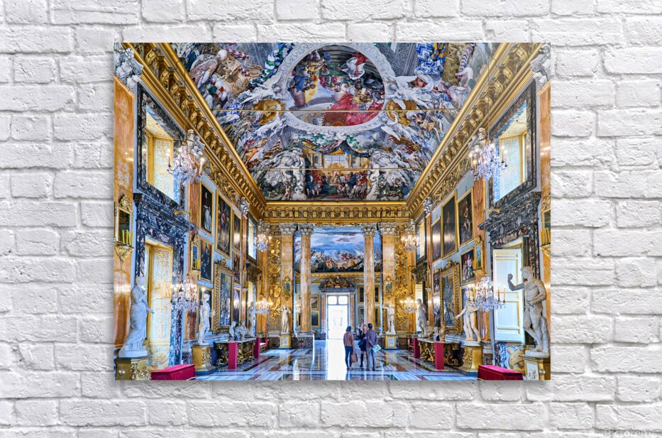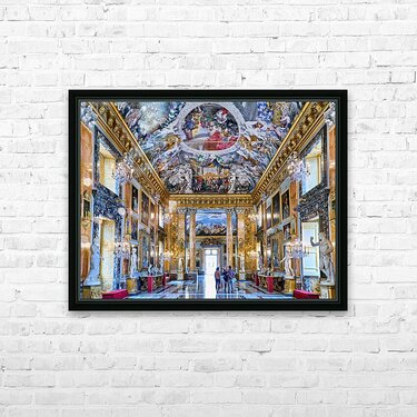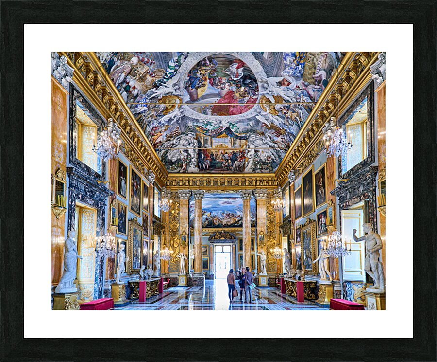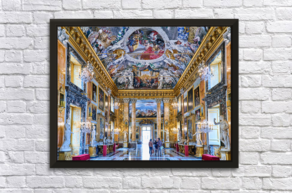 "Exploring the great hall at colonna art gallery in rome" in a framed print.