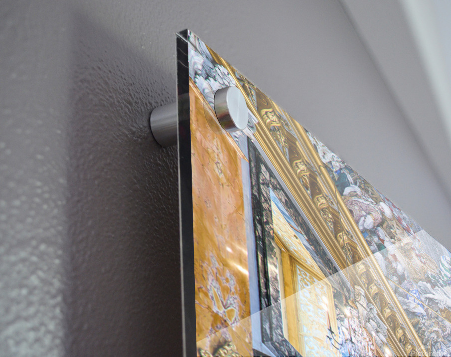 Printed to the edge - Ready to hang - provided with 4 premium polished aluminum stand off ( wall screws and mounting hardware provided )
