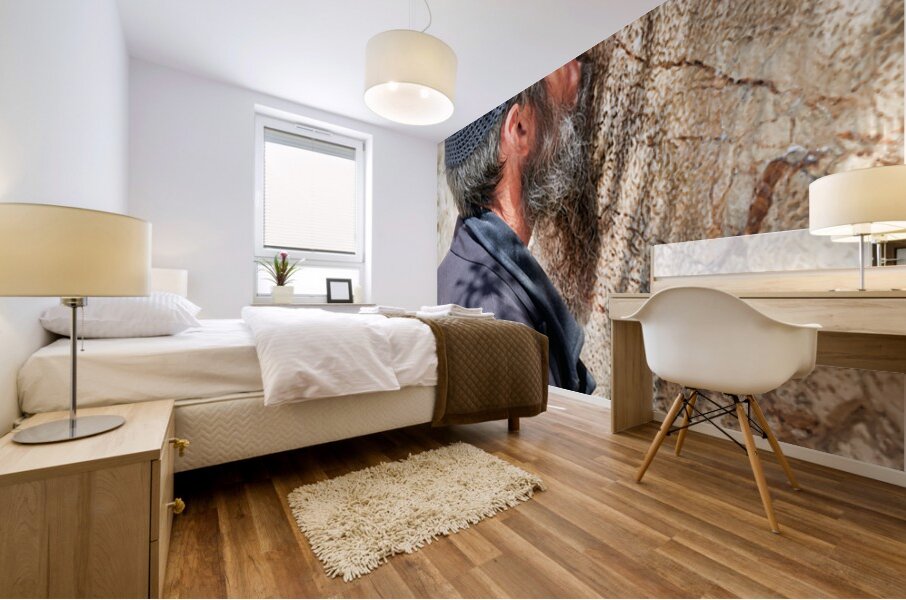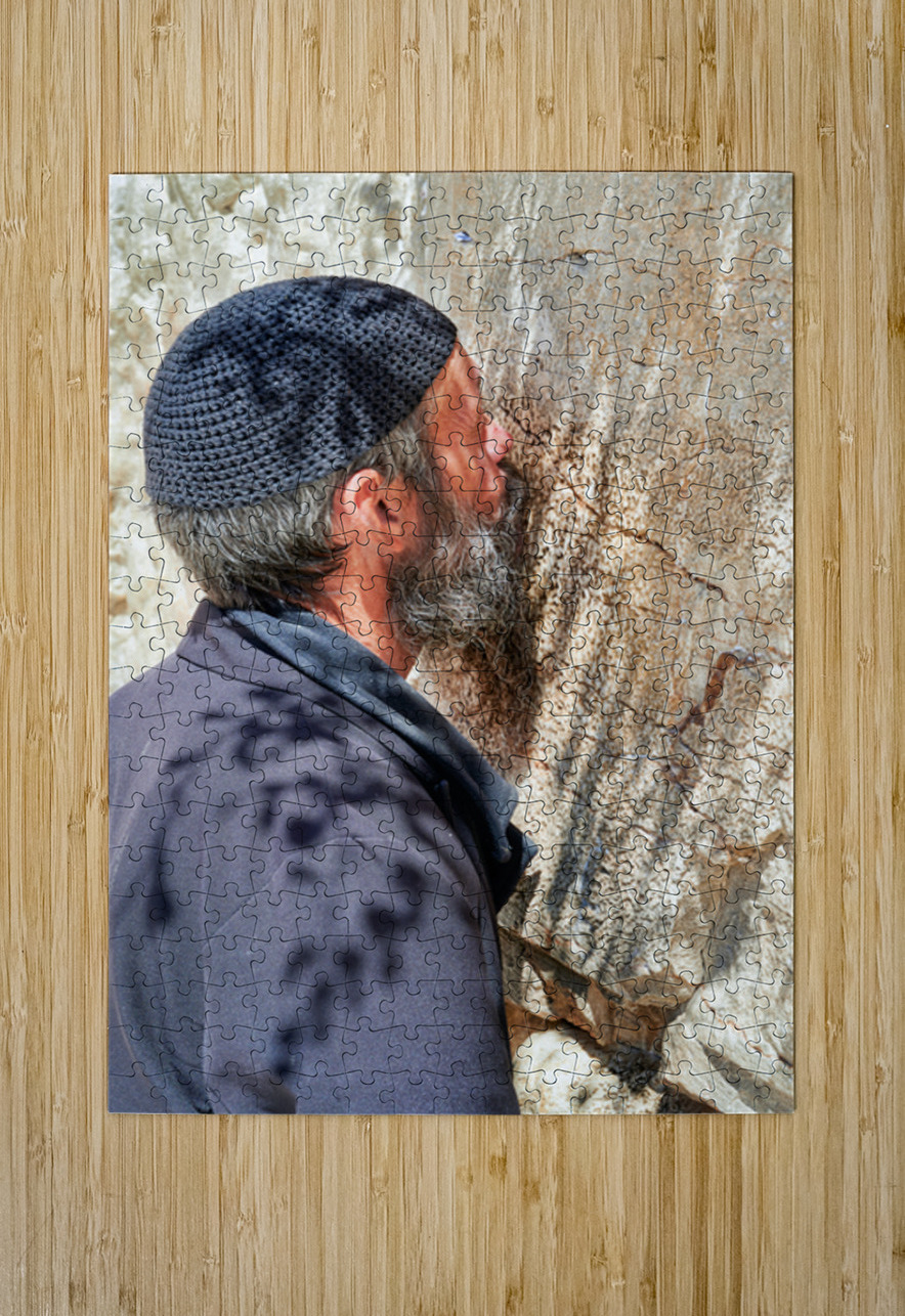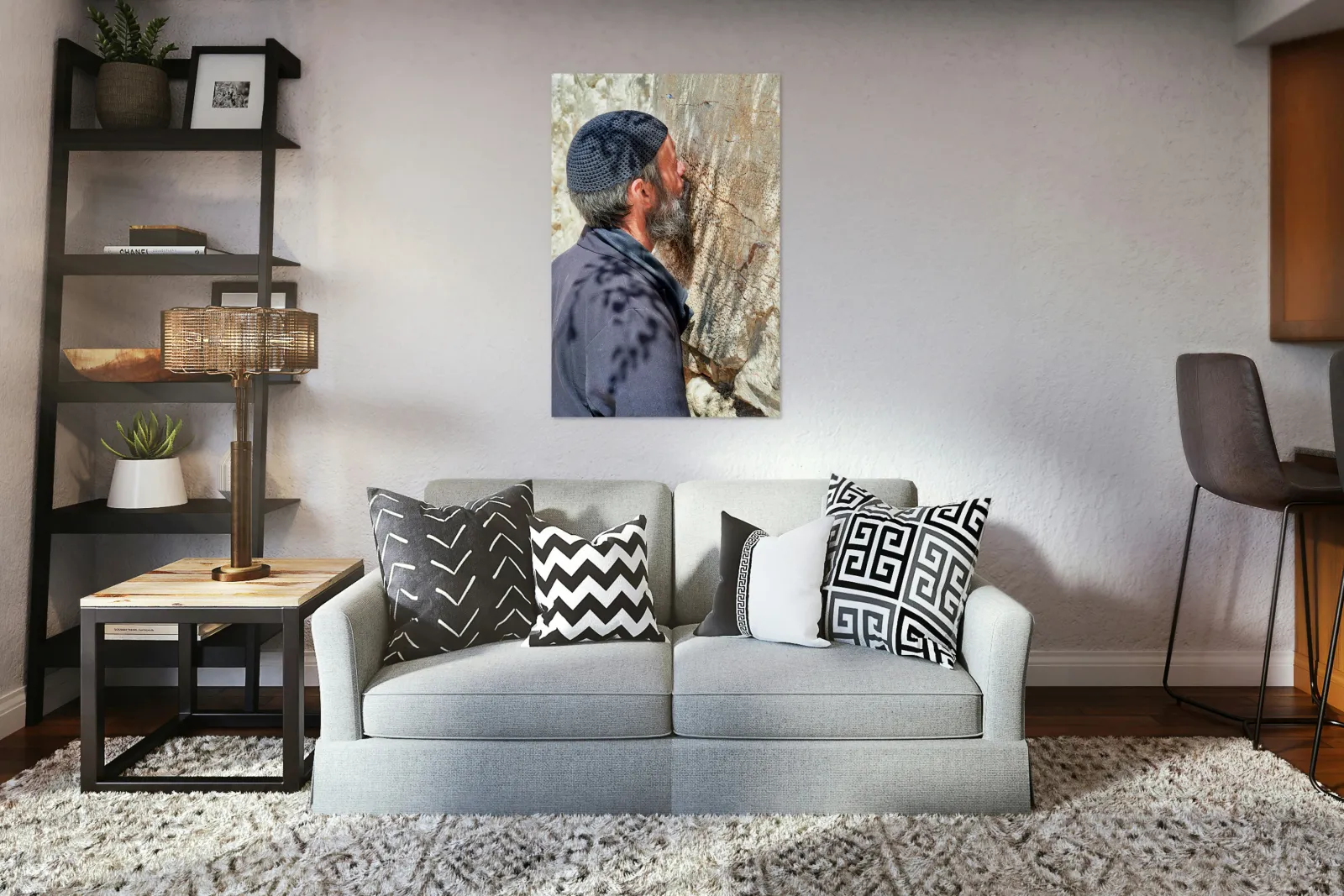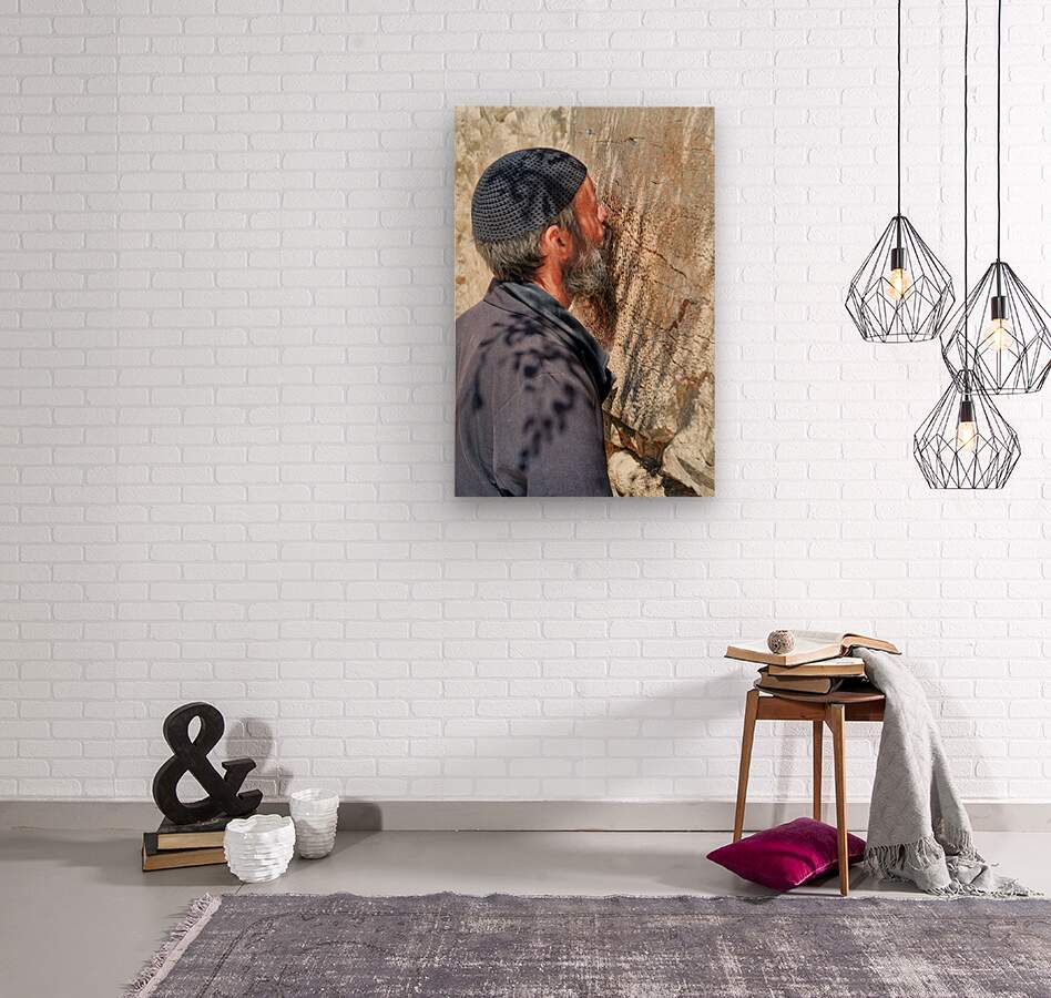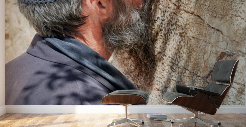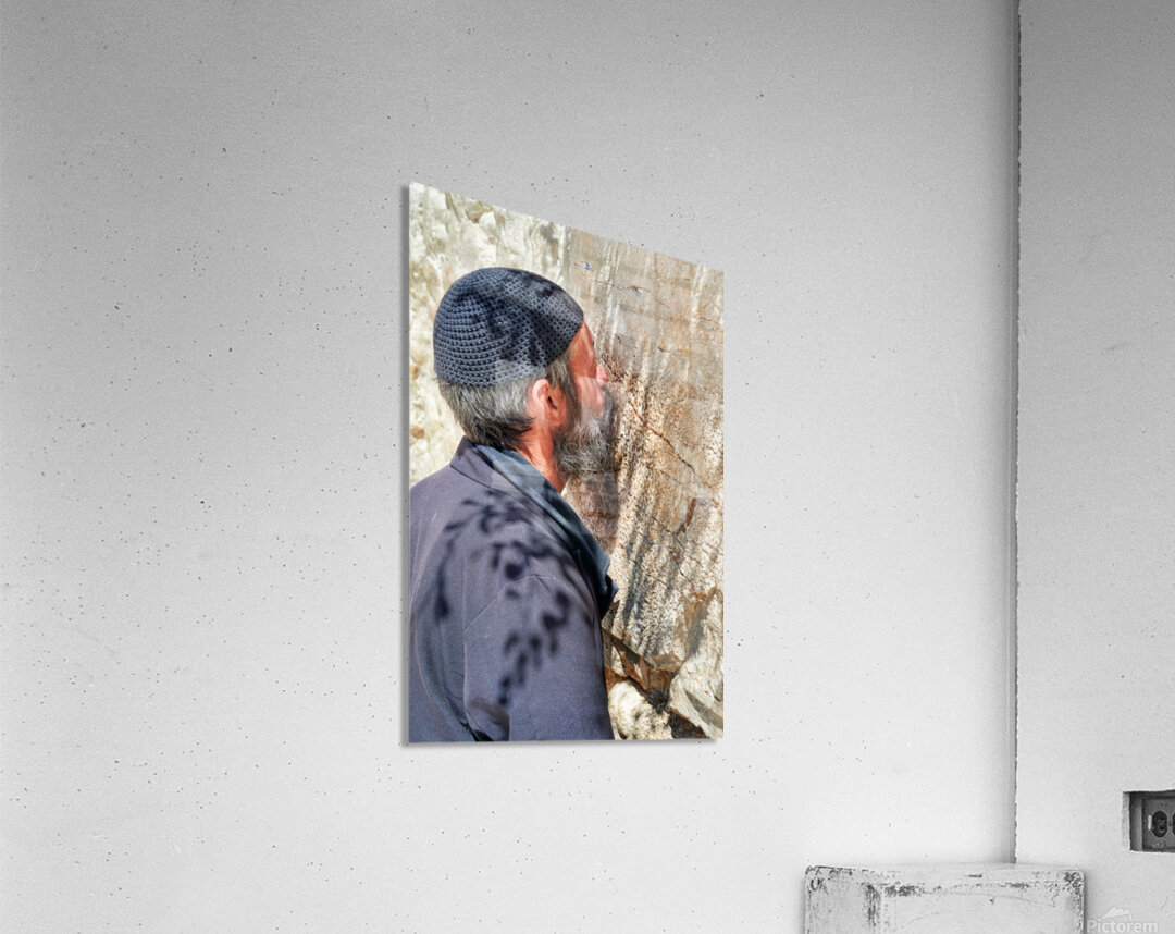 "Prayers at the wailing wall in jerusalem by orthodox jews" in a framed print.