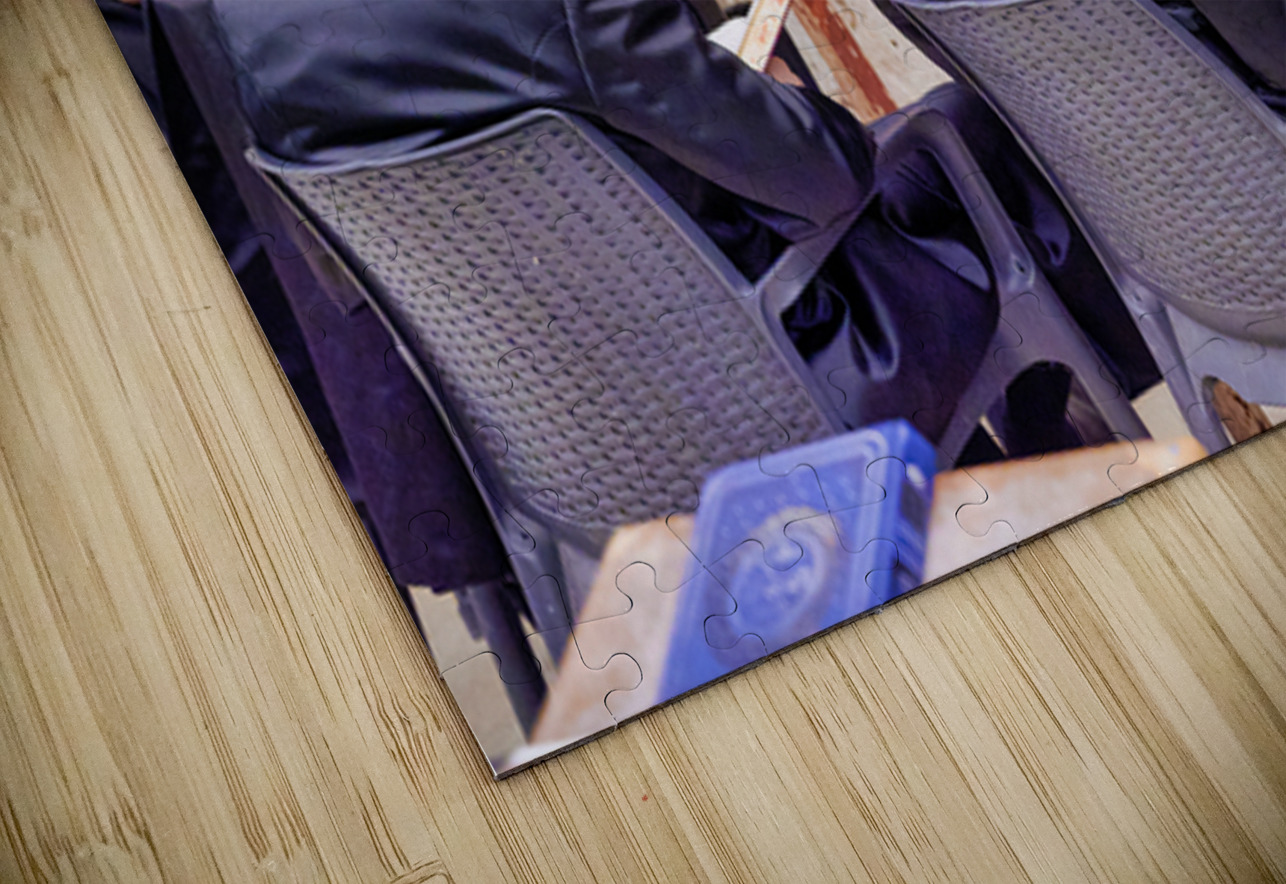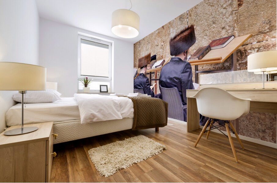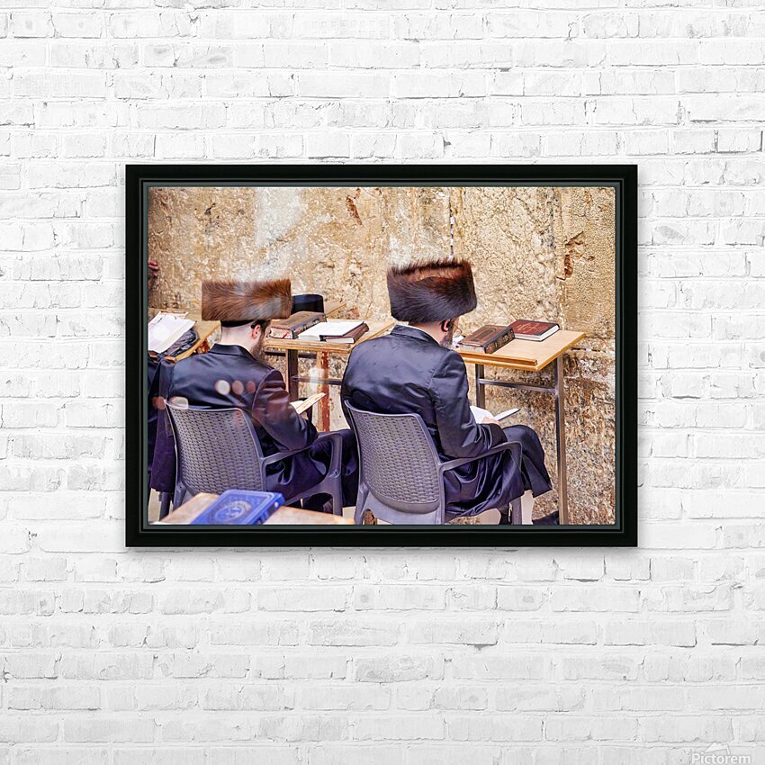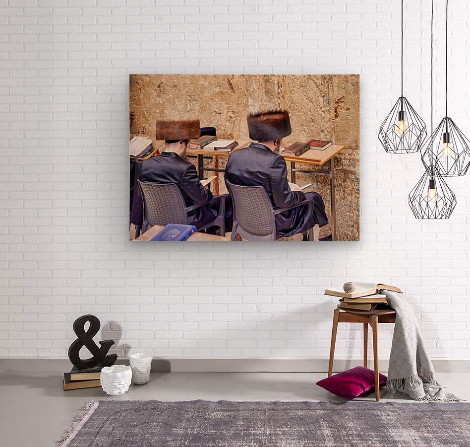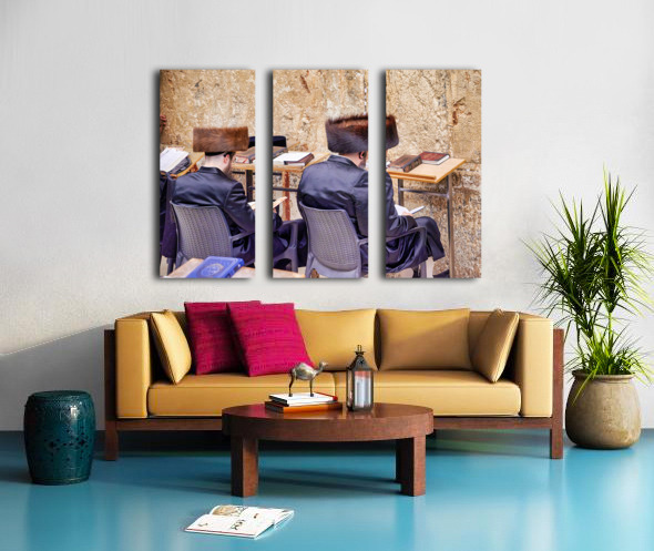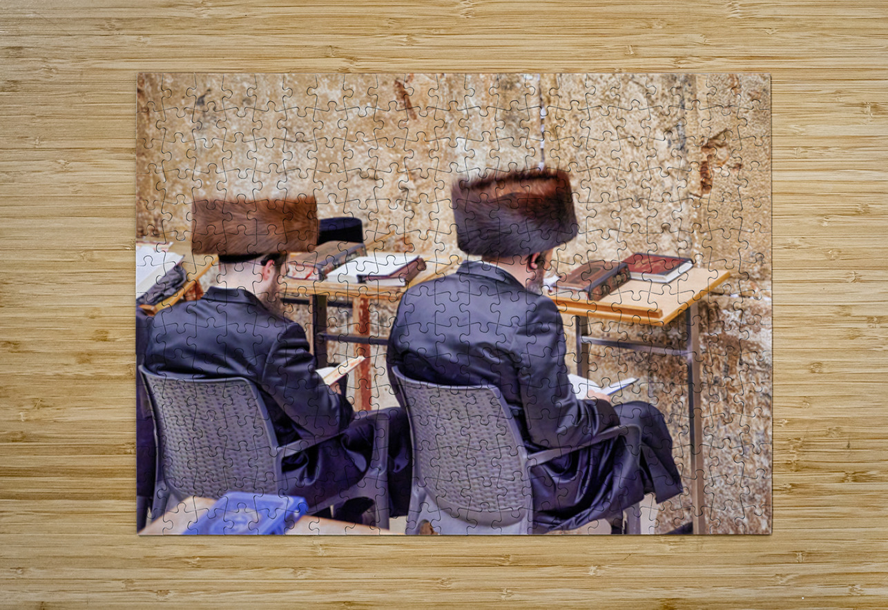 "Orthodox Jews sit at tables by the Western Wall in Jerusalem" in a framed print.