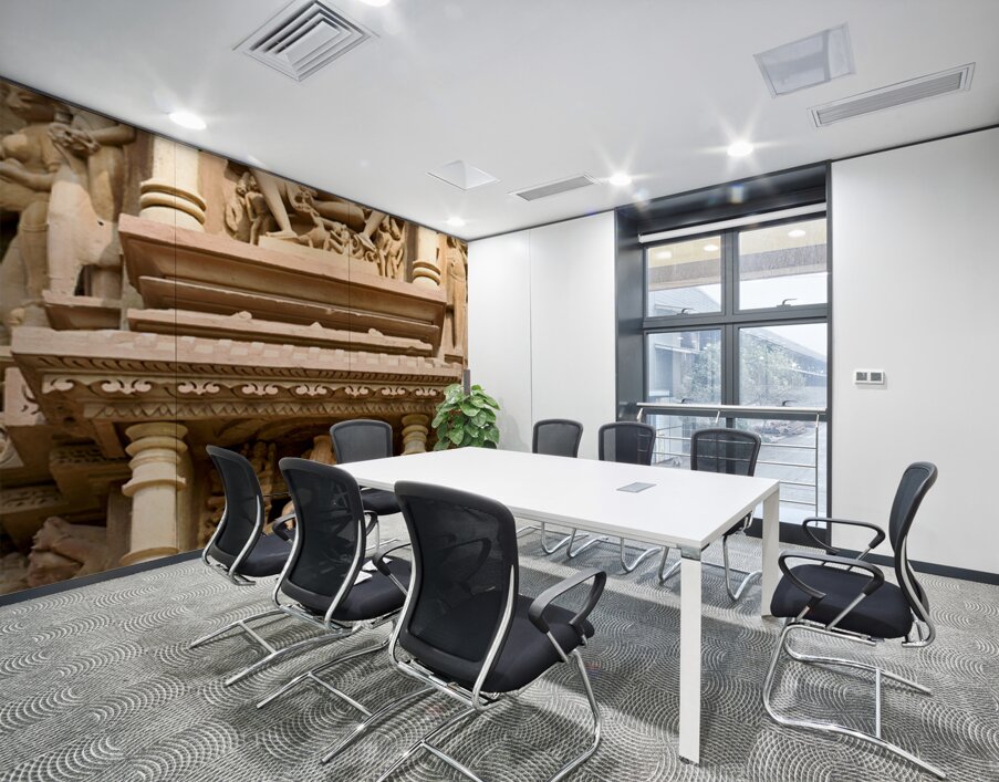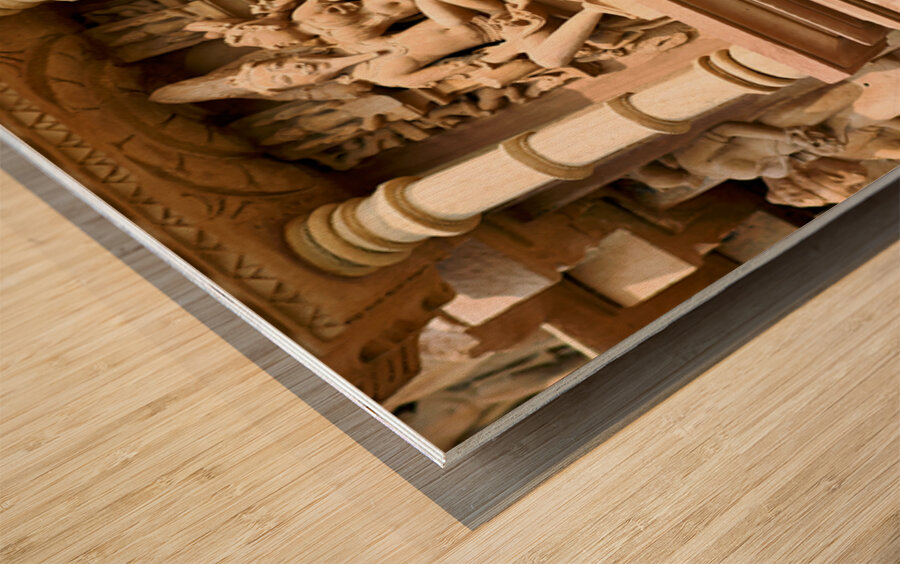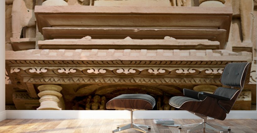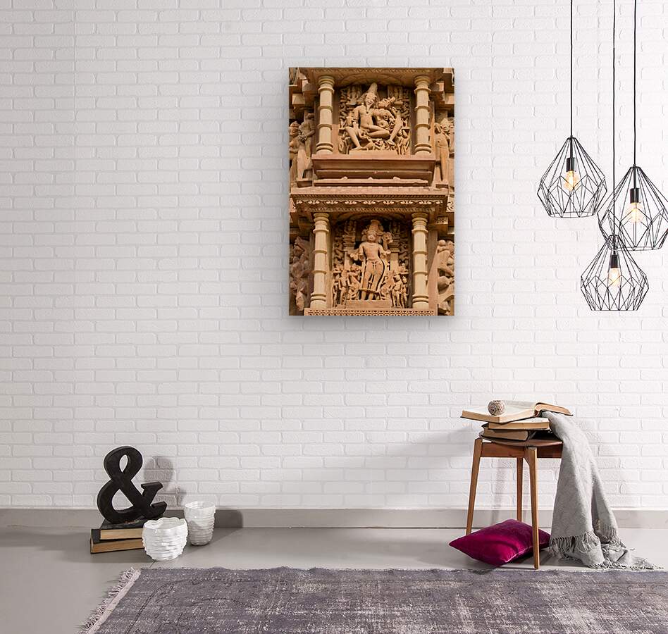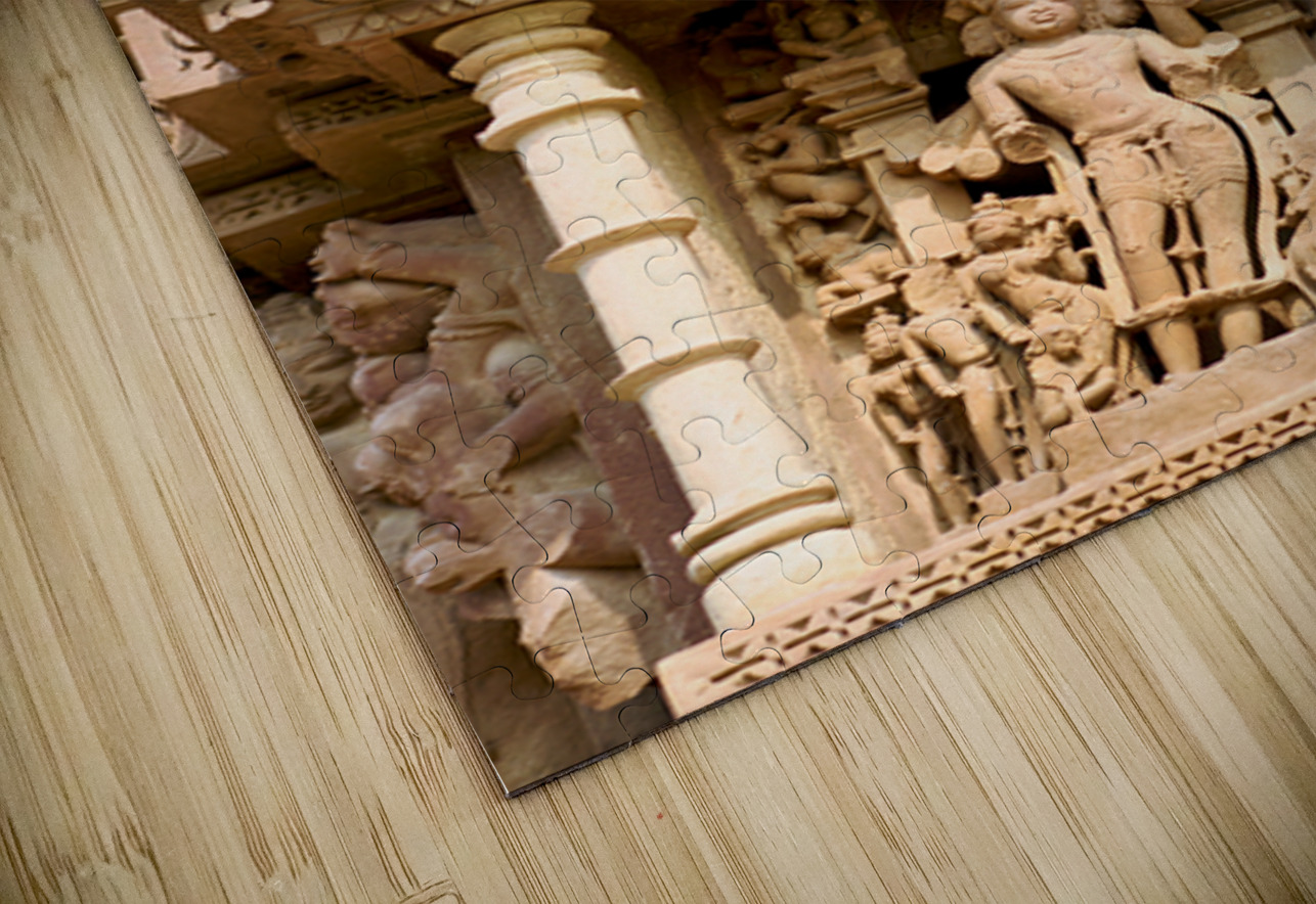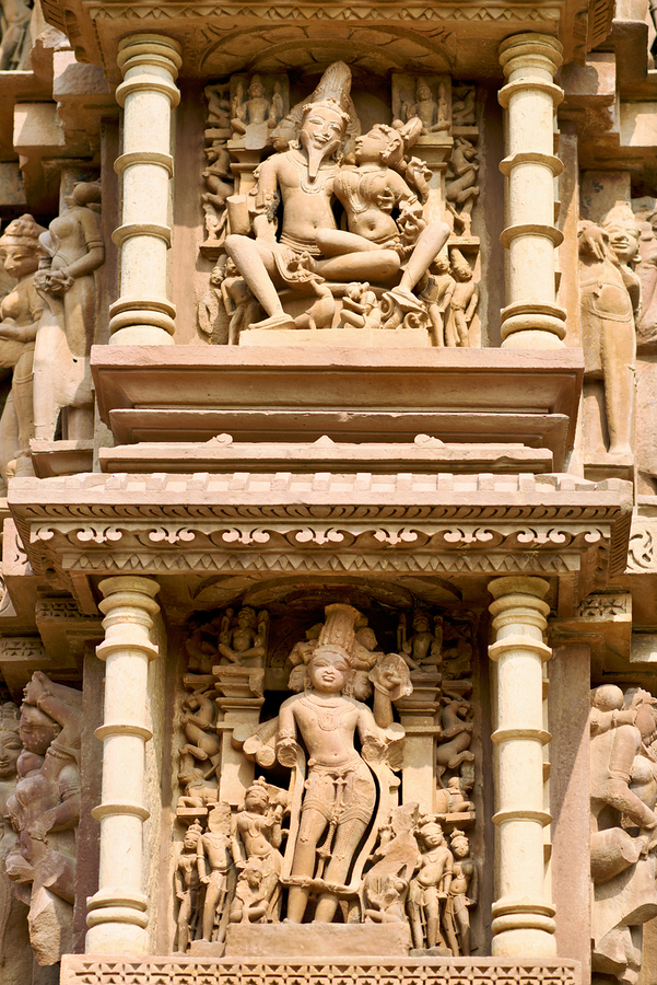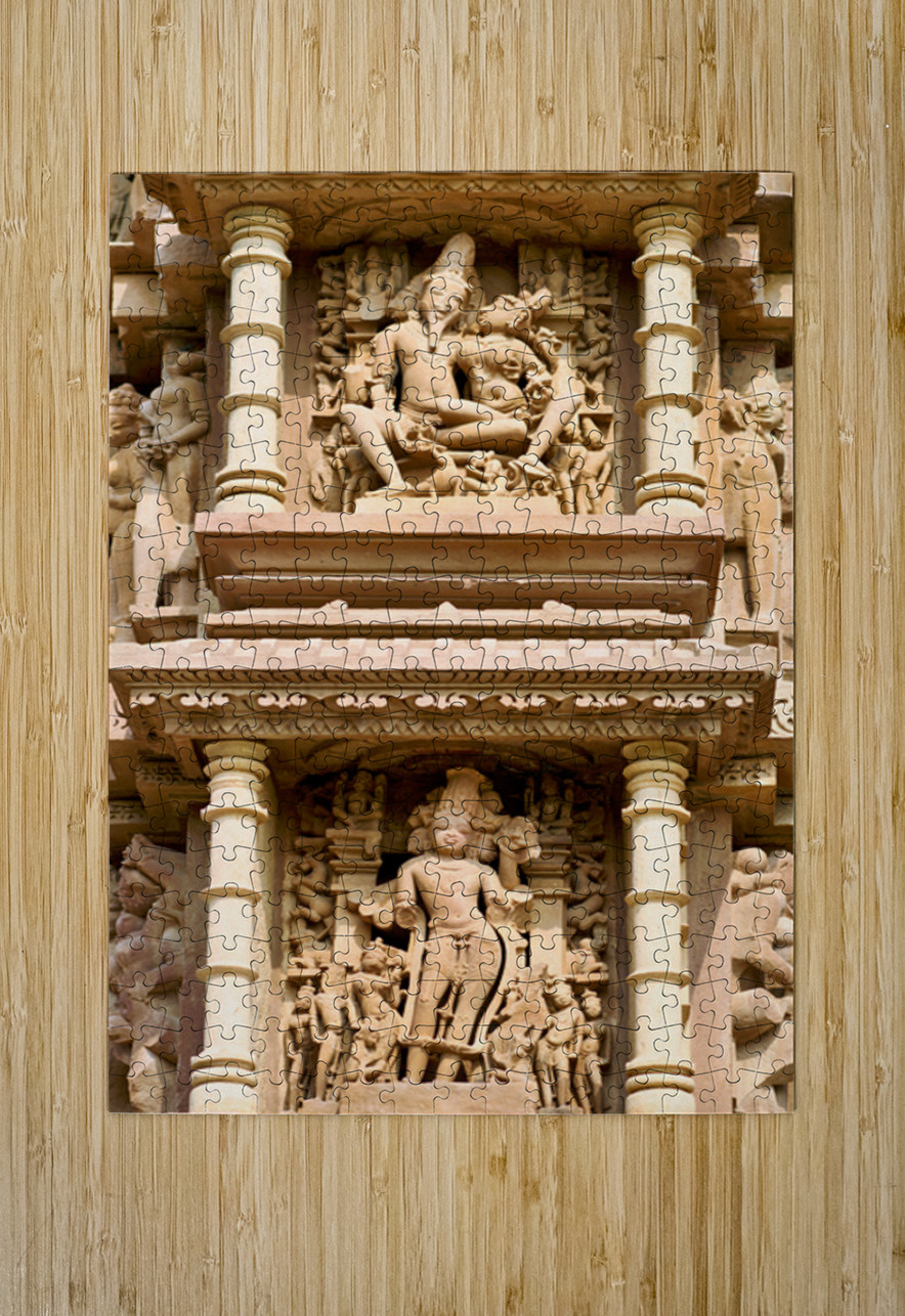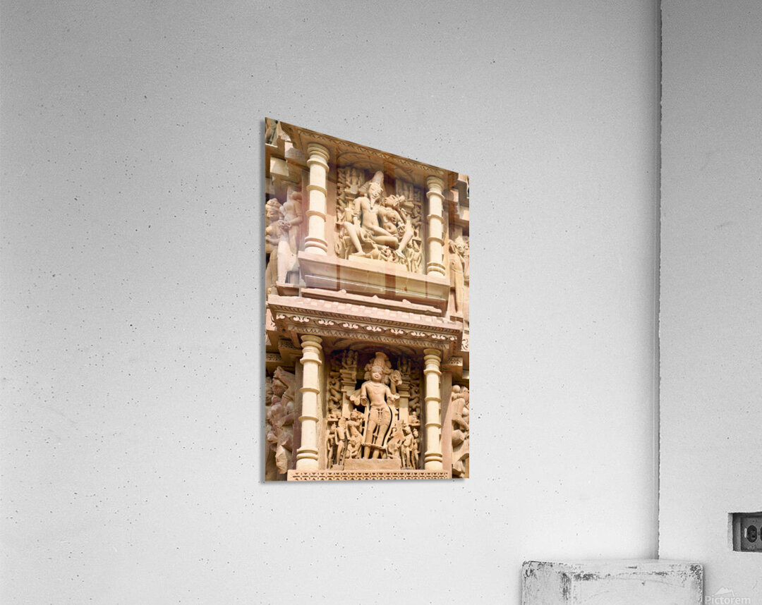 "Hindu erotic temples in Khajuraho Madhya Pradesh" in a framed print.