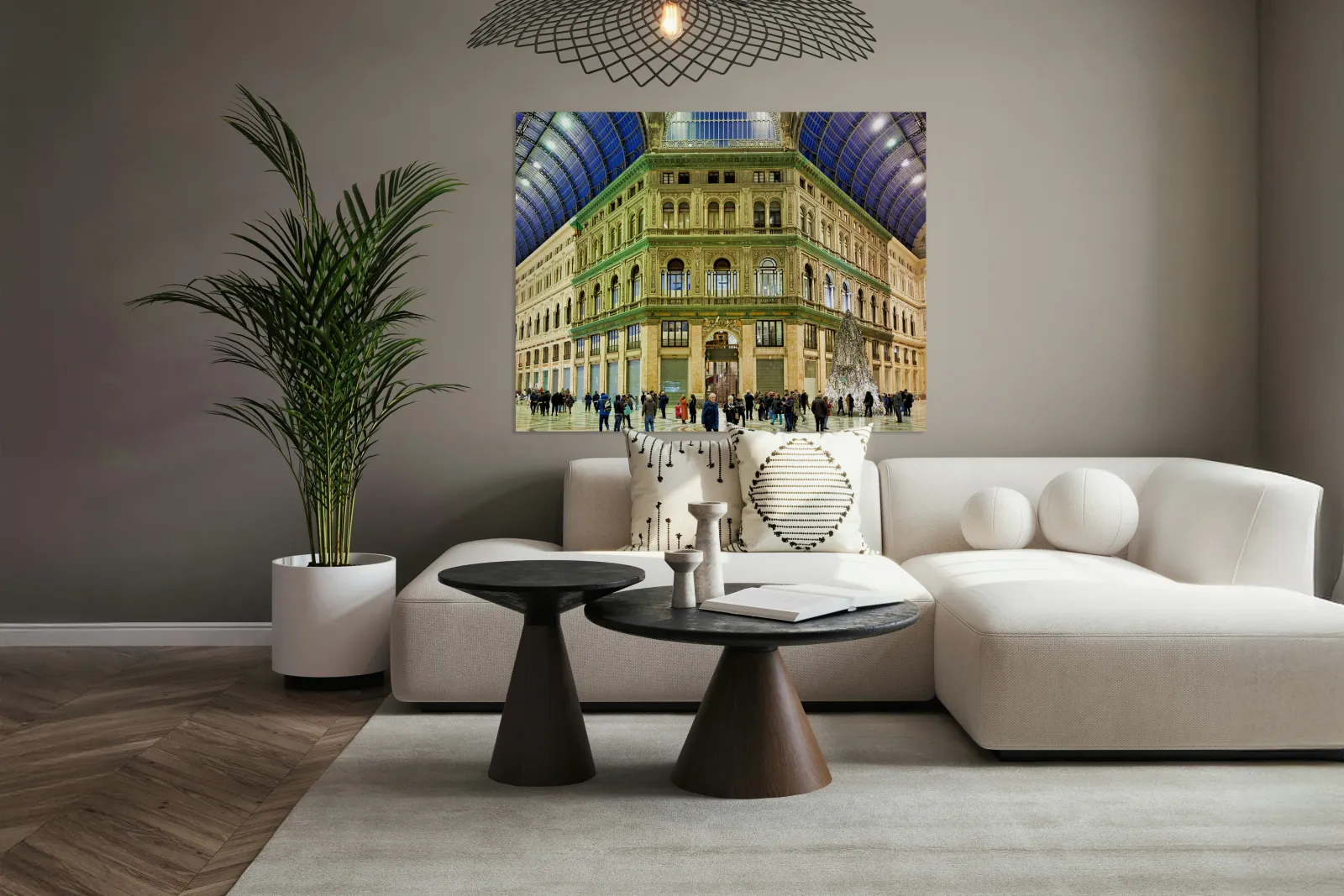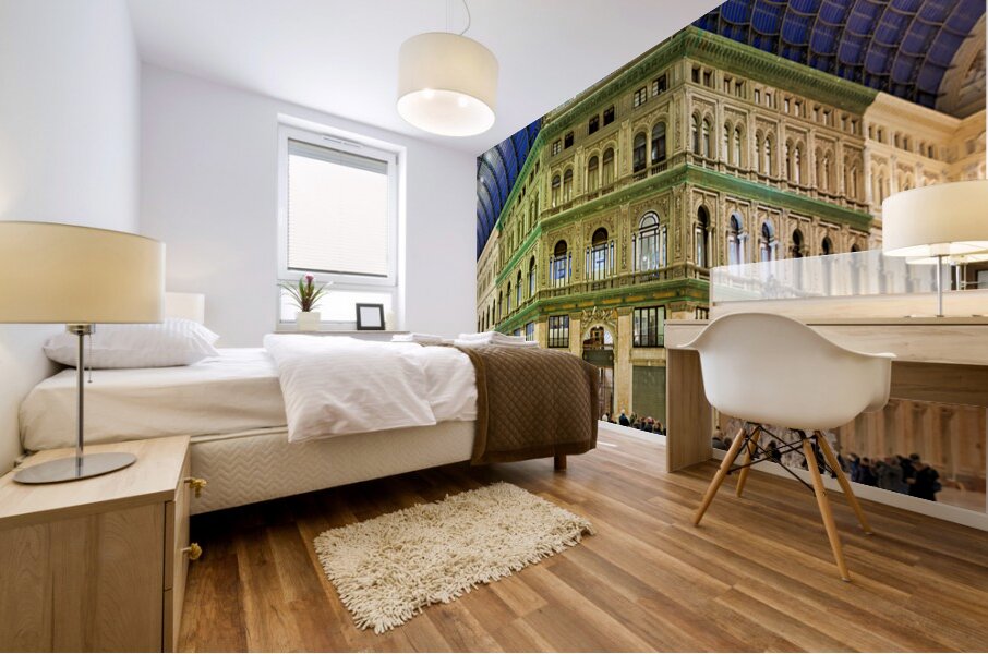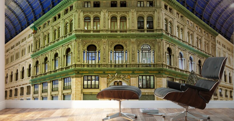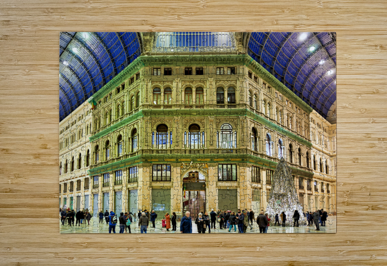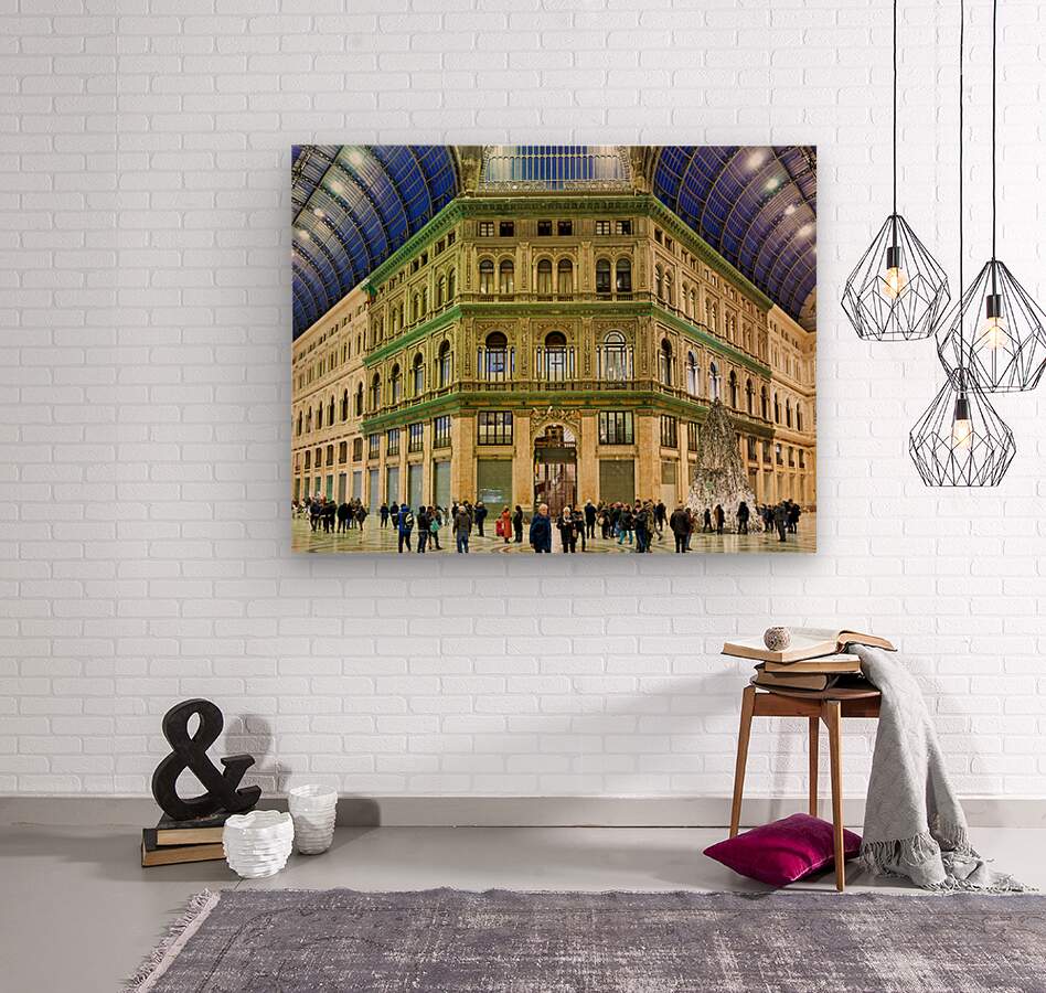 "Visitors explore Galleria Umberto I in Naples during a busy day" in a framed print.