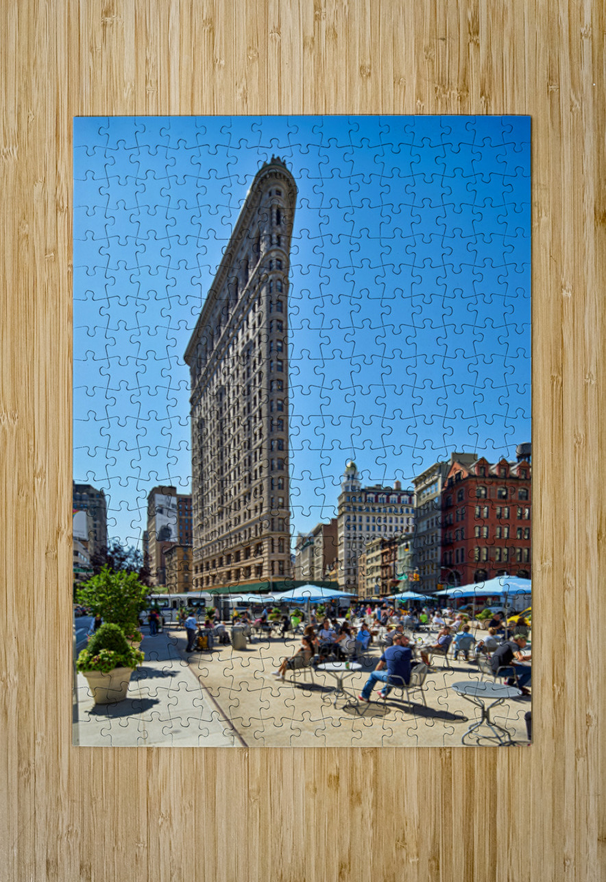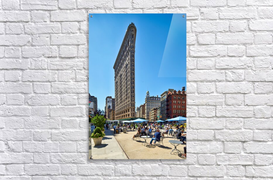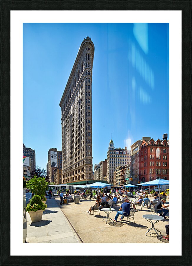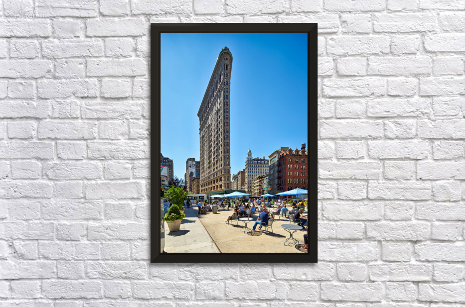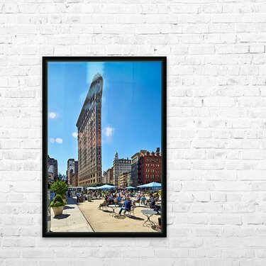 "Exploring the Flatiron Building in Manhattan on a sunny day" in a framed print.
