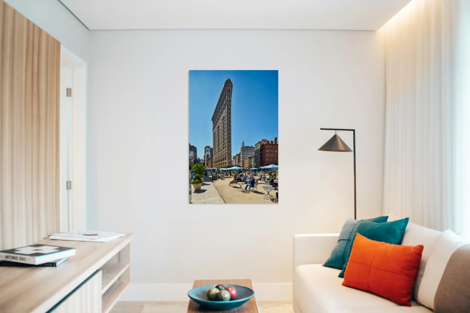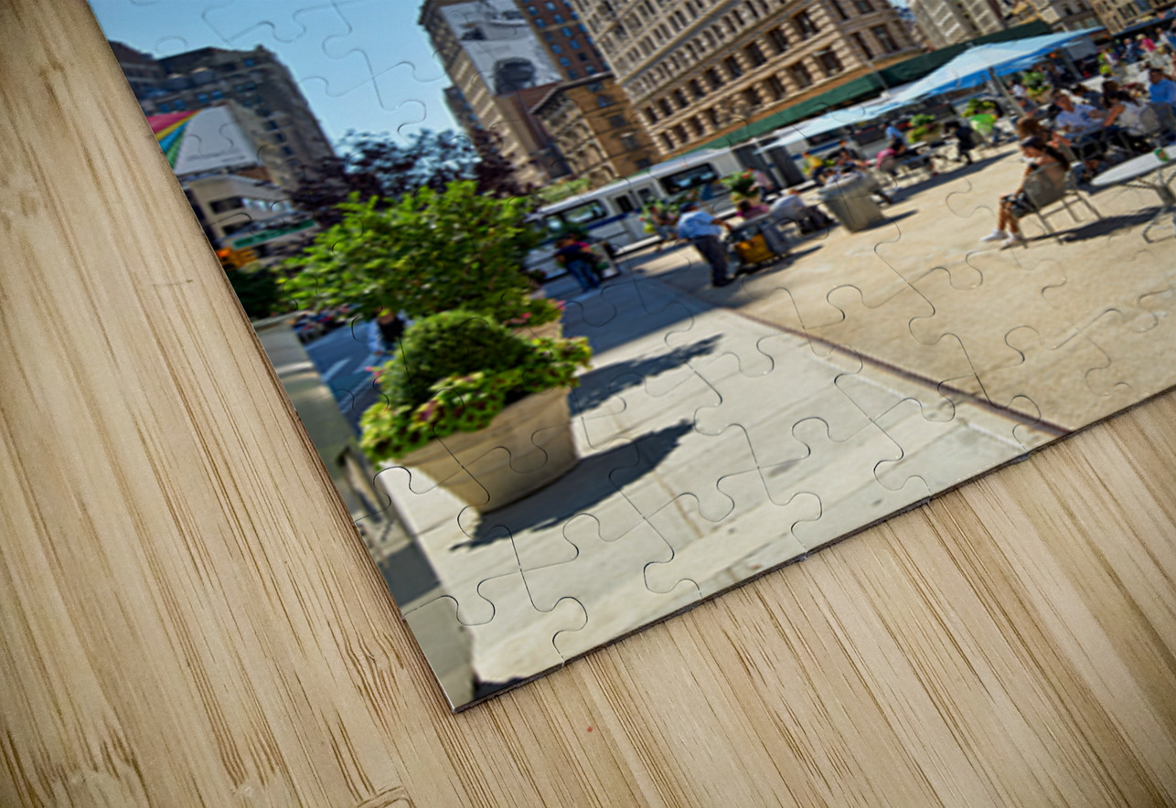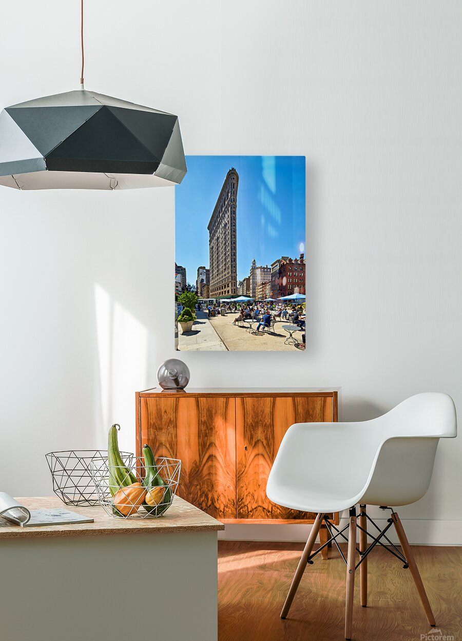 "Exploring the Flatiron Building in Manhattan on a sunny day" in a framed print.