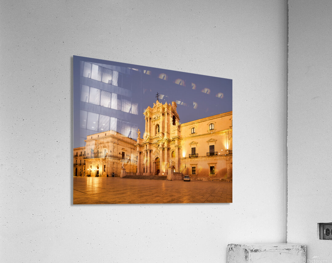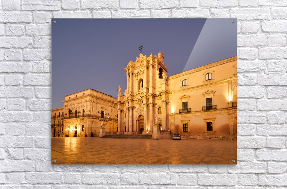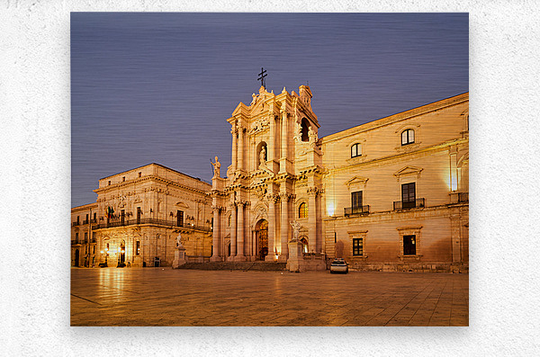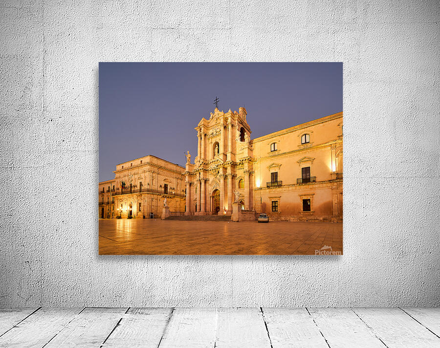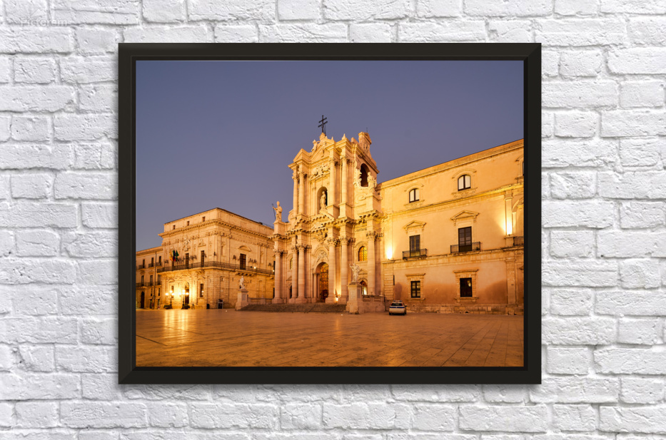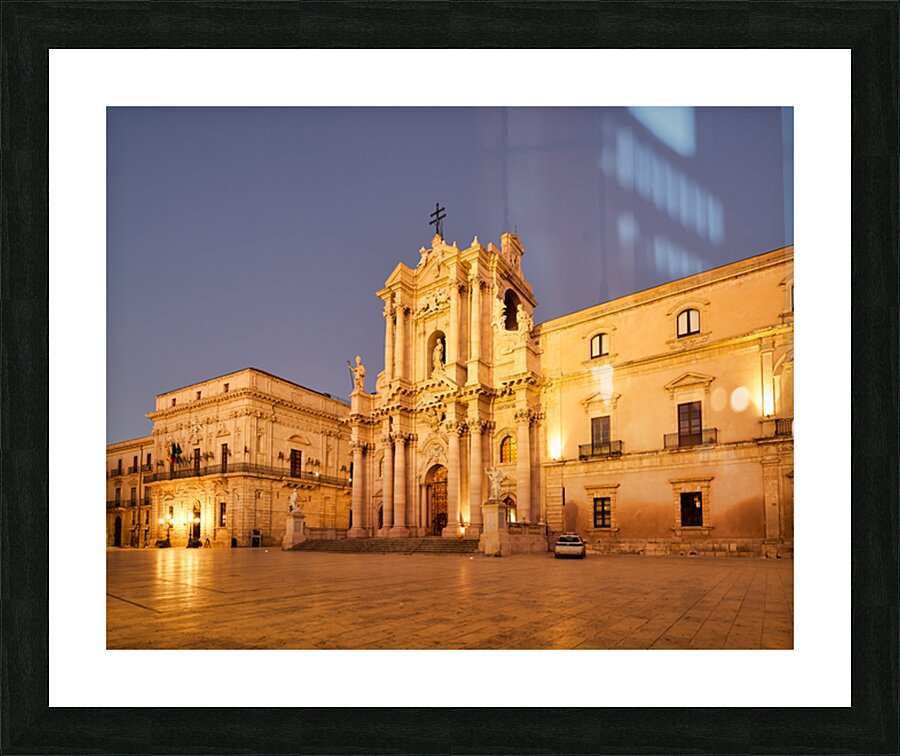 "Syracuse Cathedral in Ortygia Island during evening light" in a framed print.