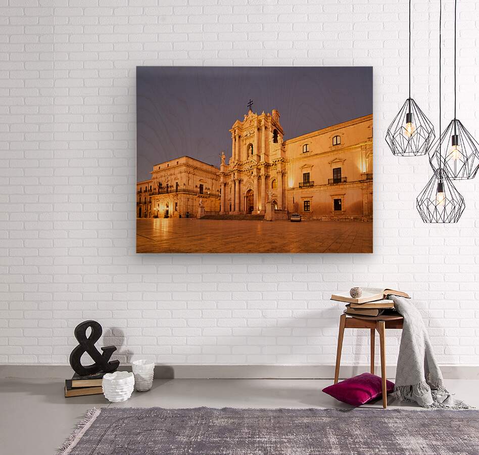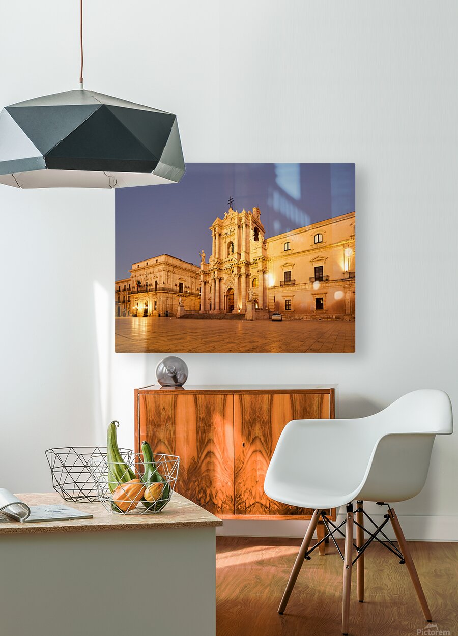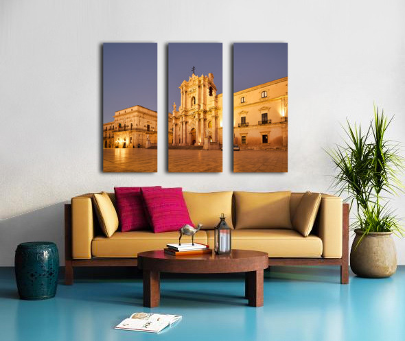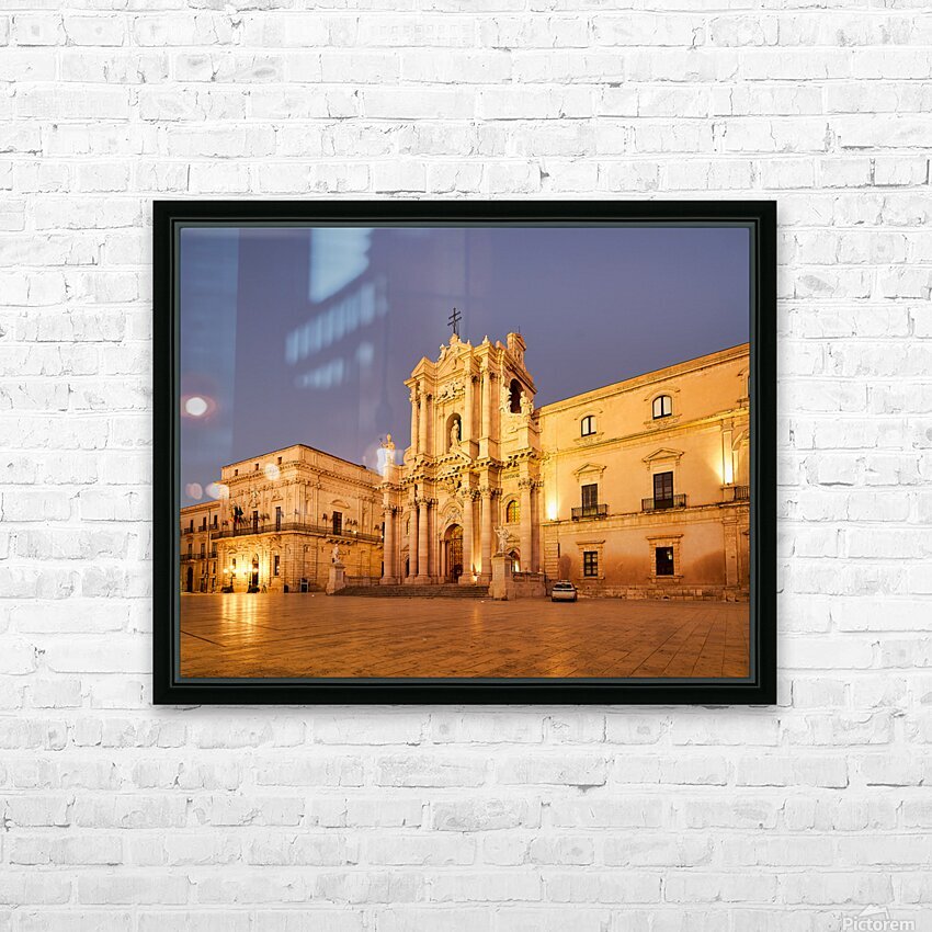 "Syracuse Cathedral in Ortygia Island during evening light" in a framed print.