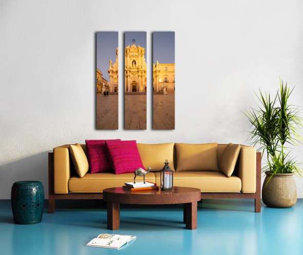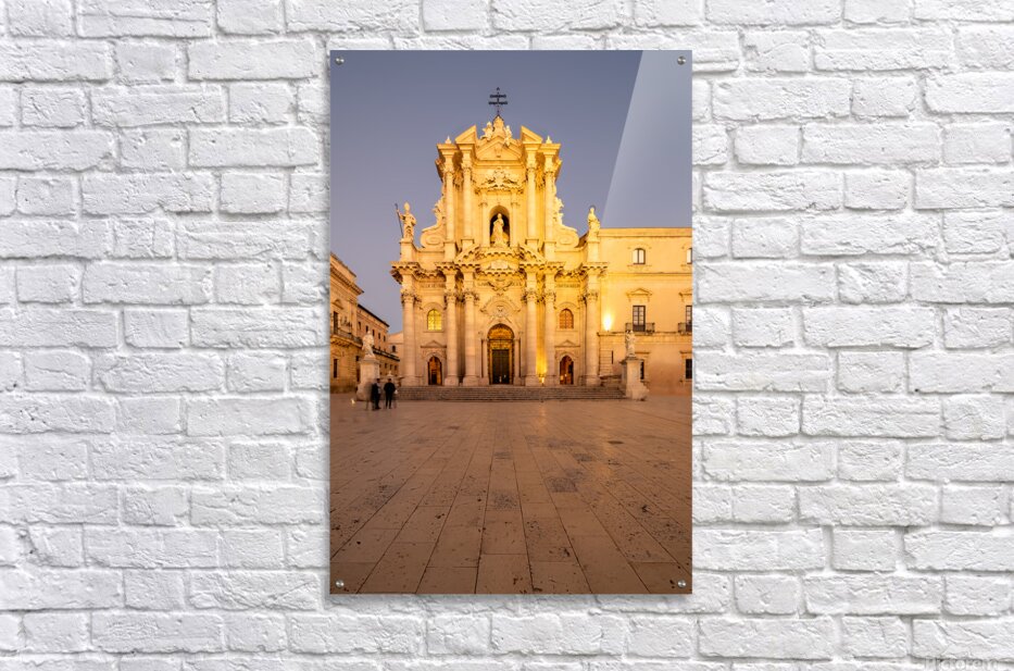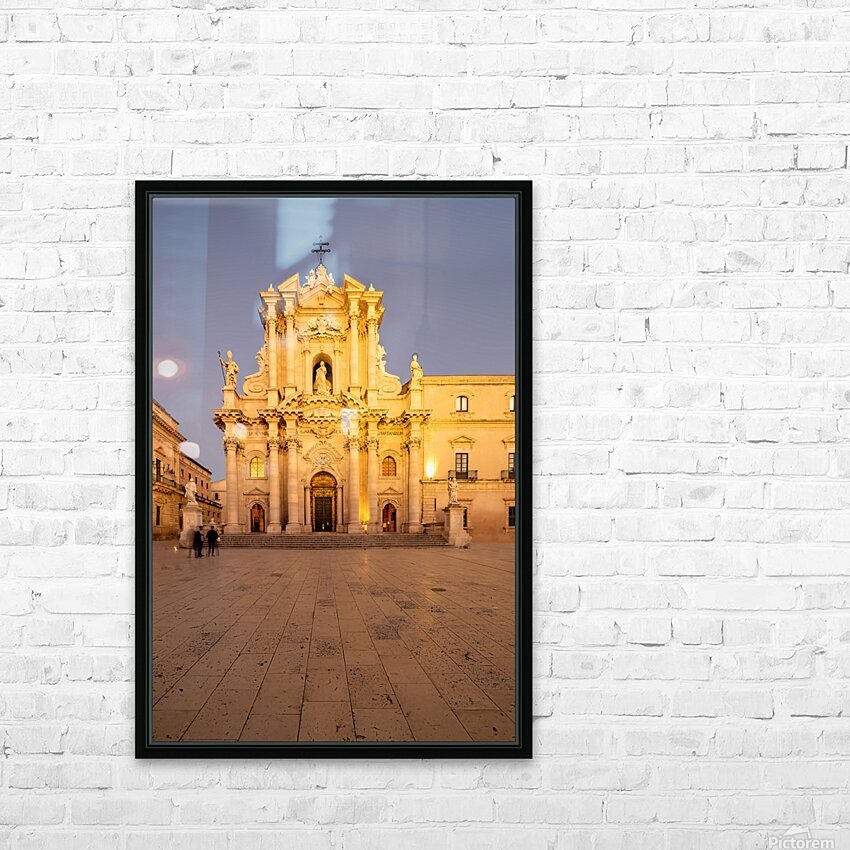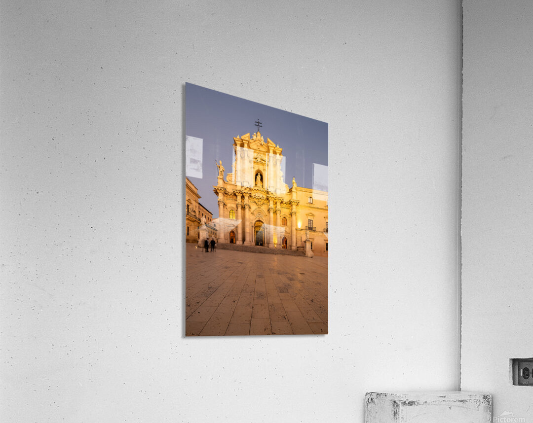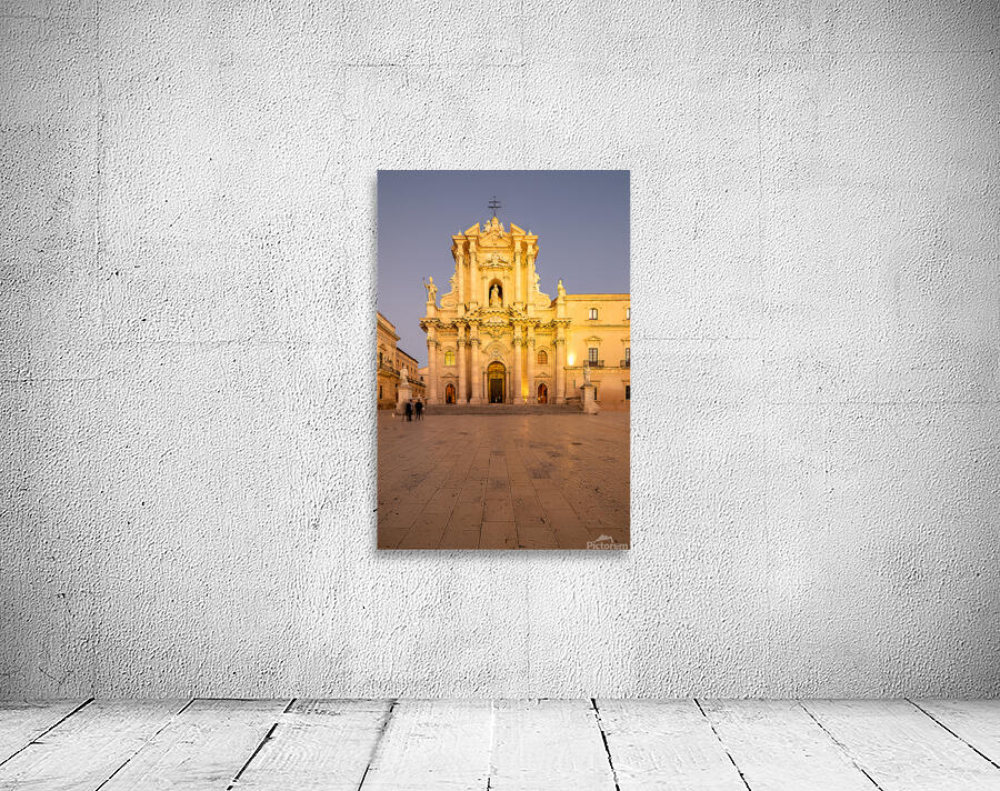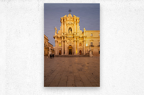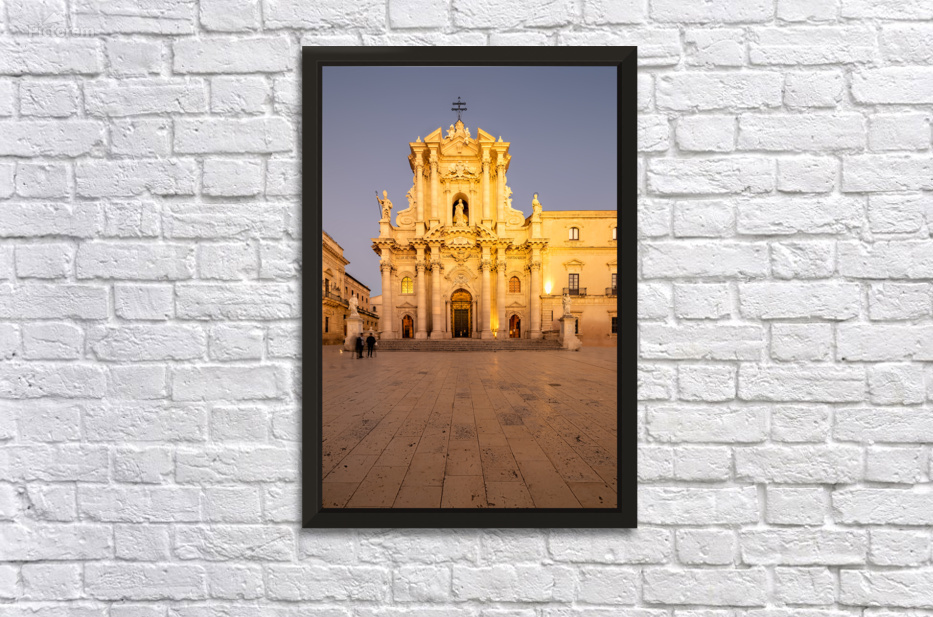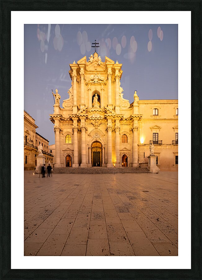 "Cathedral on Ortygia Island in Syracuse Sicily at night" in a framed print.
