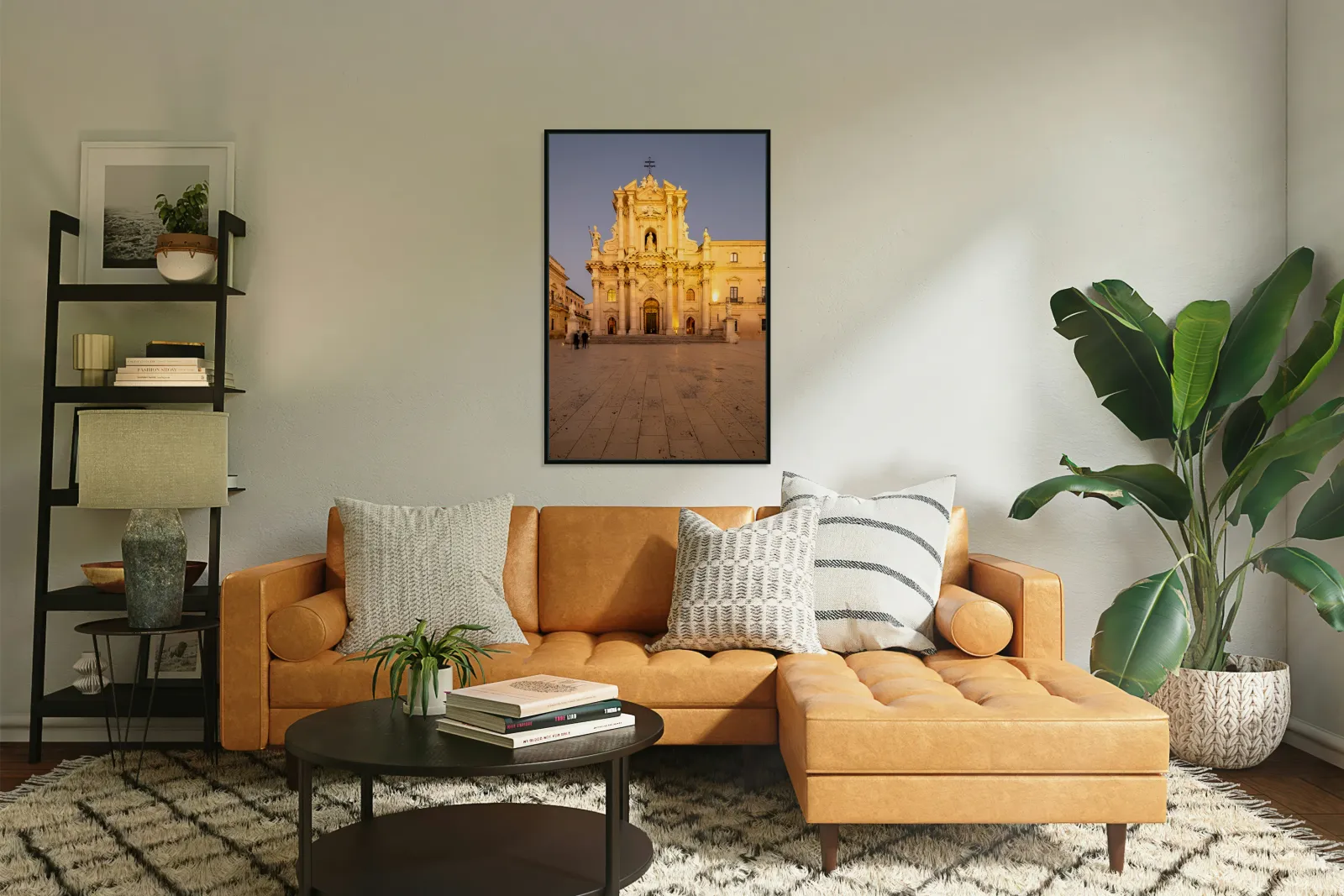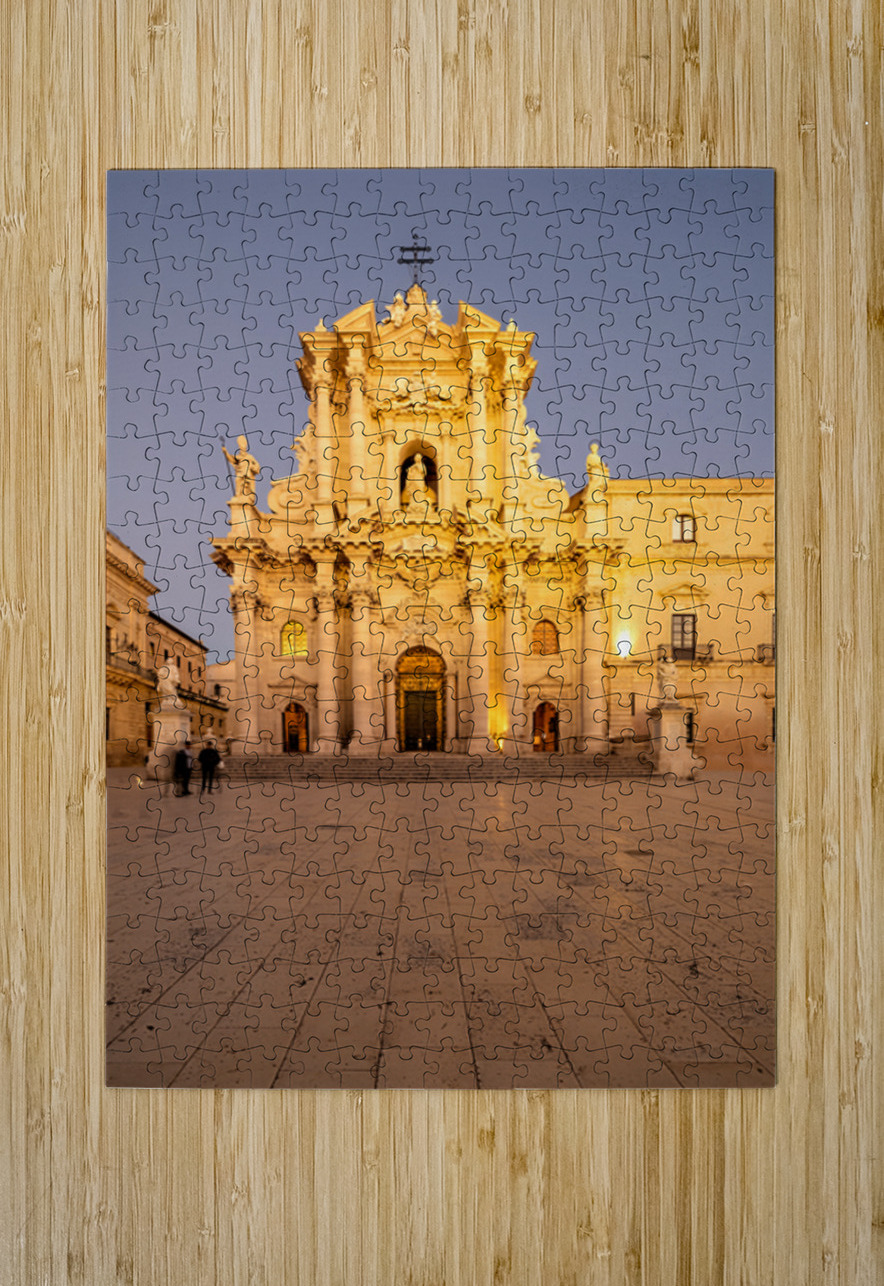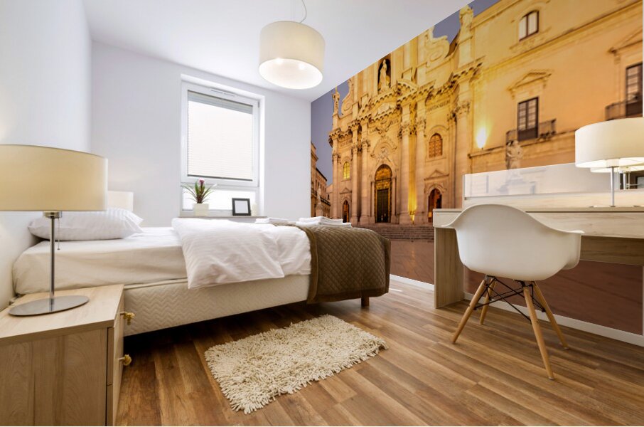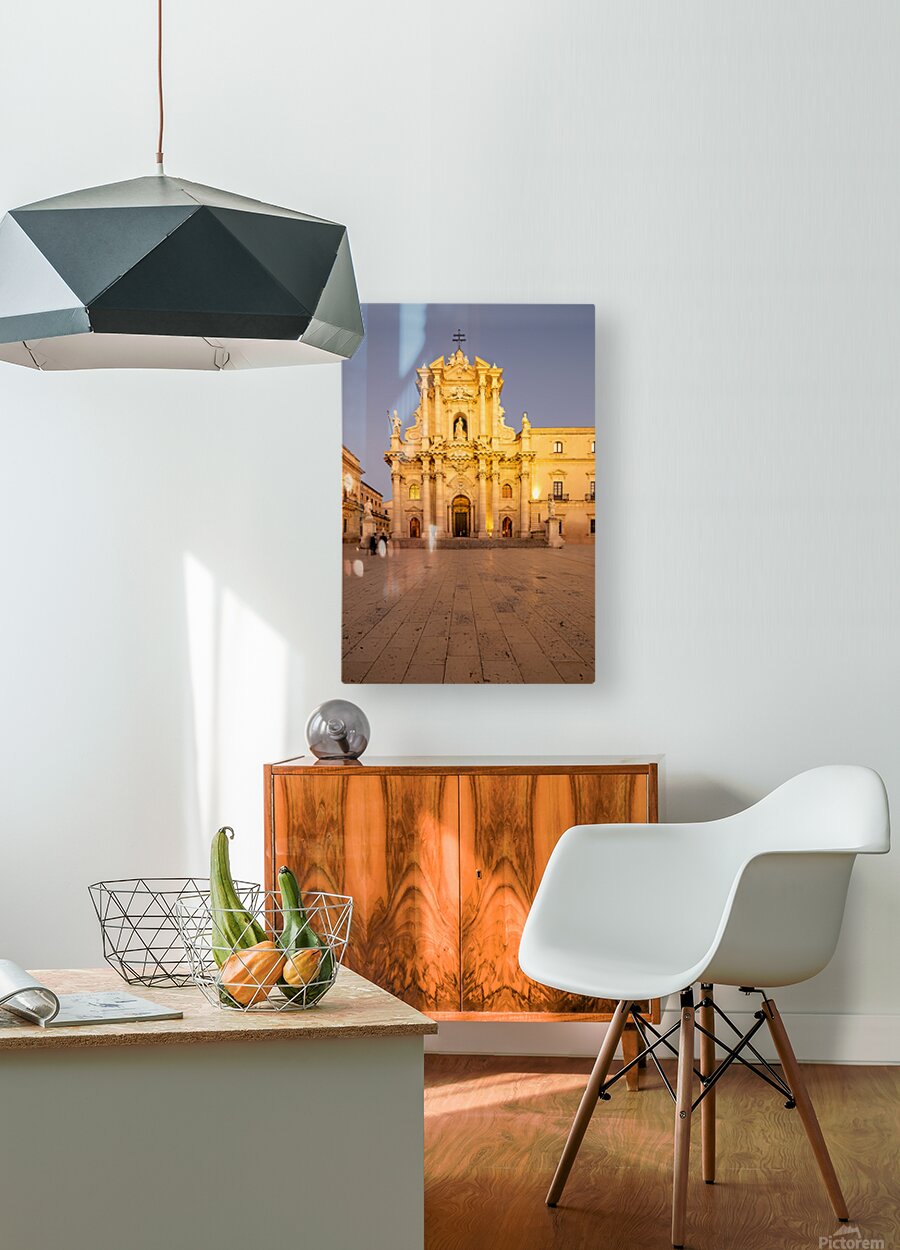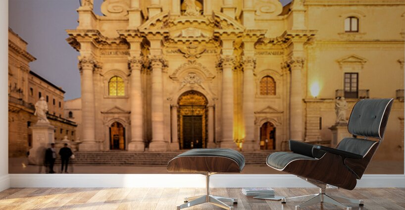 "Cathedral on Ortygia Island in Syracuse Sicily at night" in a framed print.