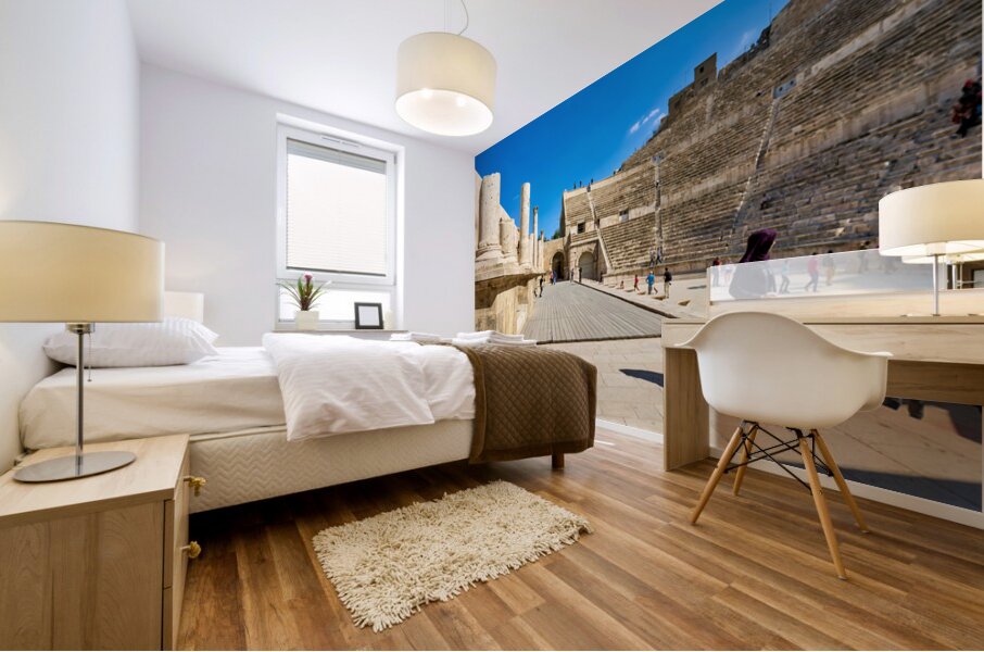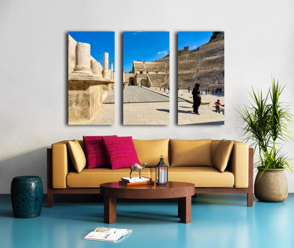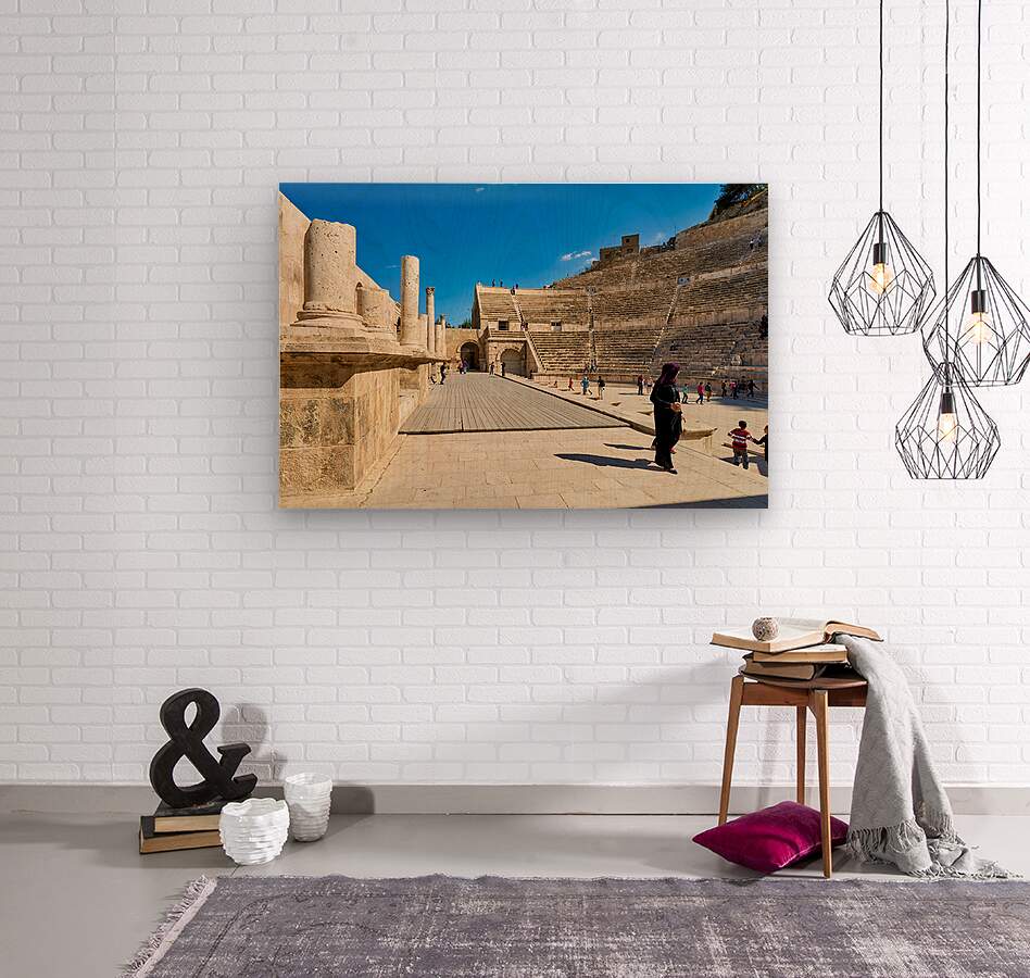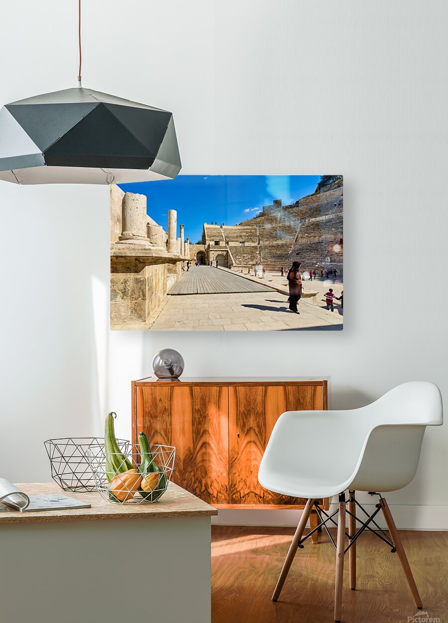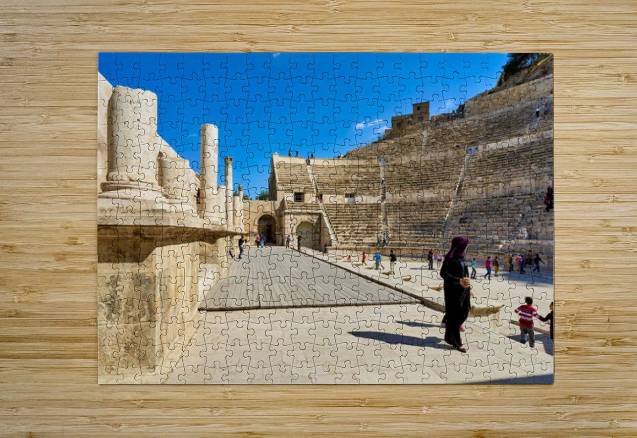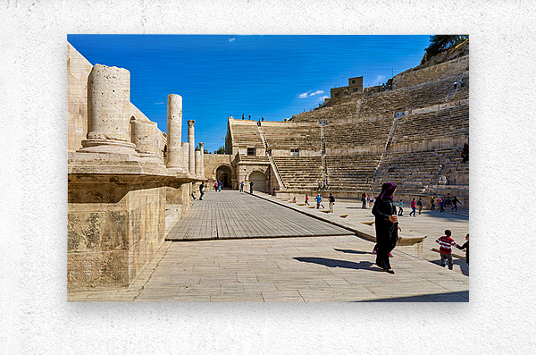 "Exploring the roman theater in amman jordan" in a framed print.