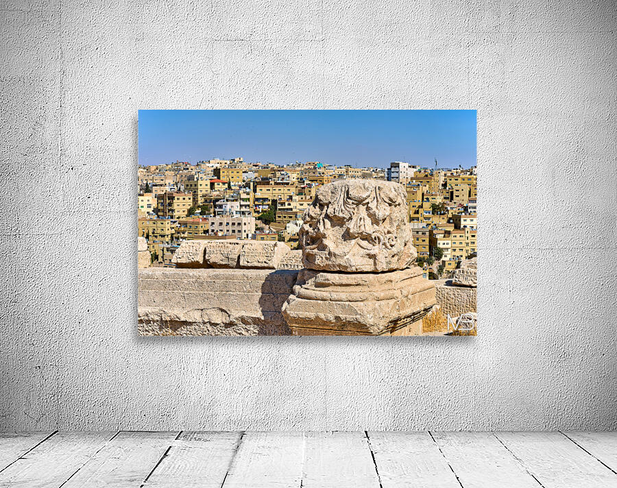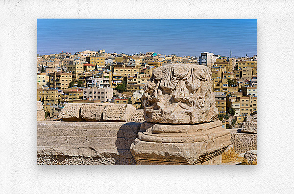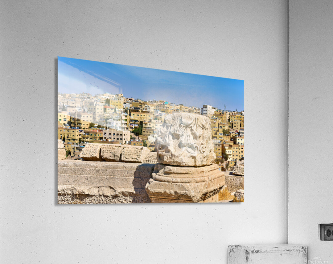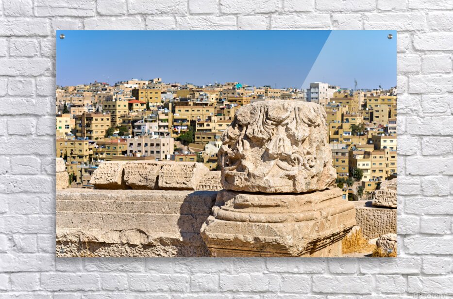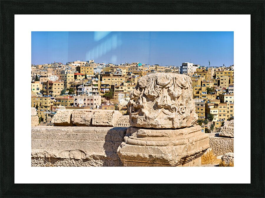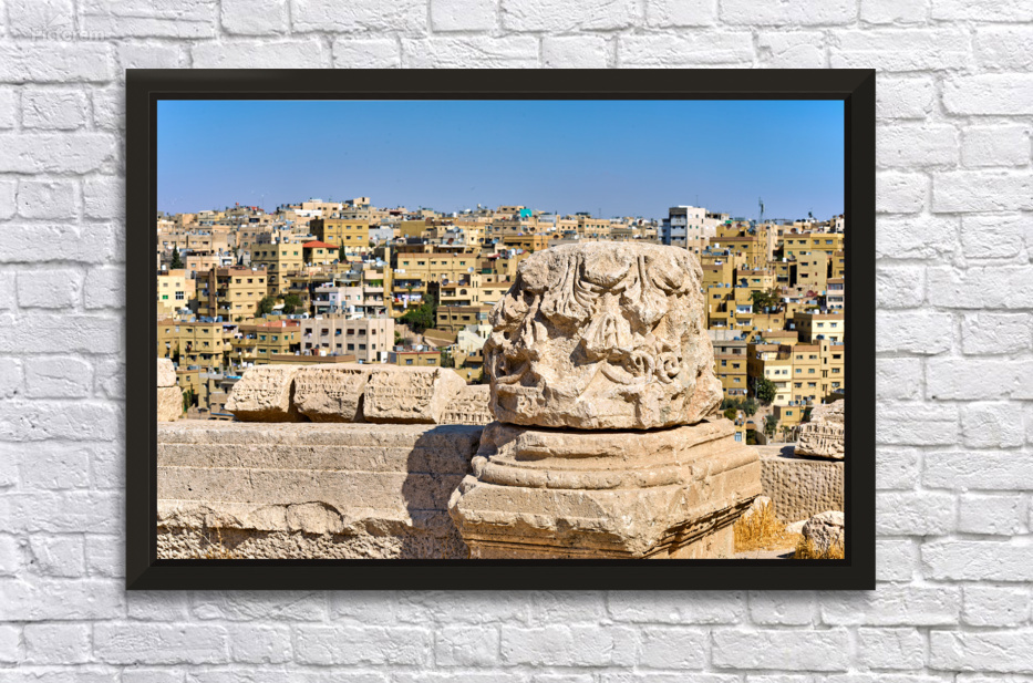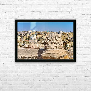 "View of Amman from the Citadel with ancient stone structure" in a framed print.