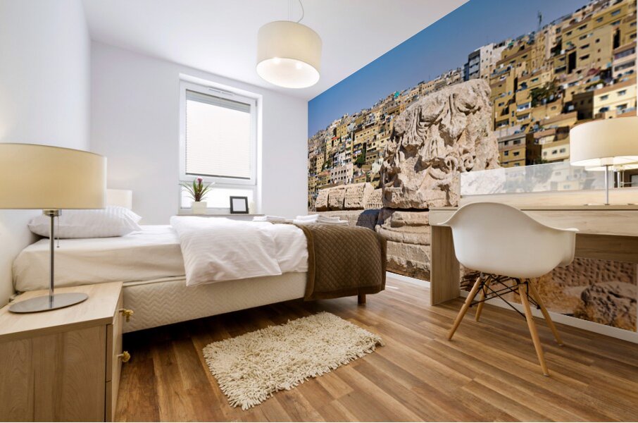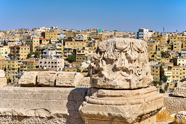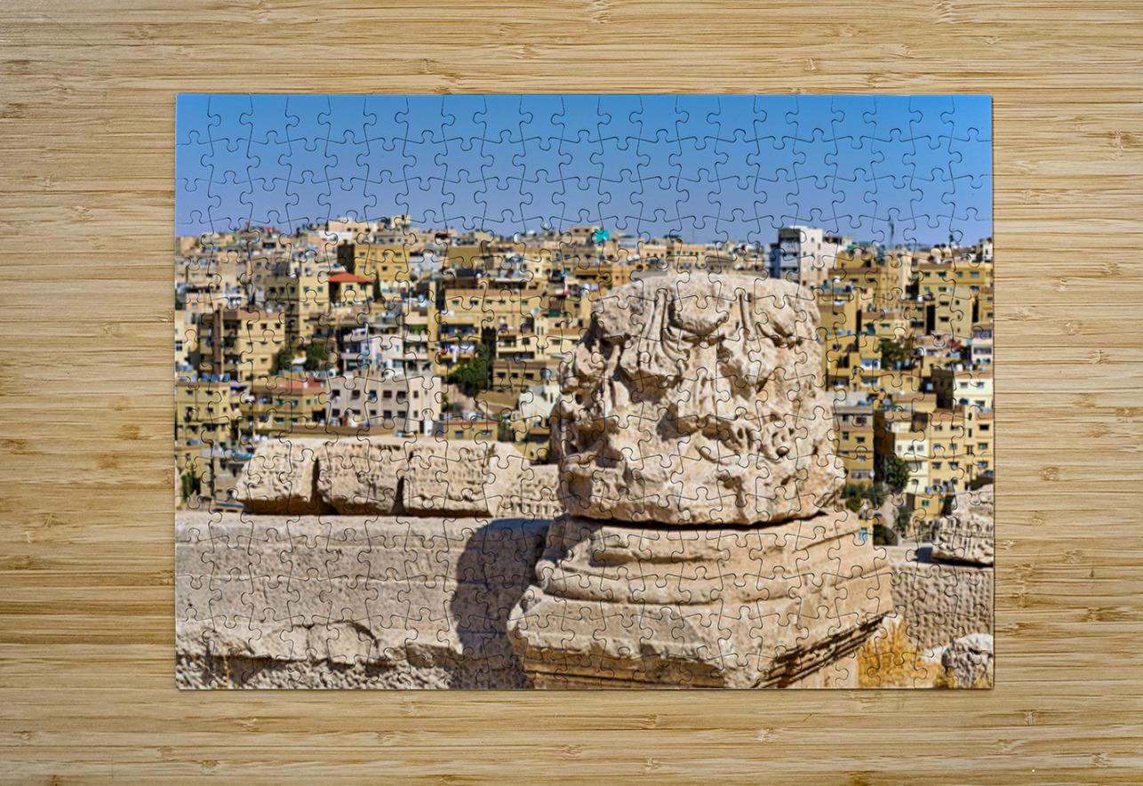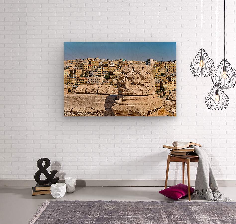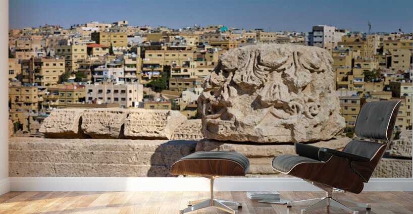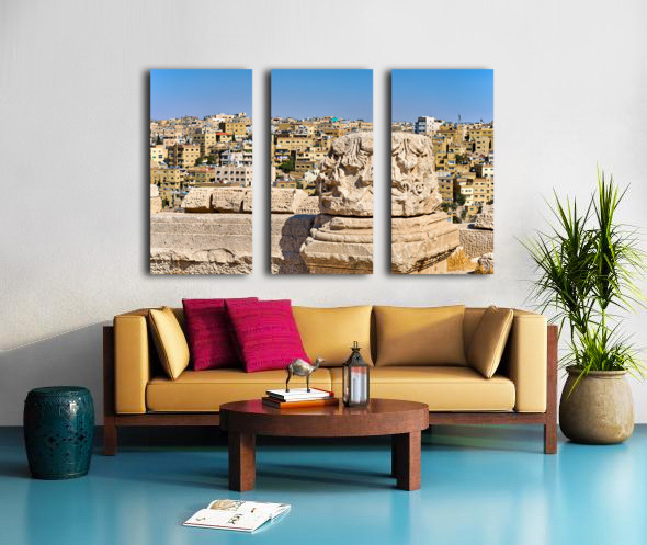 "View of Amman from the Citadel with ancient stone structure" in a framed print.