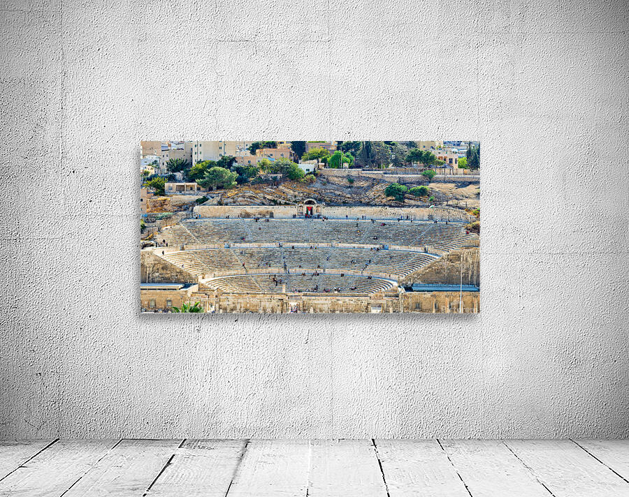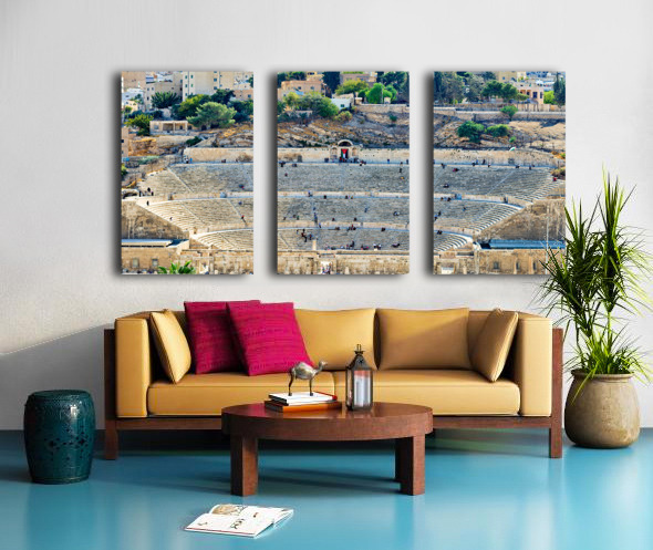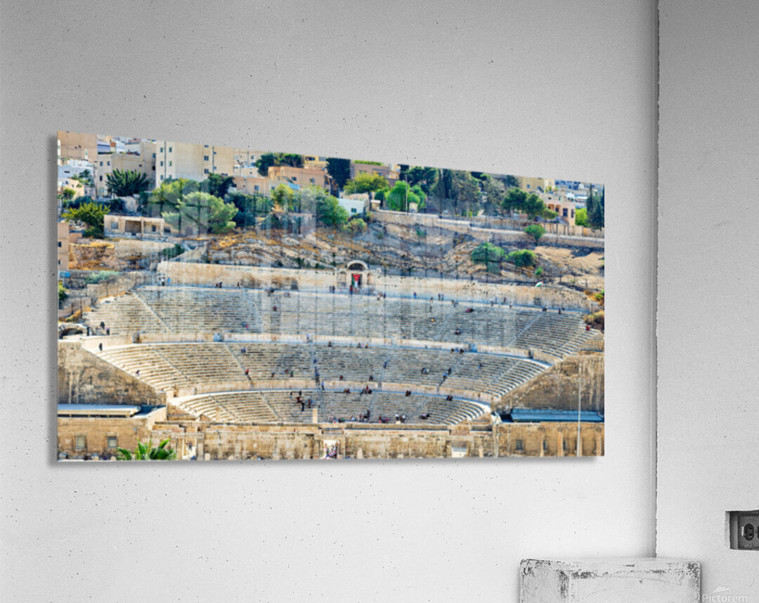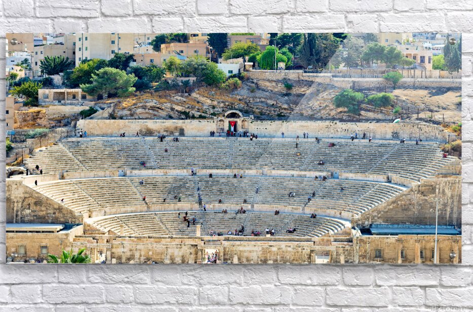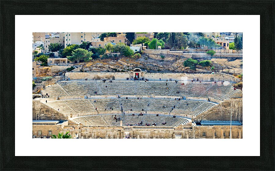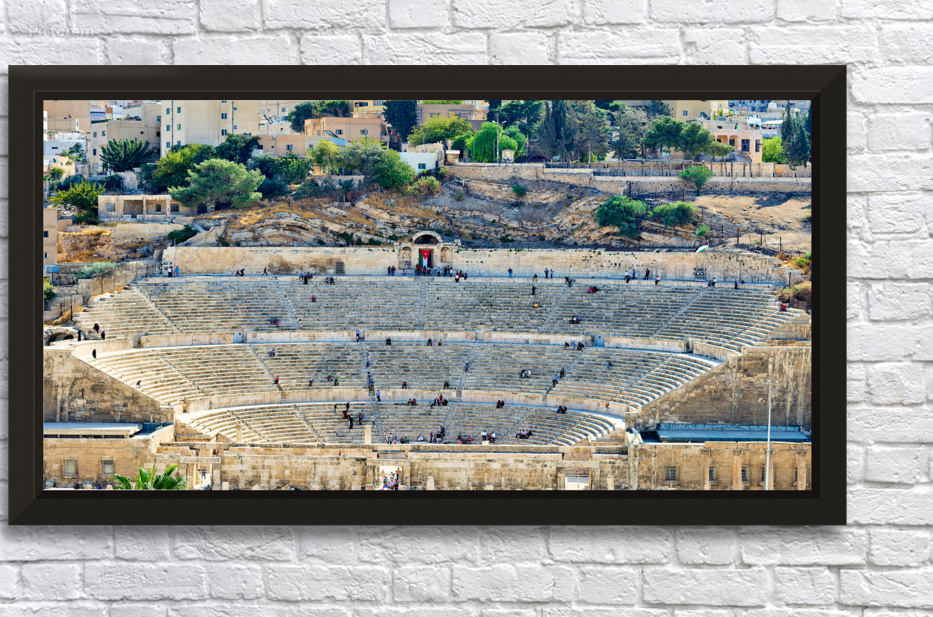 "Visiting the Roman Theater in Amman Jordan during daytime" in a framed print.