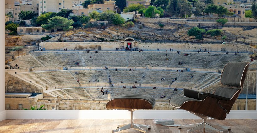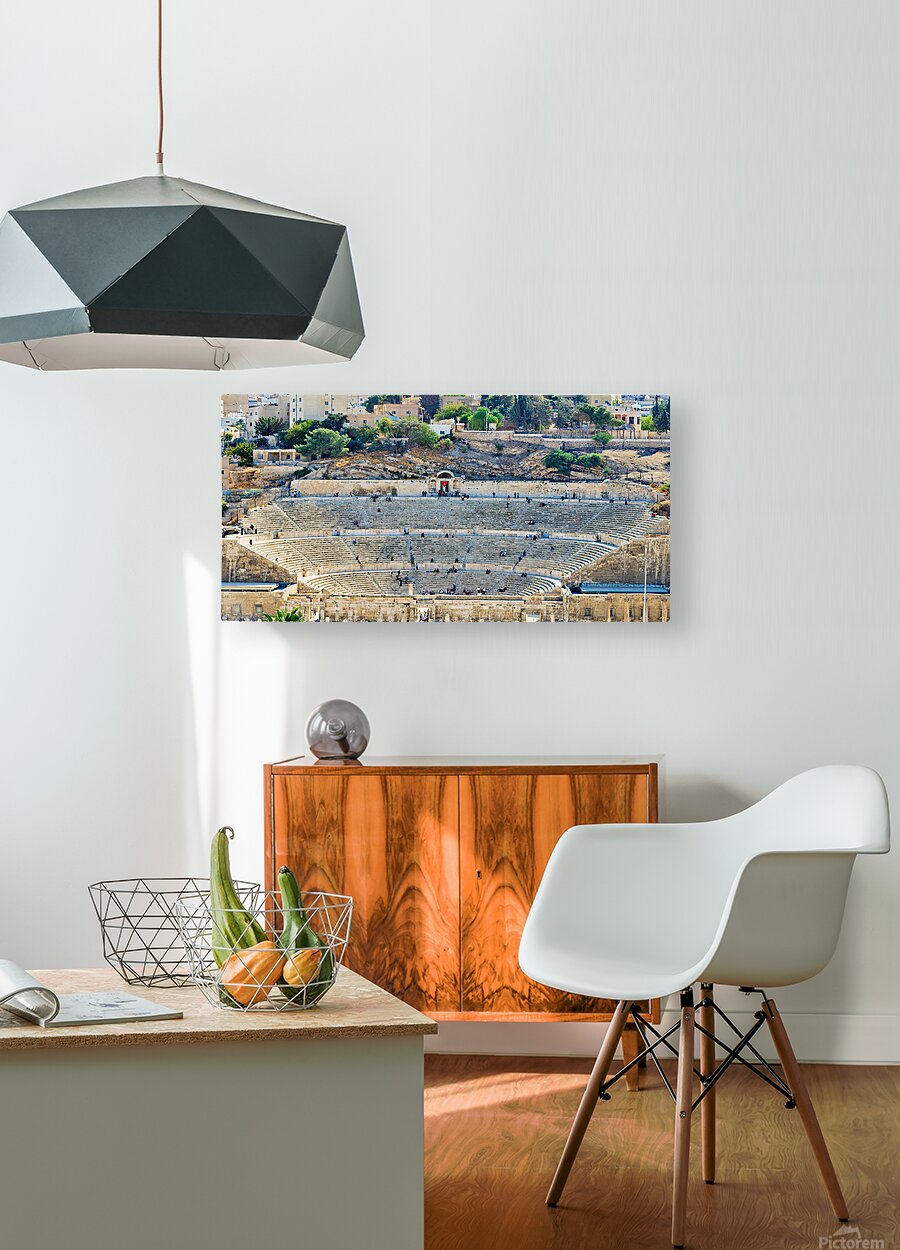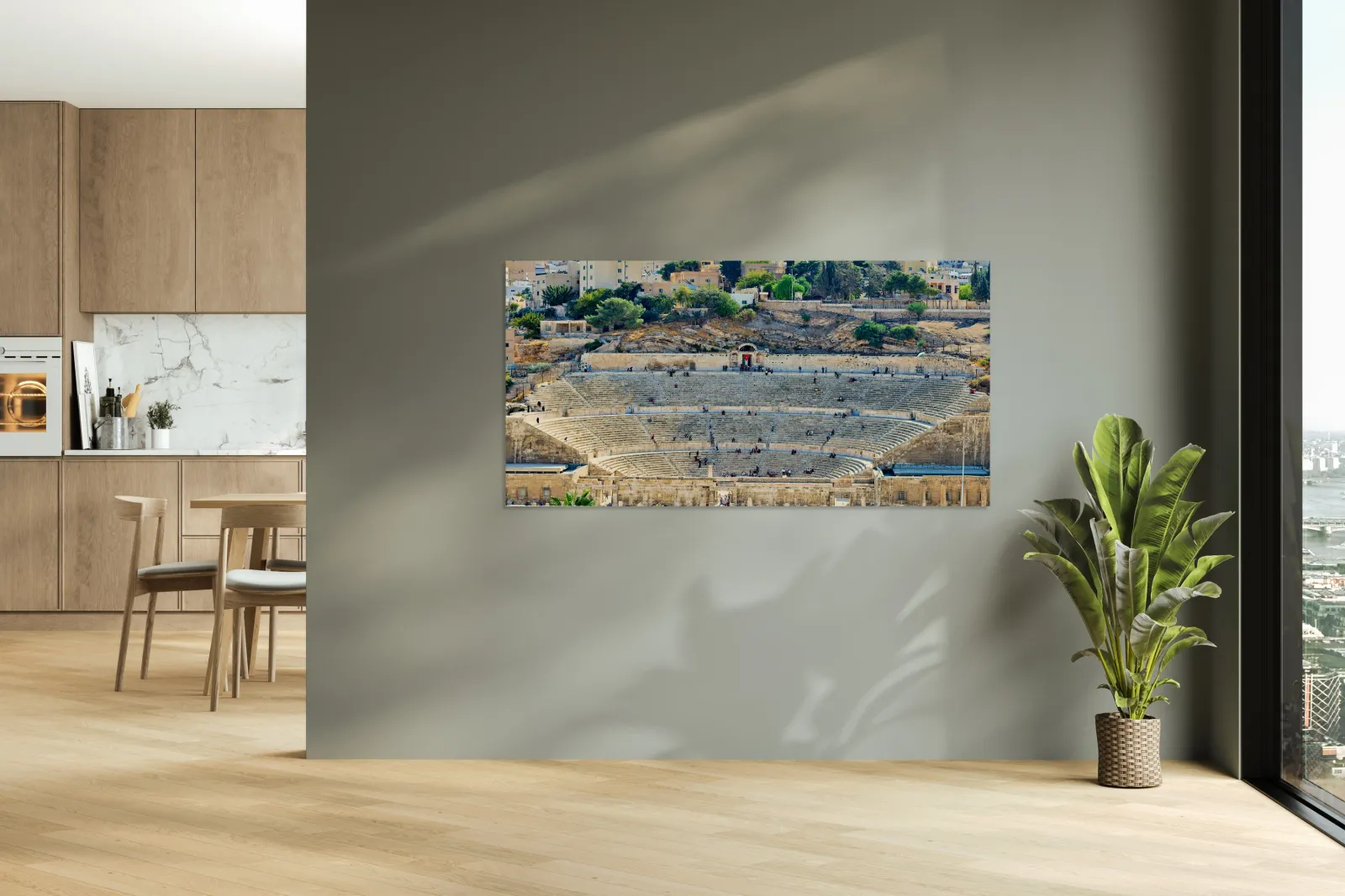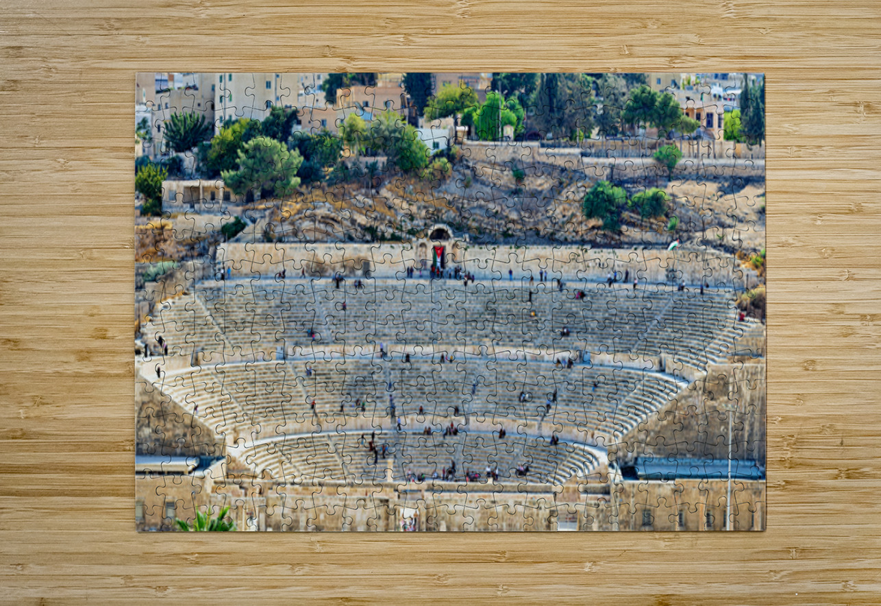 "Visiting the Roman Theater in Amman Jordan during daytime" in a framed print.