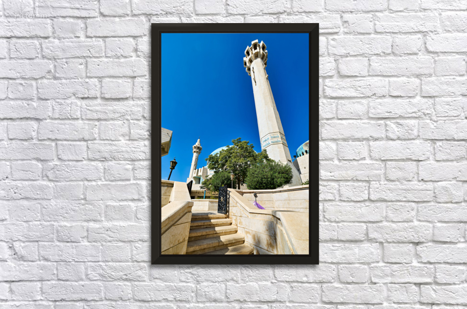 "Visit to King Abdullah Mosque in Amman Jordan during clear day" in a framed print.