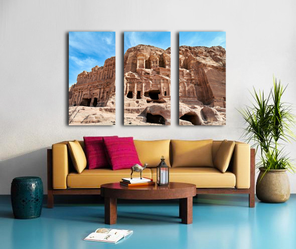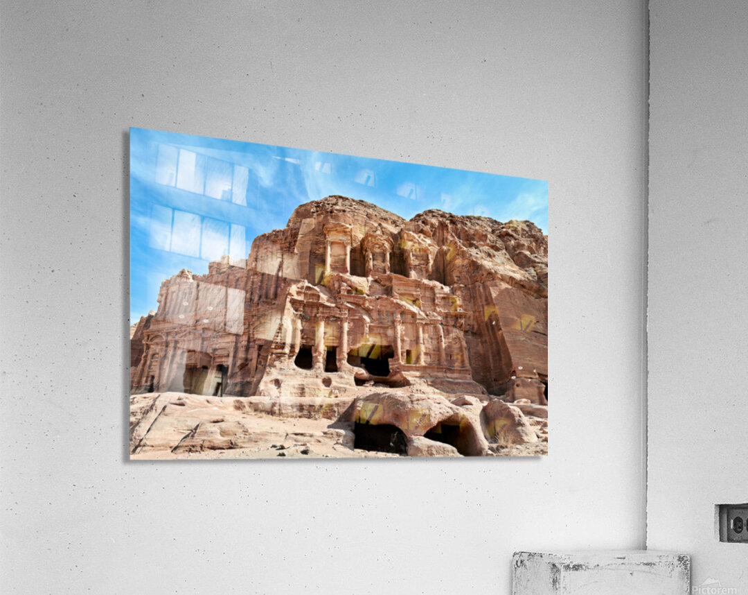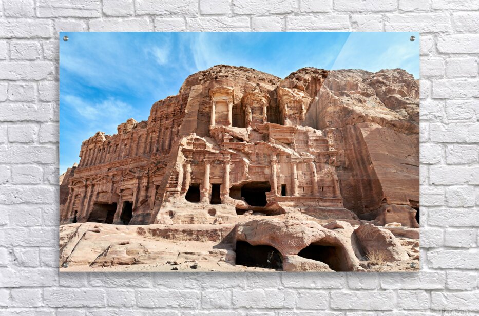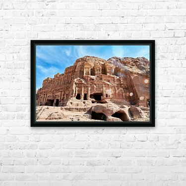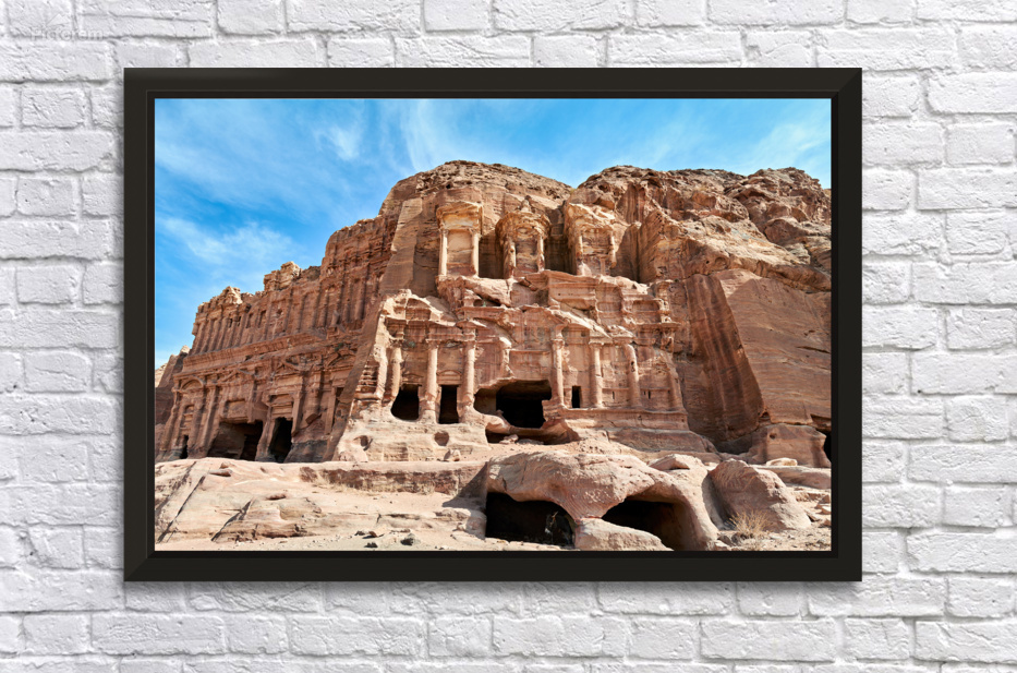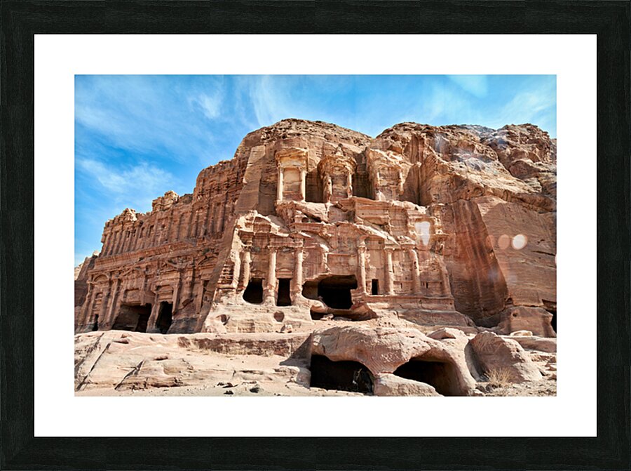 "Exploring the urn tomb at the royal tombs in petra jordan" in a framed print.