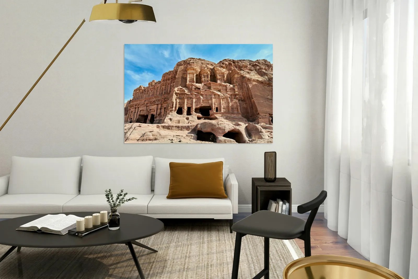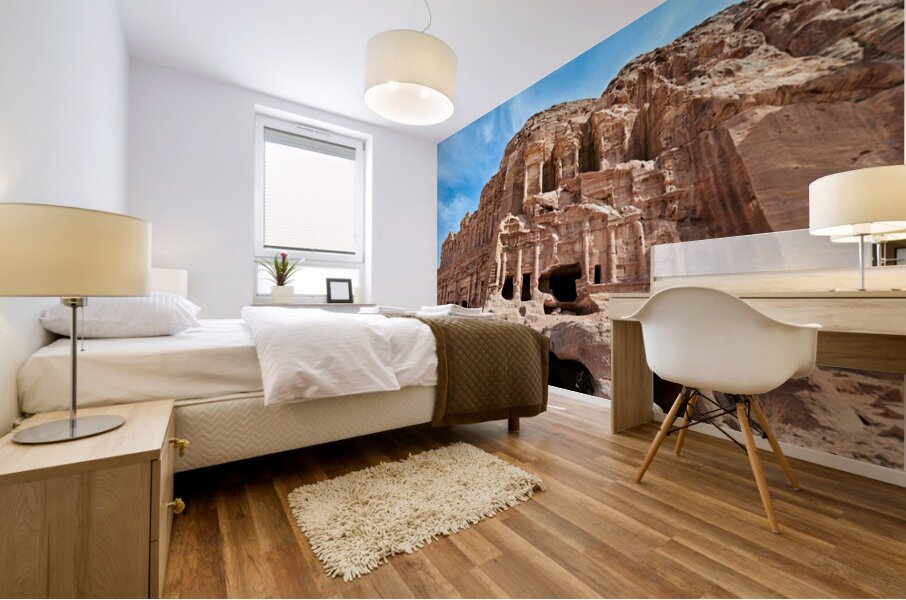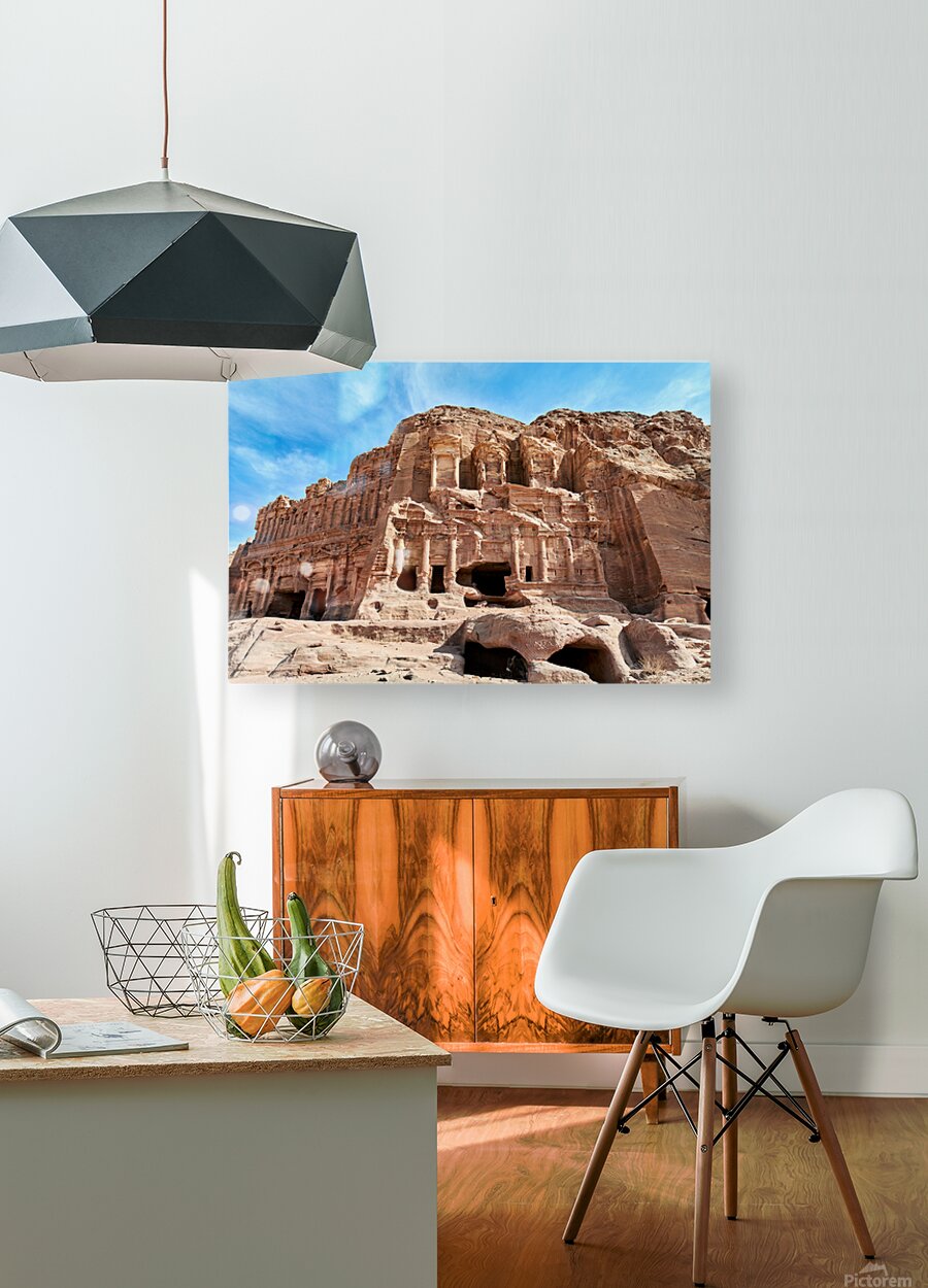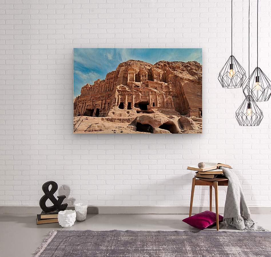 "Exploring the urn tomb at the royal tombs in petra jordan" in a framed print.