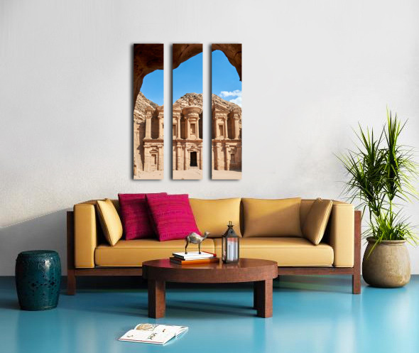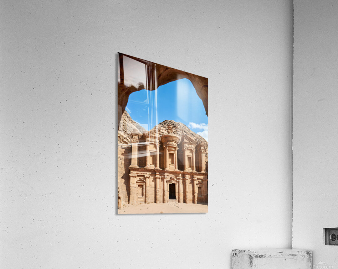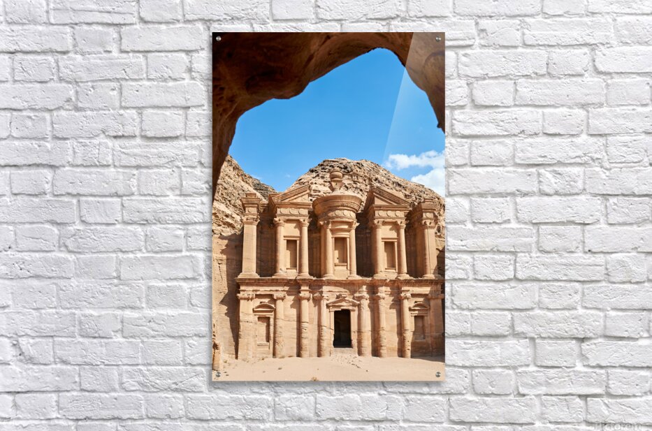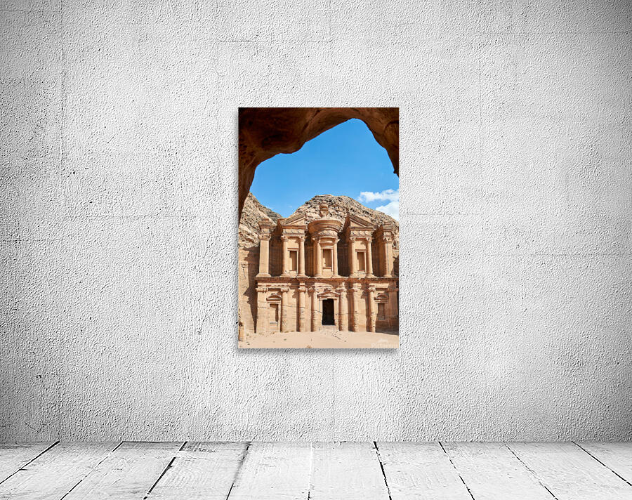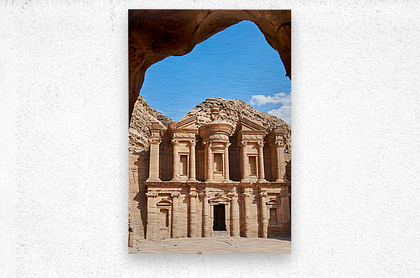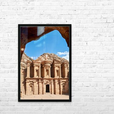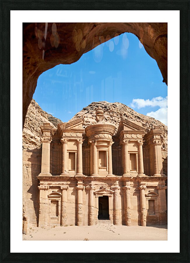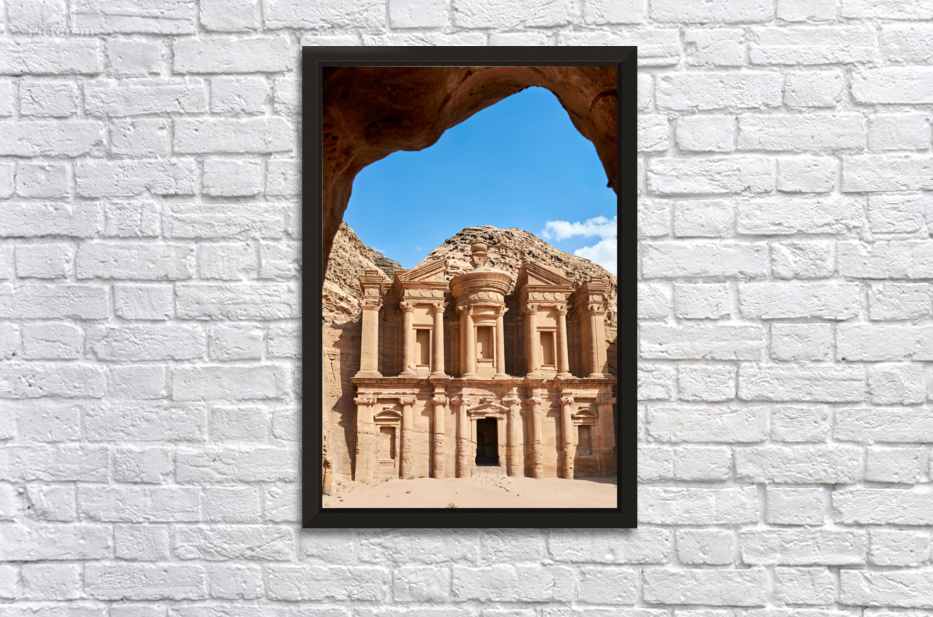 "Visit to Ad Deir Monastery at Petra archaeological site in Jorda" in a framed print.