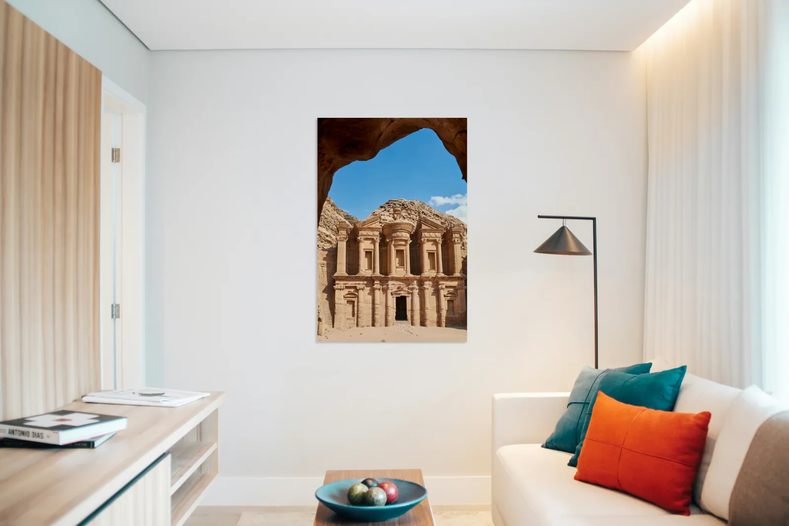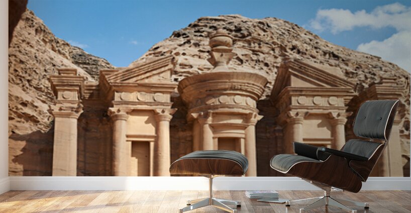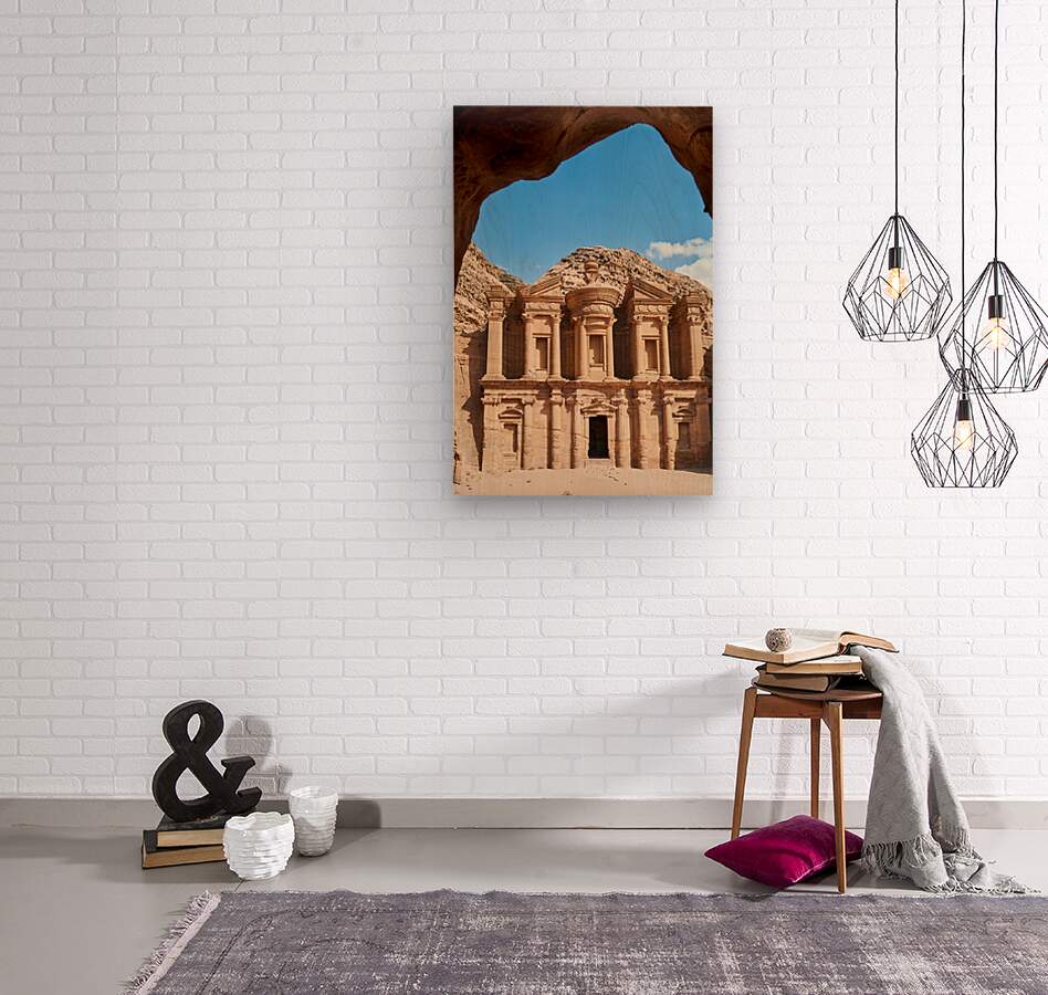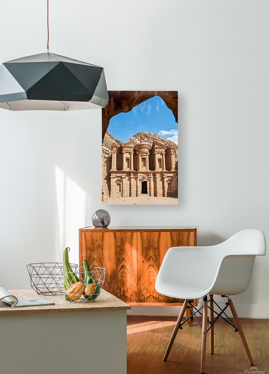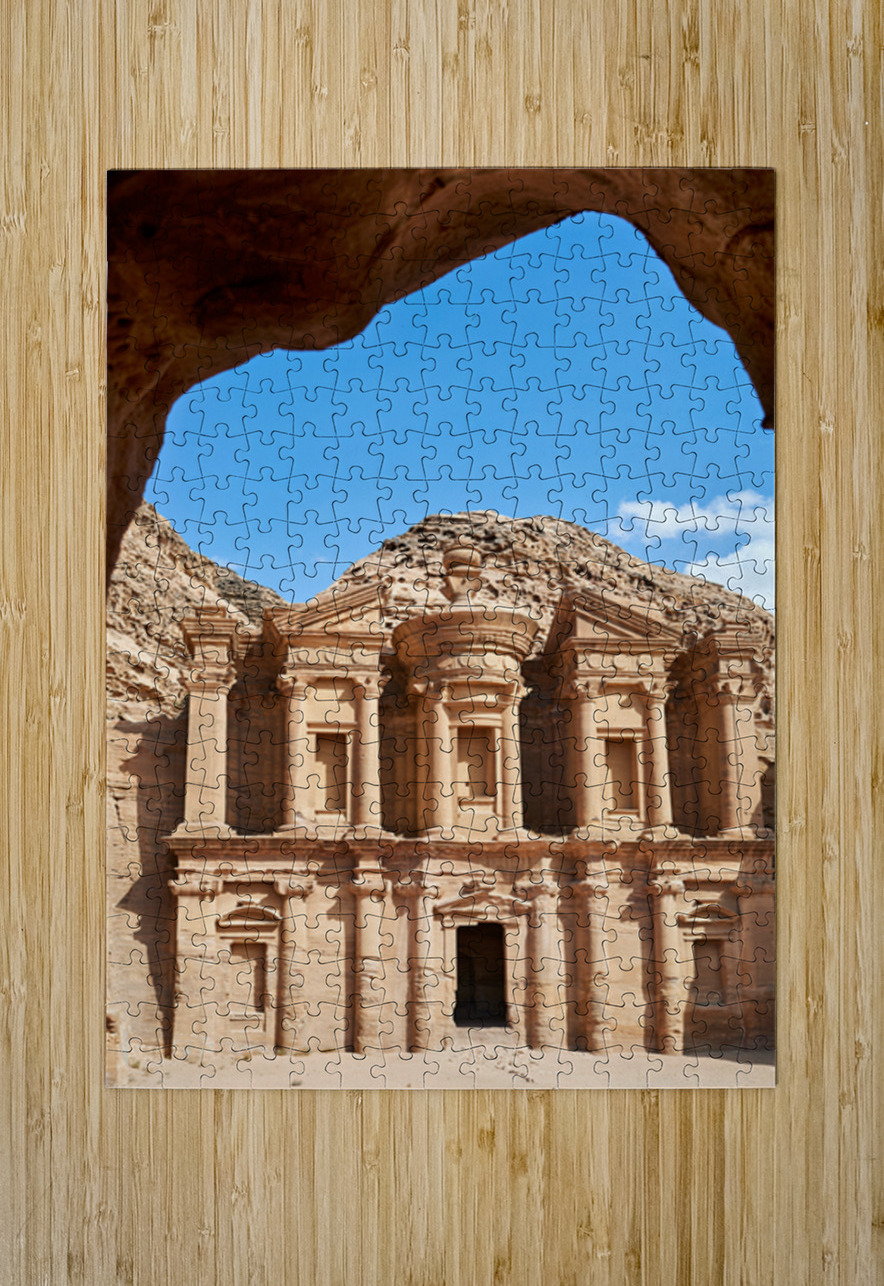 "Visit to Ad Deir Monastery at Petra archaeological site in Jorda" in a framed print.