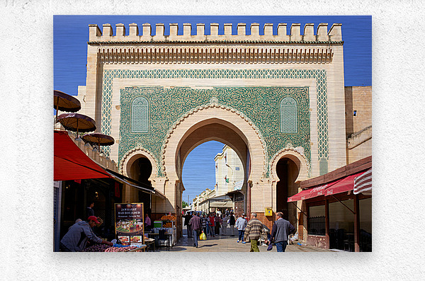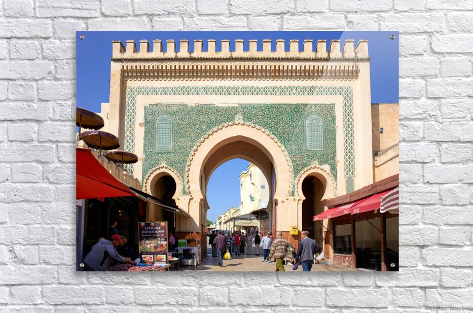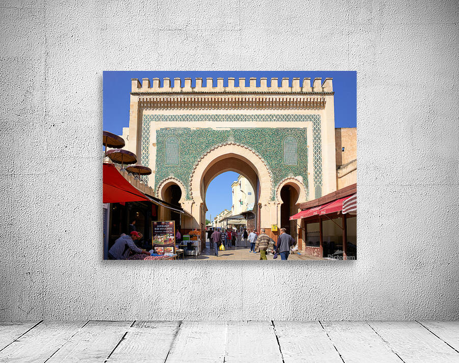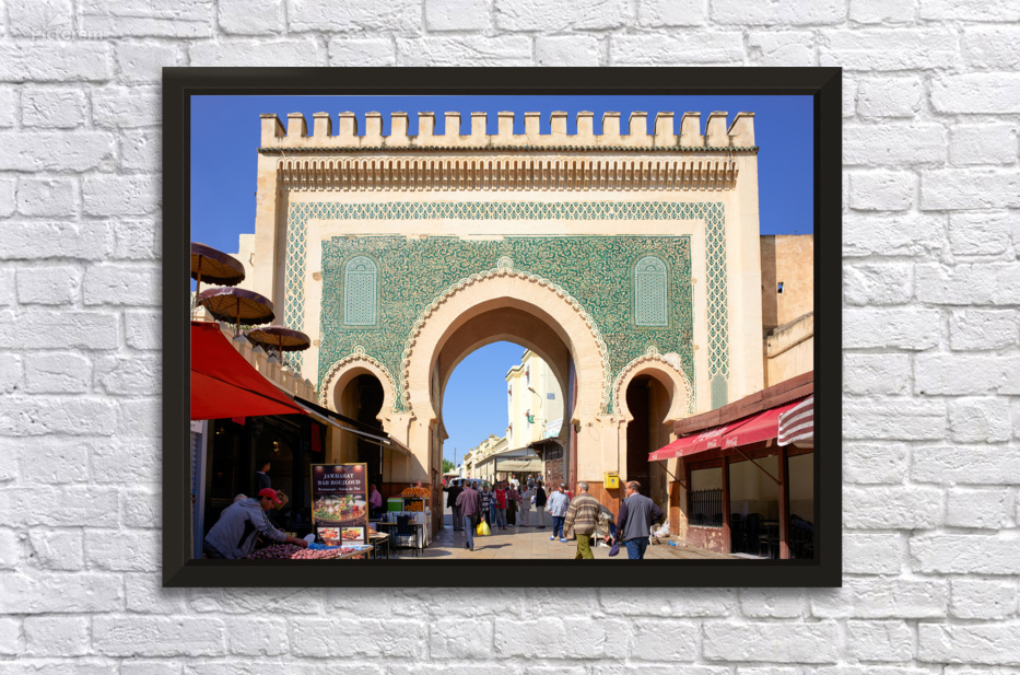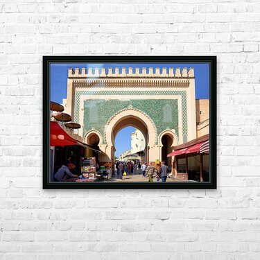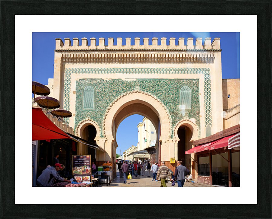 "Visit Bab Bou Jeloud in Fez Morocco for exploring the Medina" in a framed print.