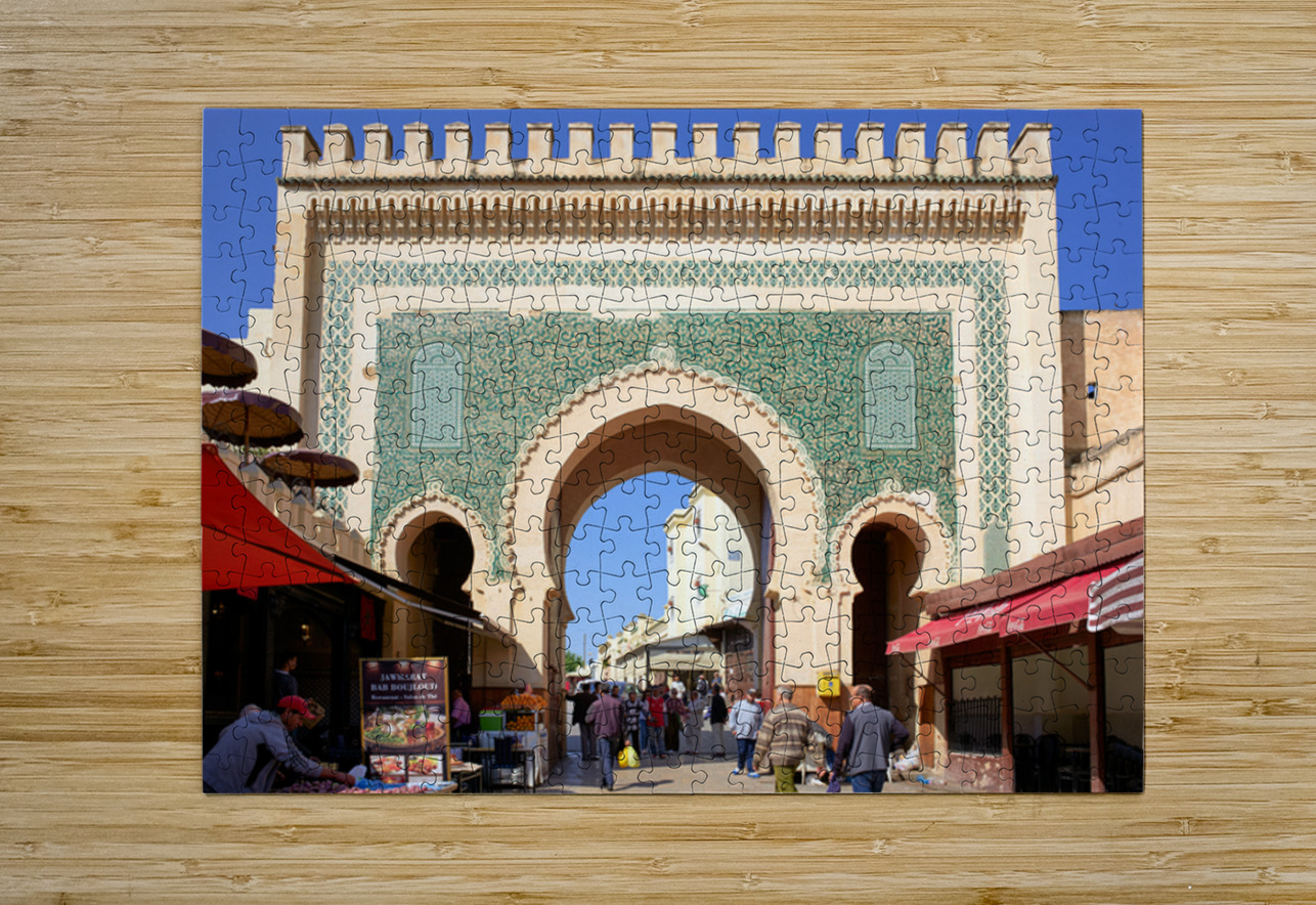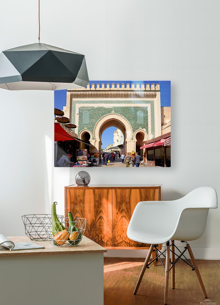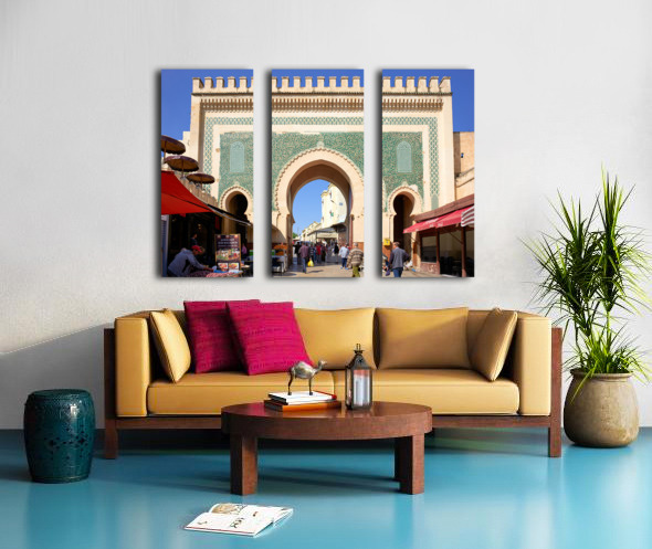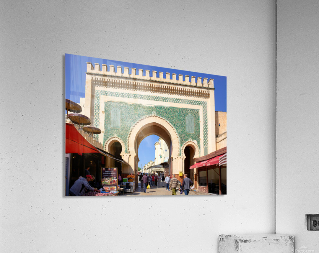 "Visit Bab Bou Jeloud in Fez Morocco for exploring the Medina" in a framed print.