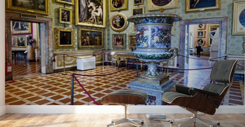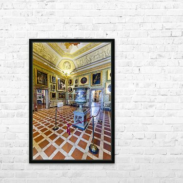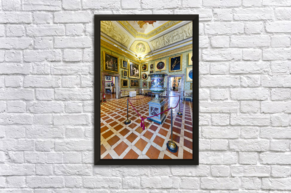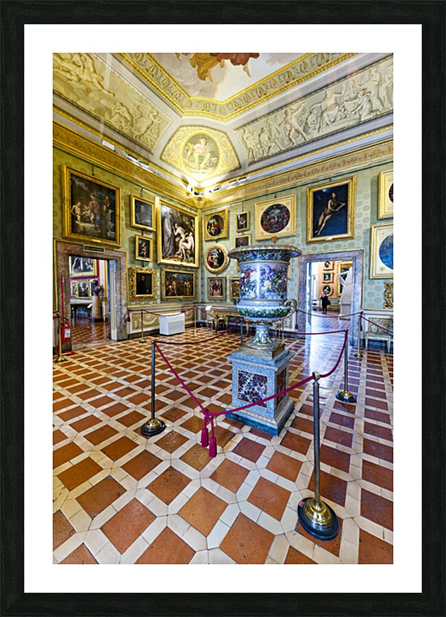 "Visit to Palatine Gallery inside Palazzo Pitti in Florence" in a framed print.
