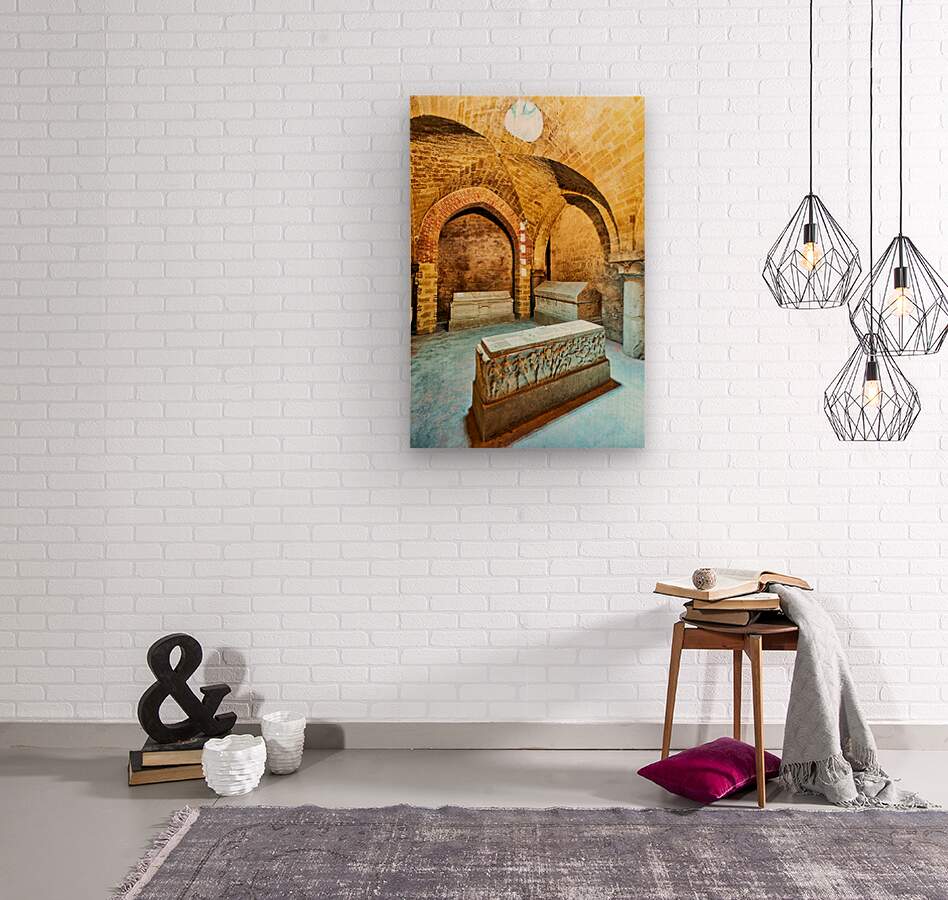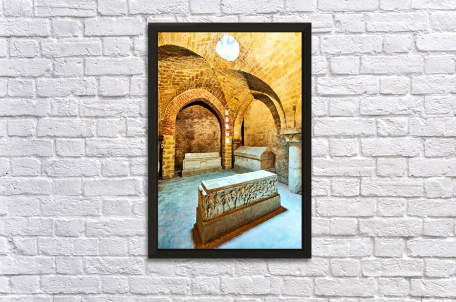 "Exploring the crypt of Palermo Cathedral in Sicily Italy" in a framed print.
