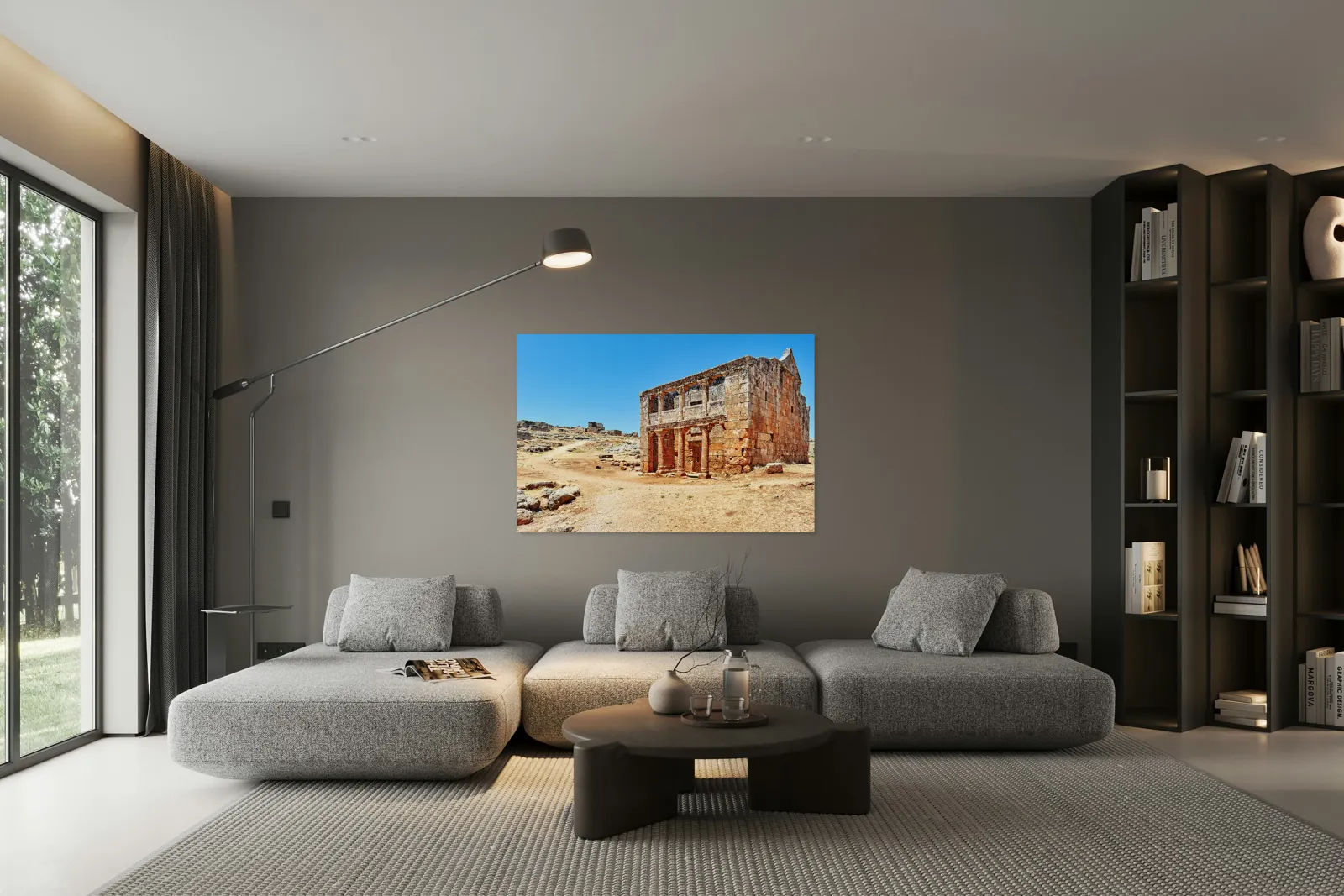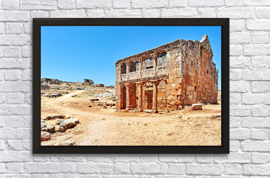 "Exploring historic ruins in Serjilla Syria on a clear day" in a framed print.