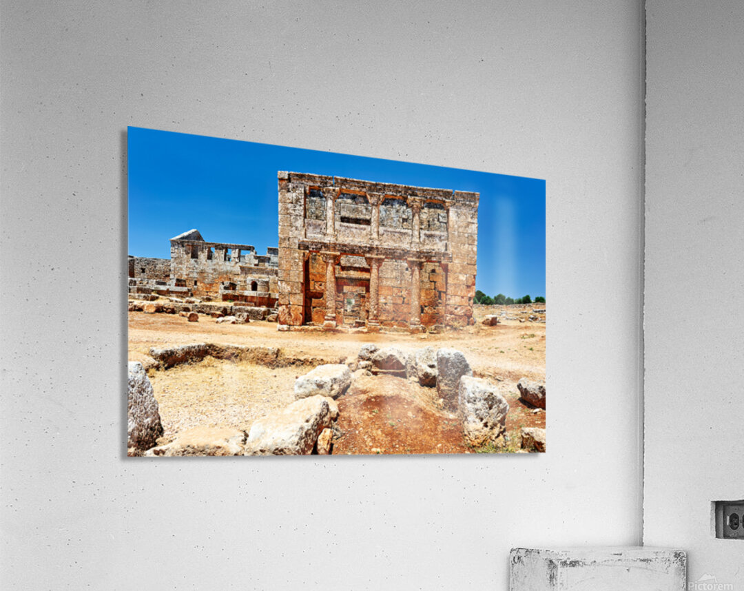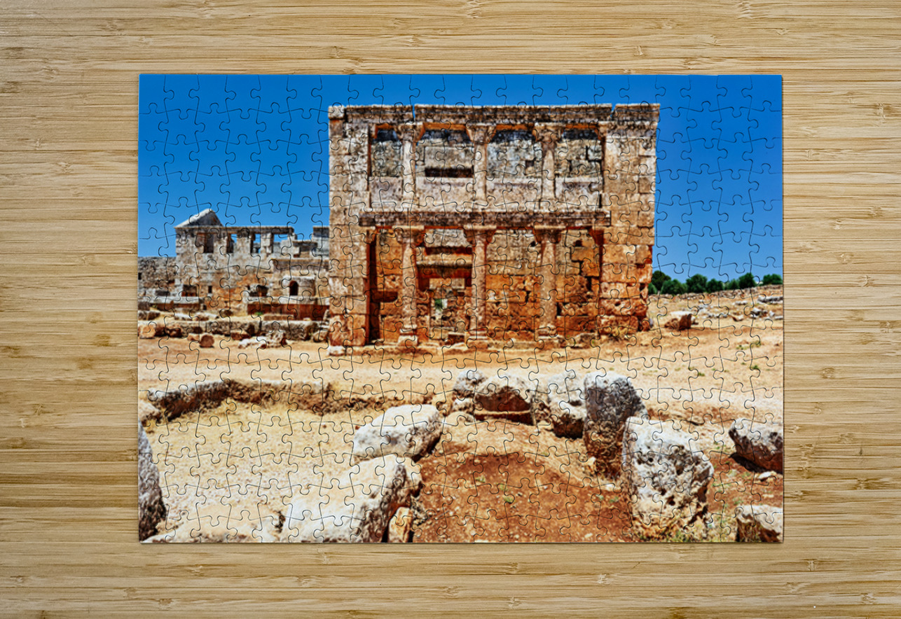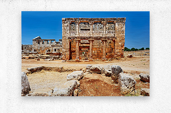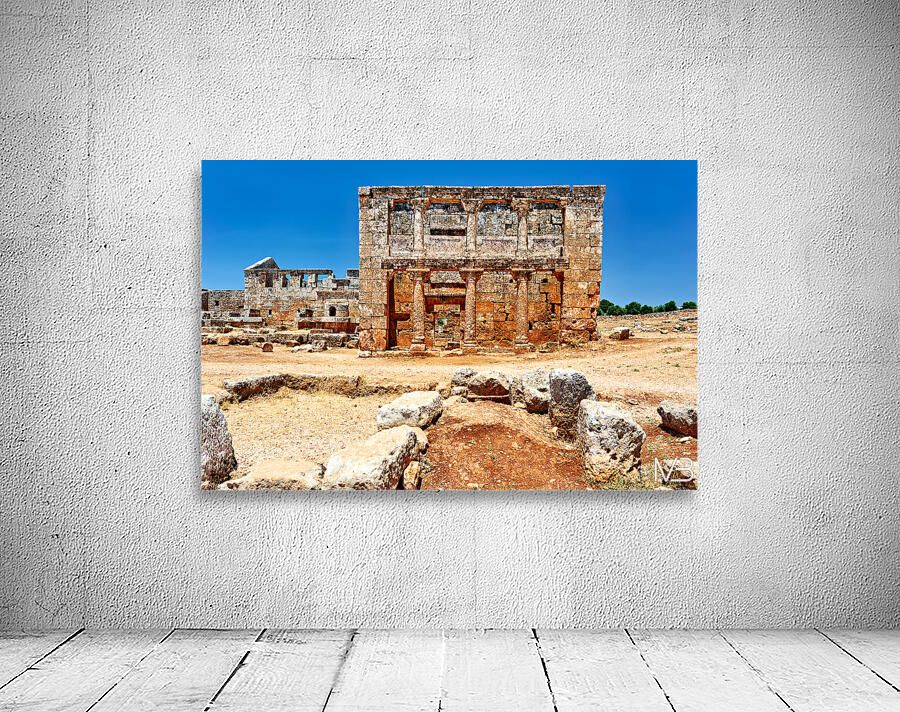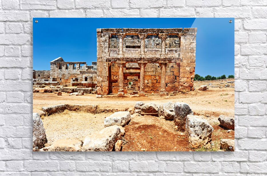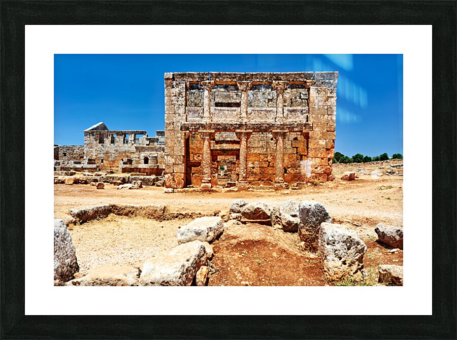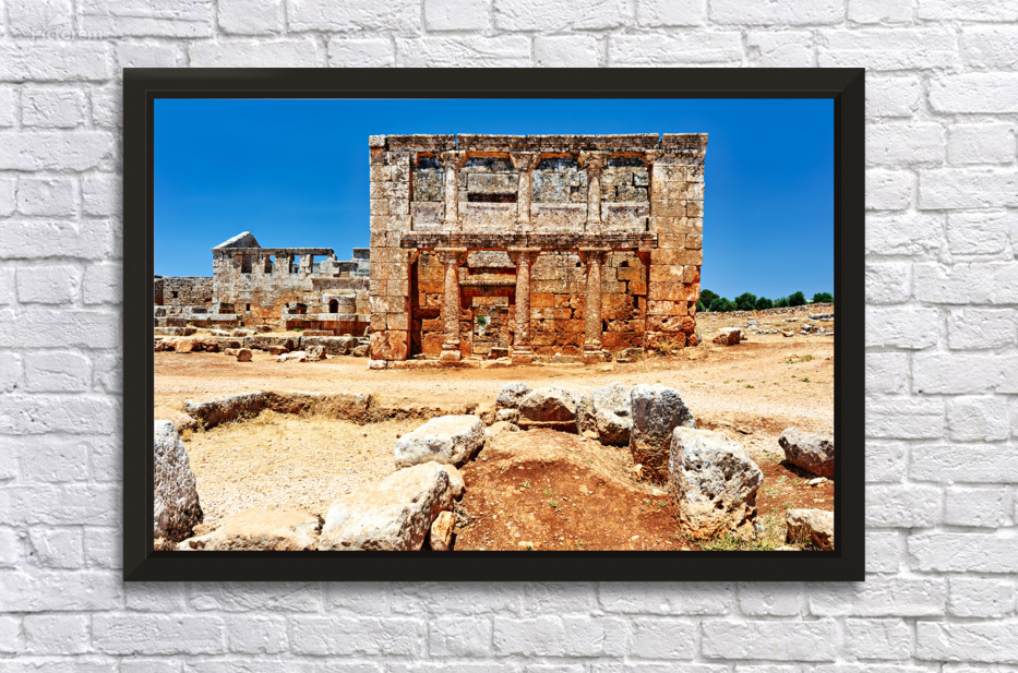 "Exploring the ruins of Serjilla in northwestern Syria" in a framed print.