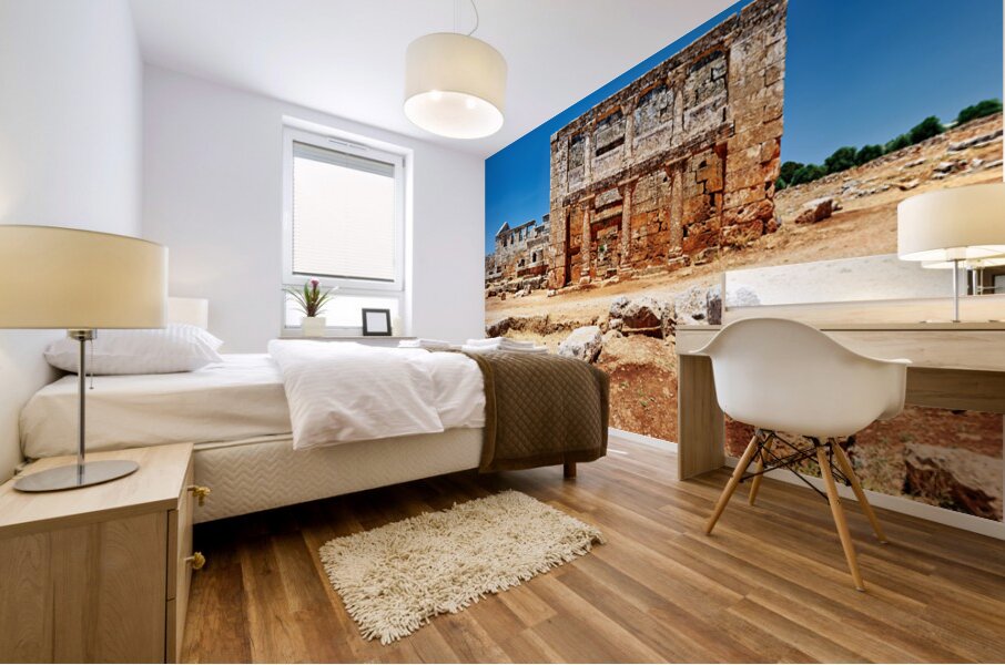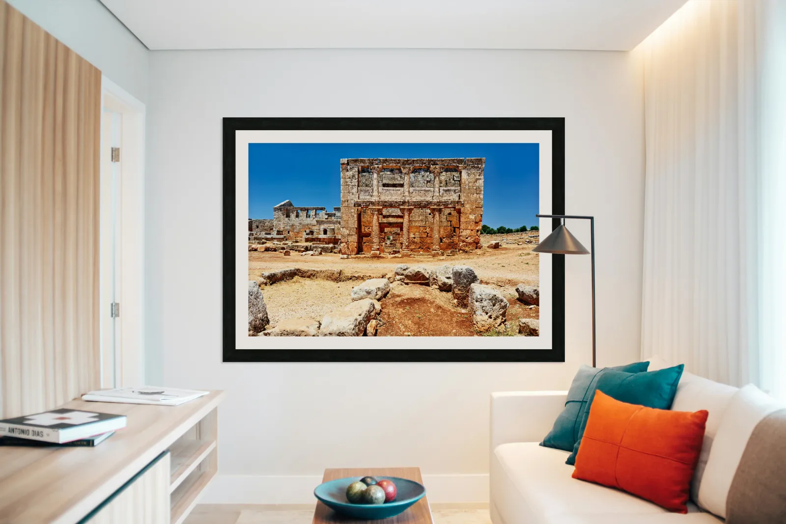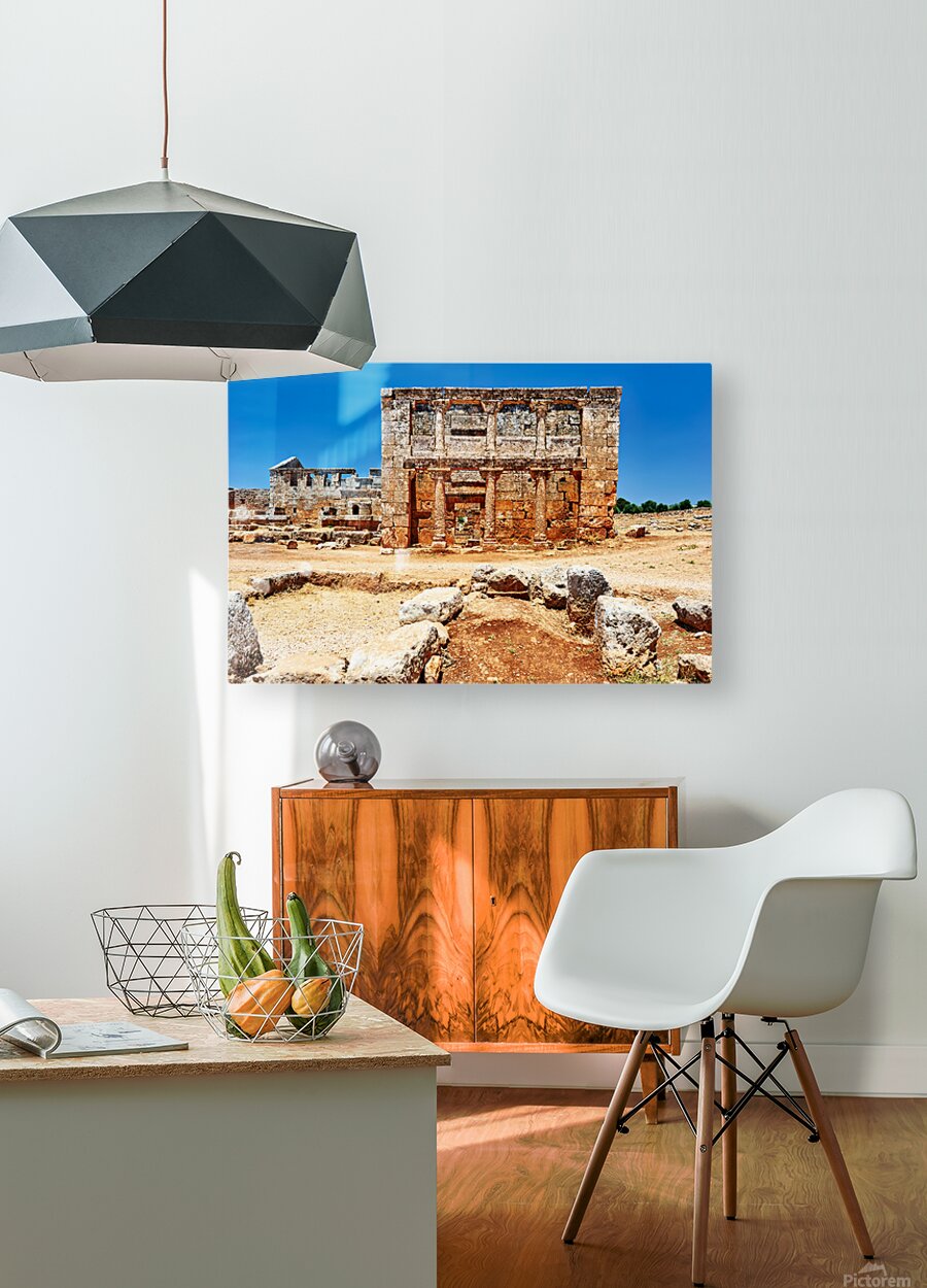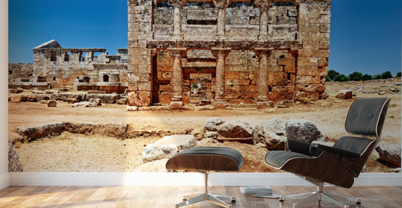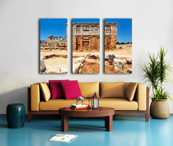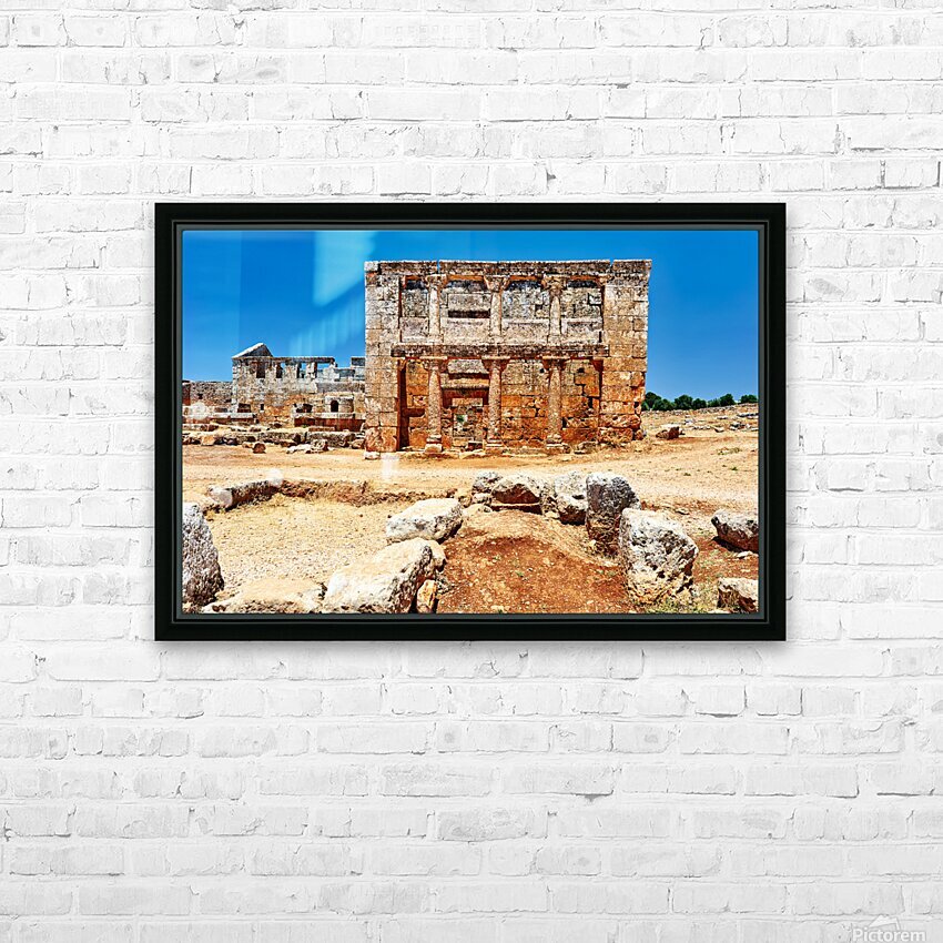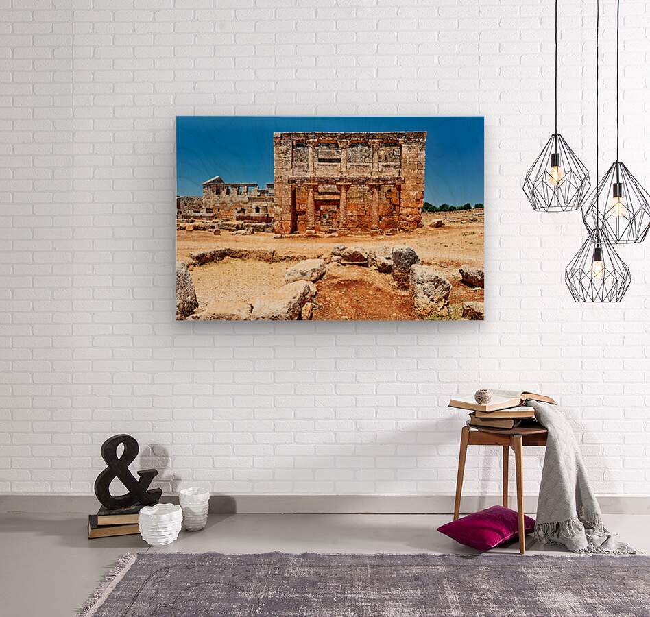 "Exploring the ruins of Serjilla in northwestern Syria" in a framed print.