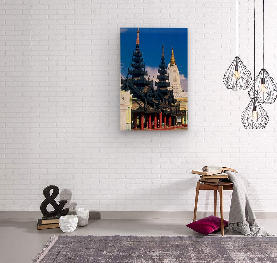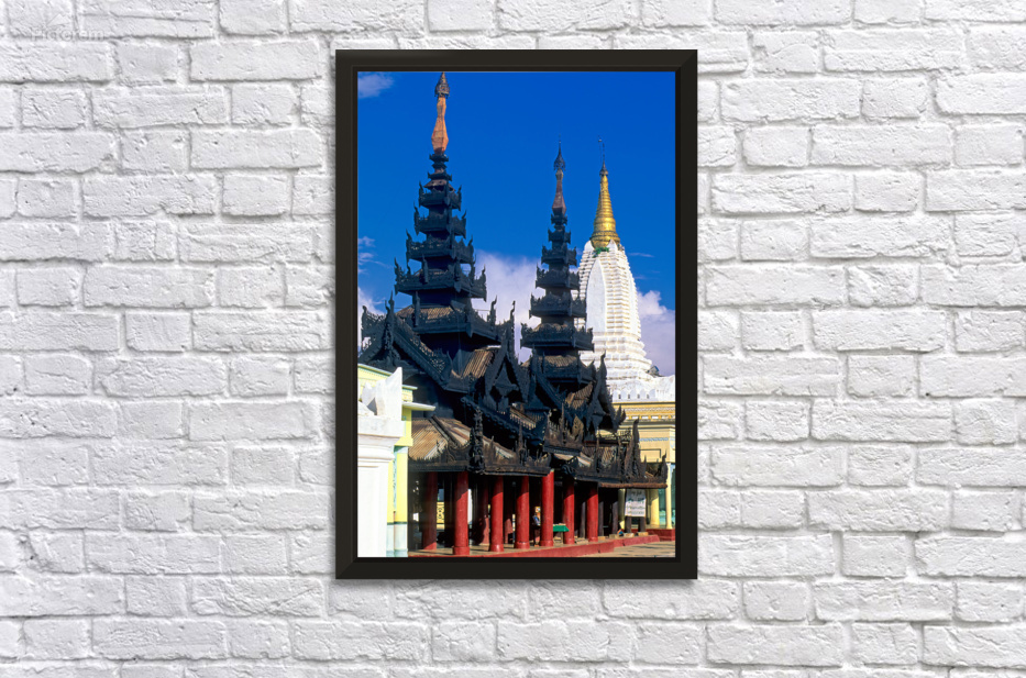 "Visit to Shwezigon Paya in Bagan Myanmar on a clear day" in a framed print.