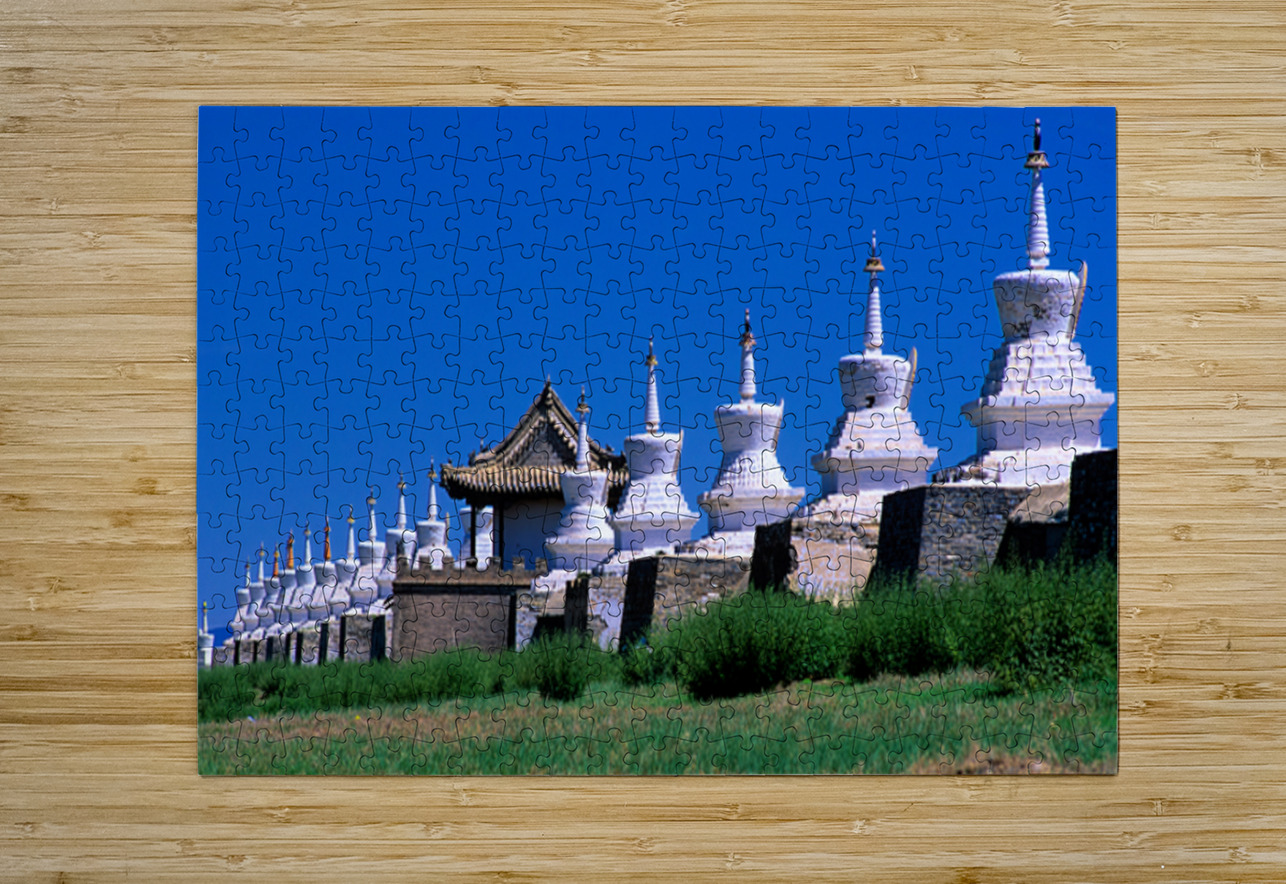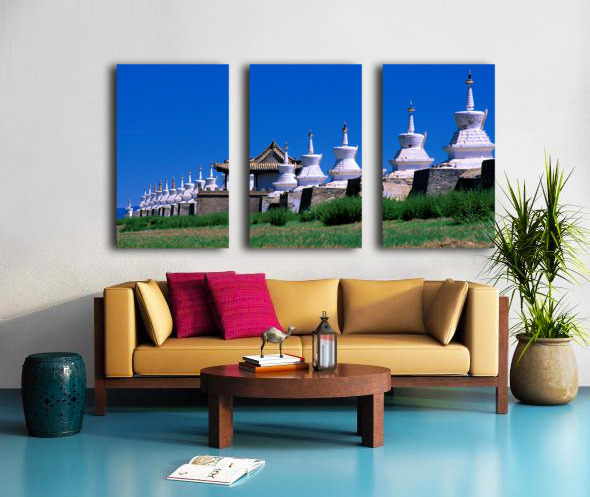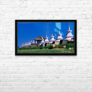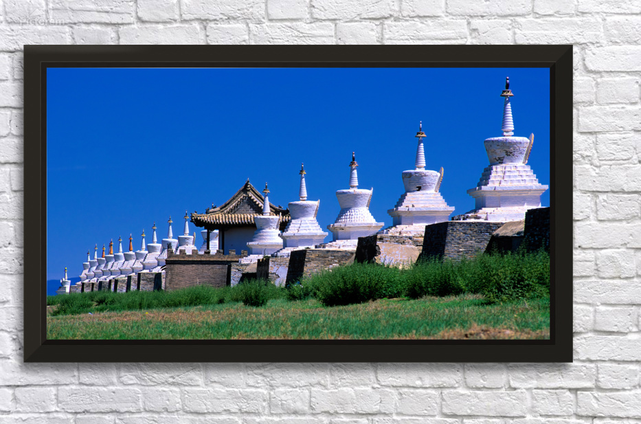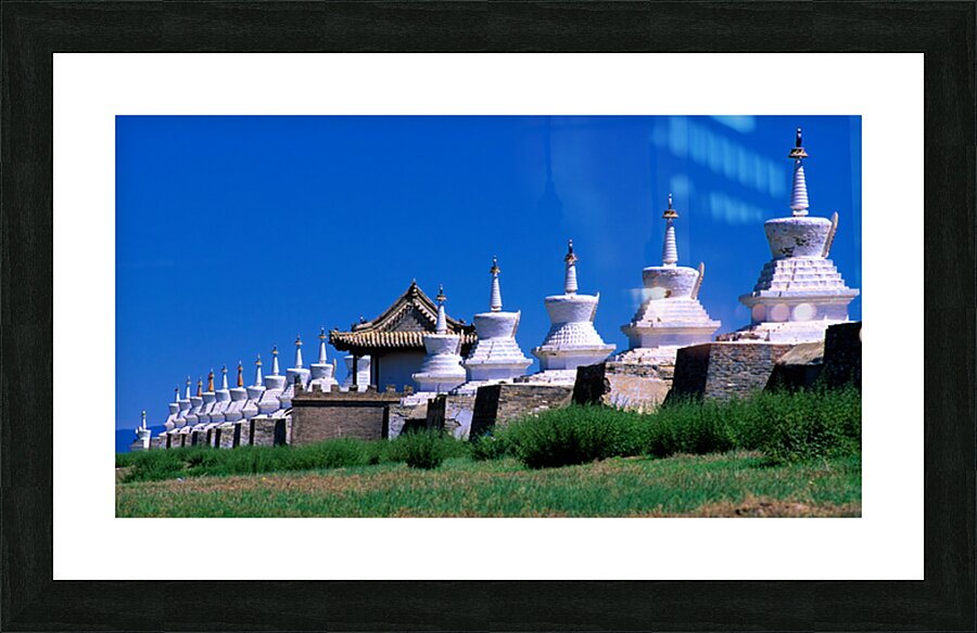"Erdene Zuu Monastery shows ancient architecture in Mongolia" in a framed print.
