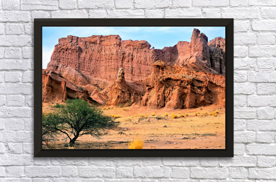 "Eroded red rock formations in Quebrada de las Conchas near Cafay" in a framed print.