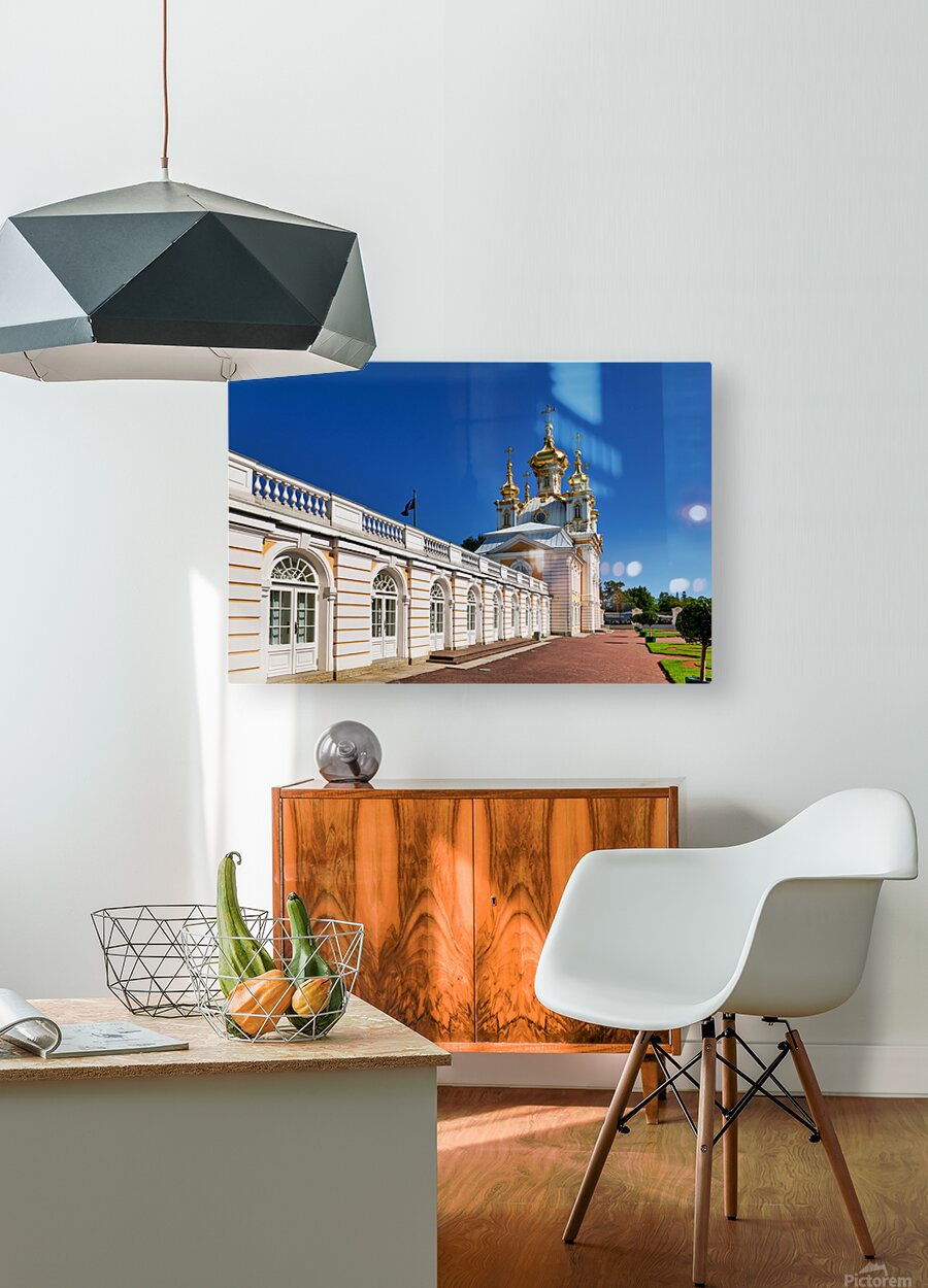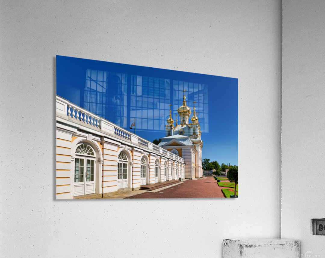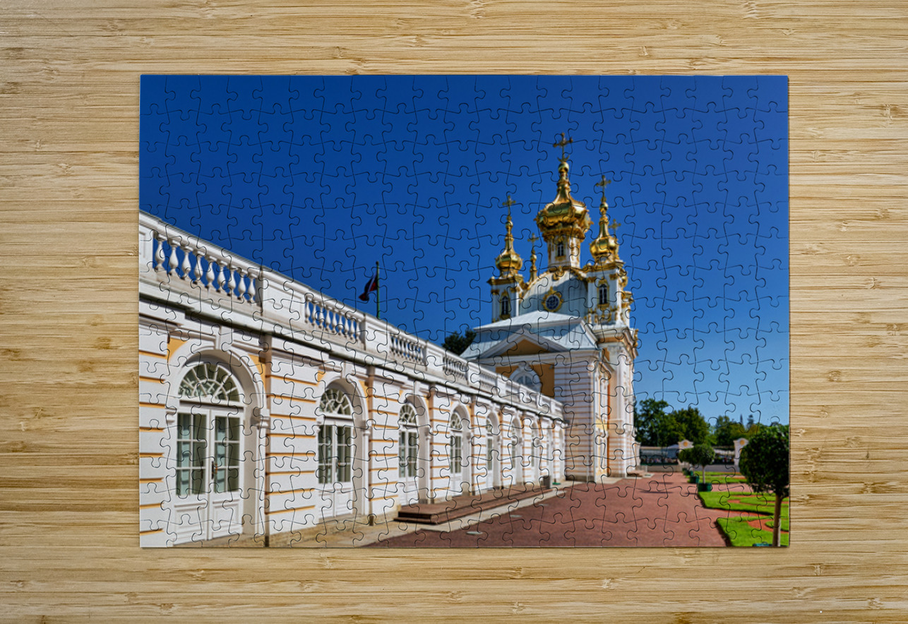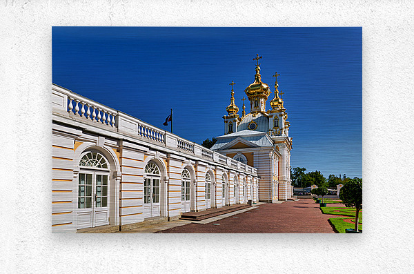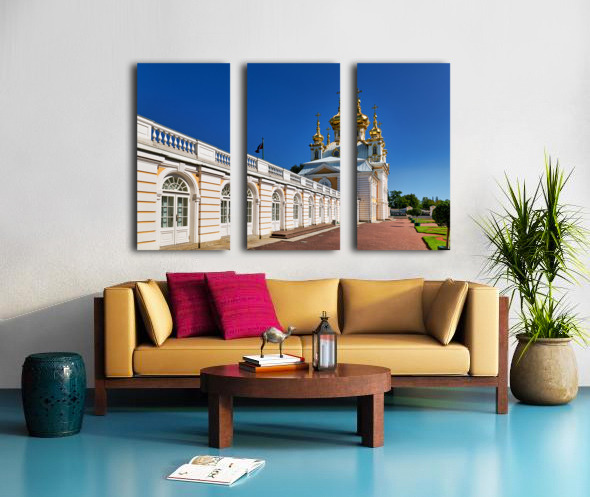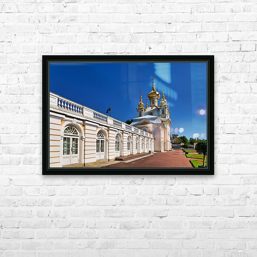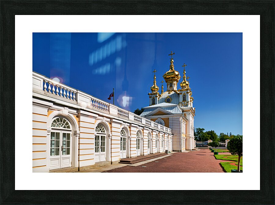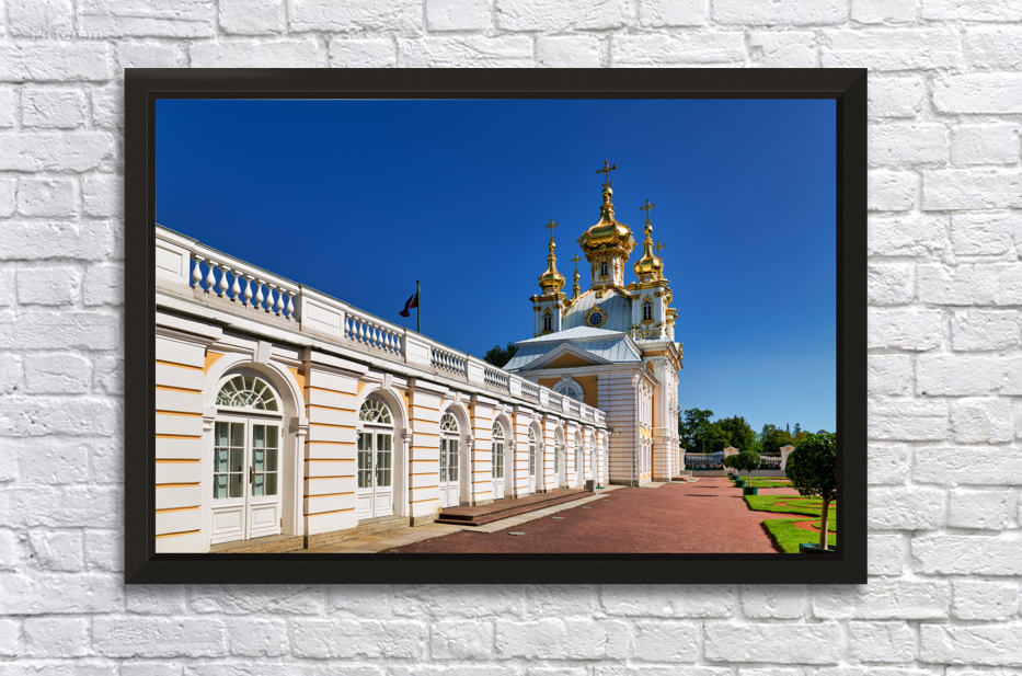 "Exploring peterhof palace in saint petersburg russia" in a framed print.