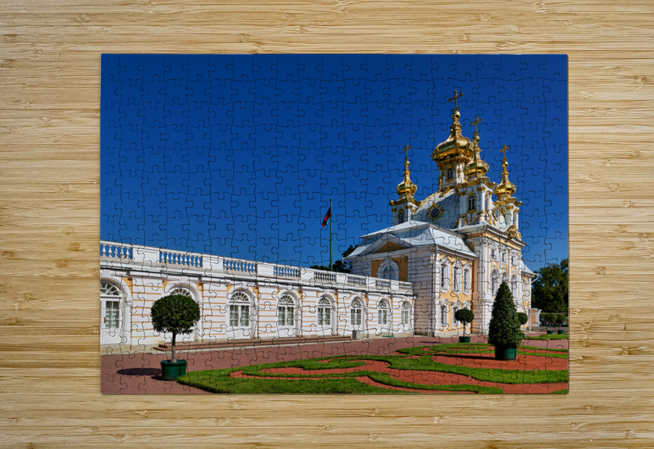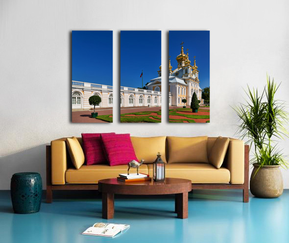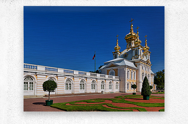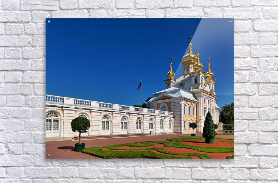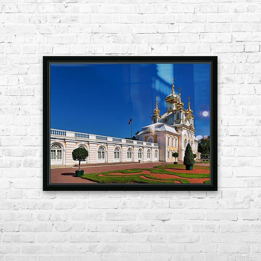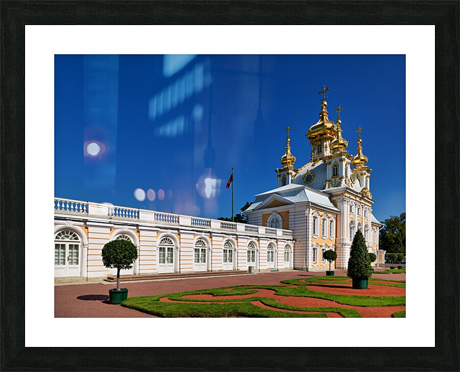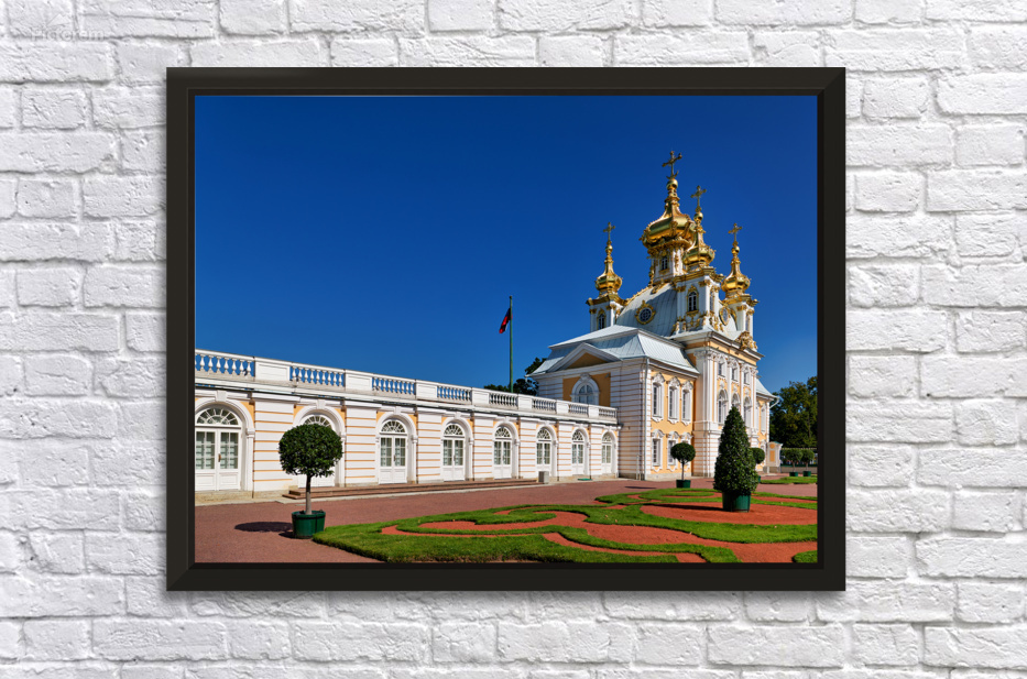 "Exploring peterhof palace in st. petersburg russia" in a framed print.