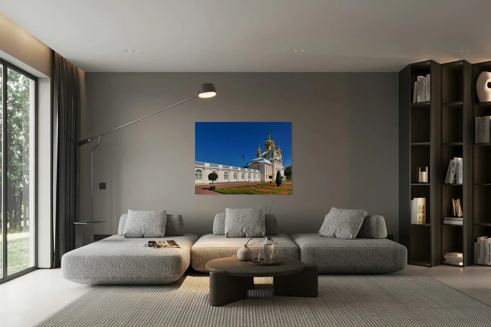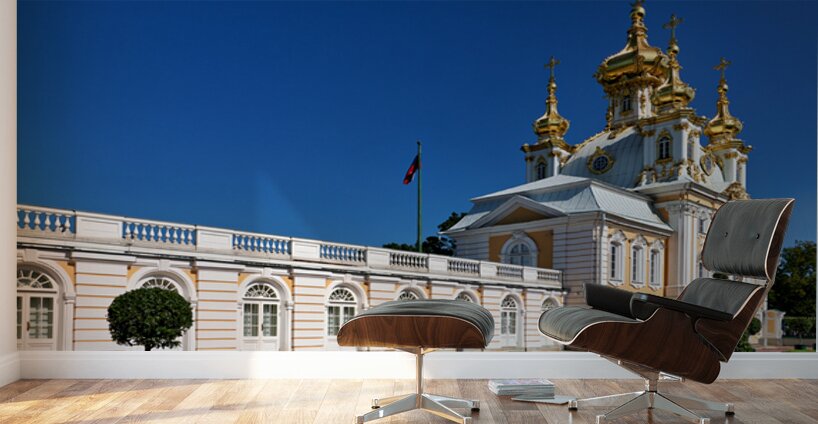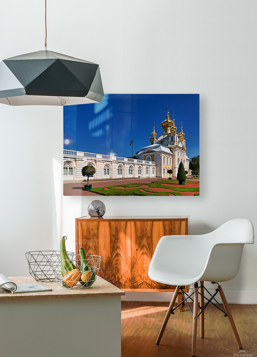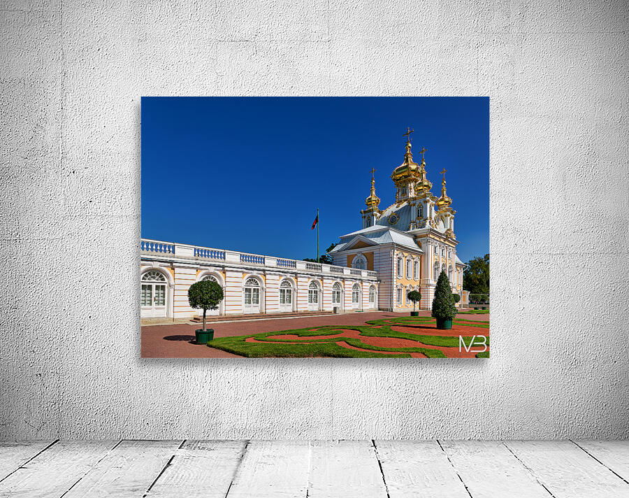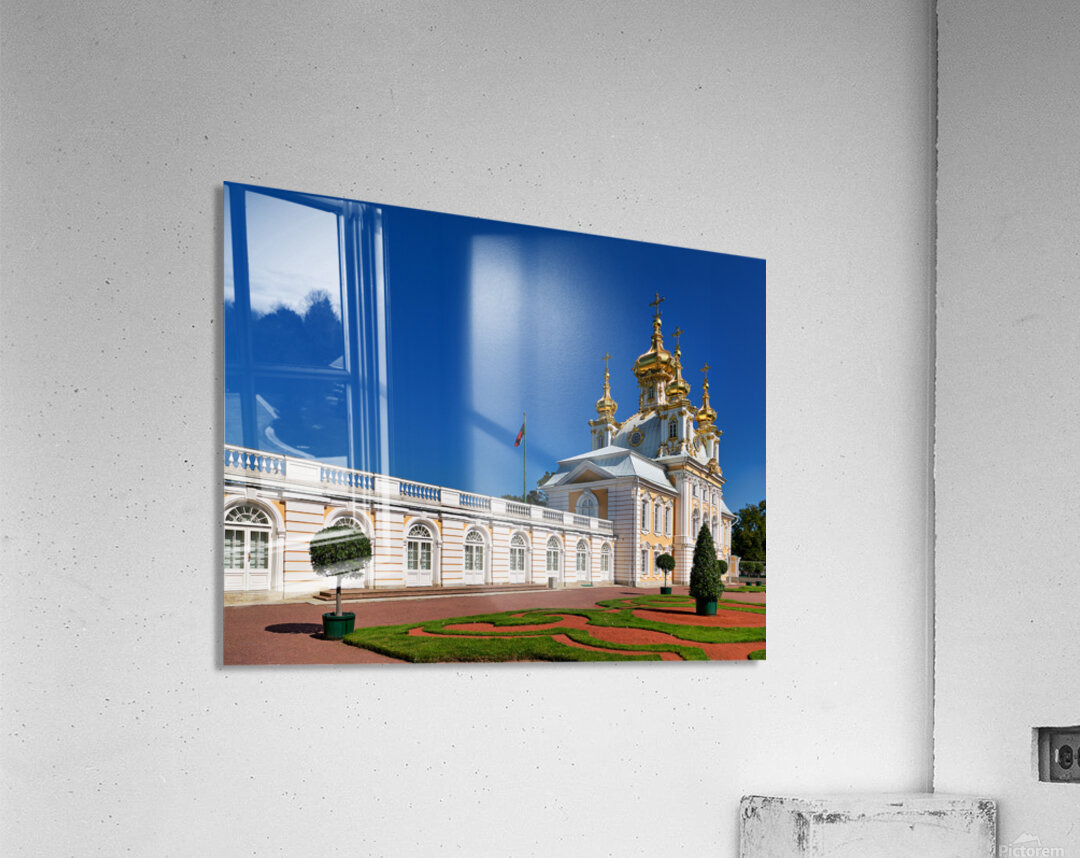 "Exploring peterhof palace in st. petersburg russia" in a framed print.