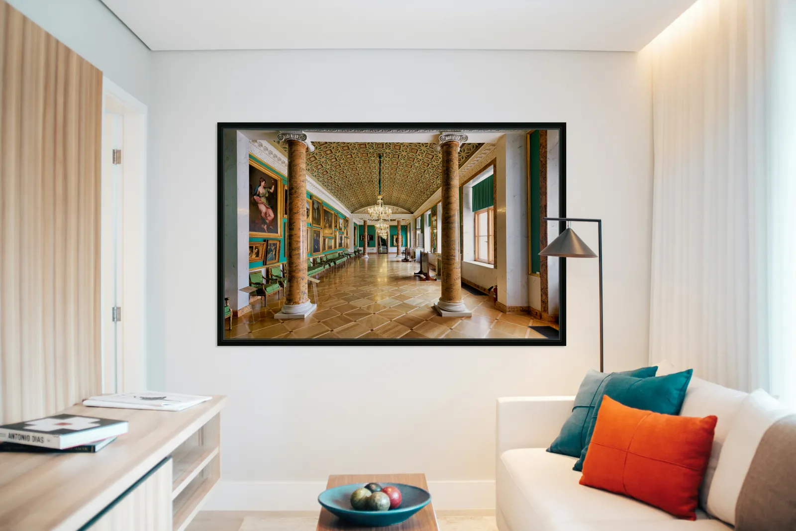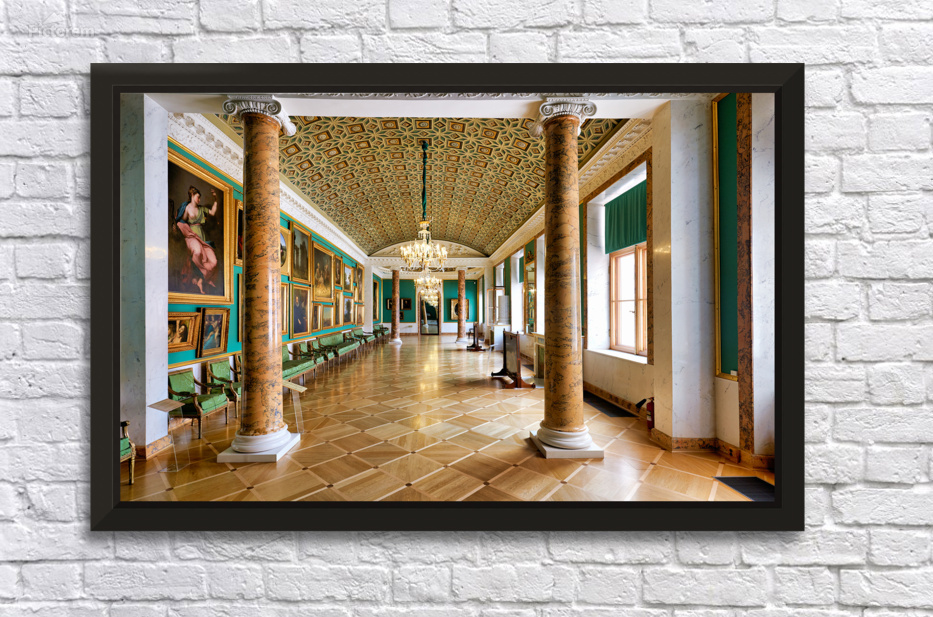 "Stroganov Palace interior view in Saint Petersburg" in a framed print.