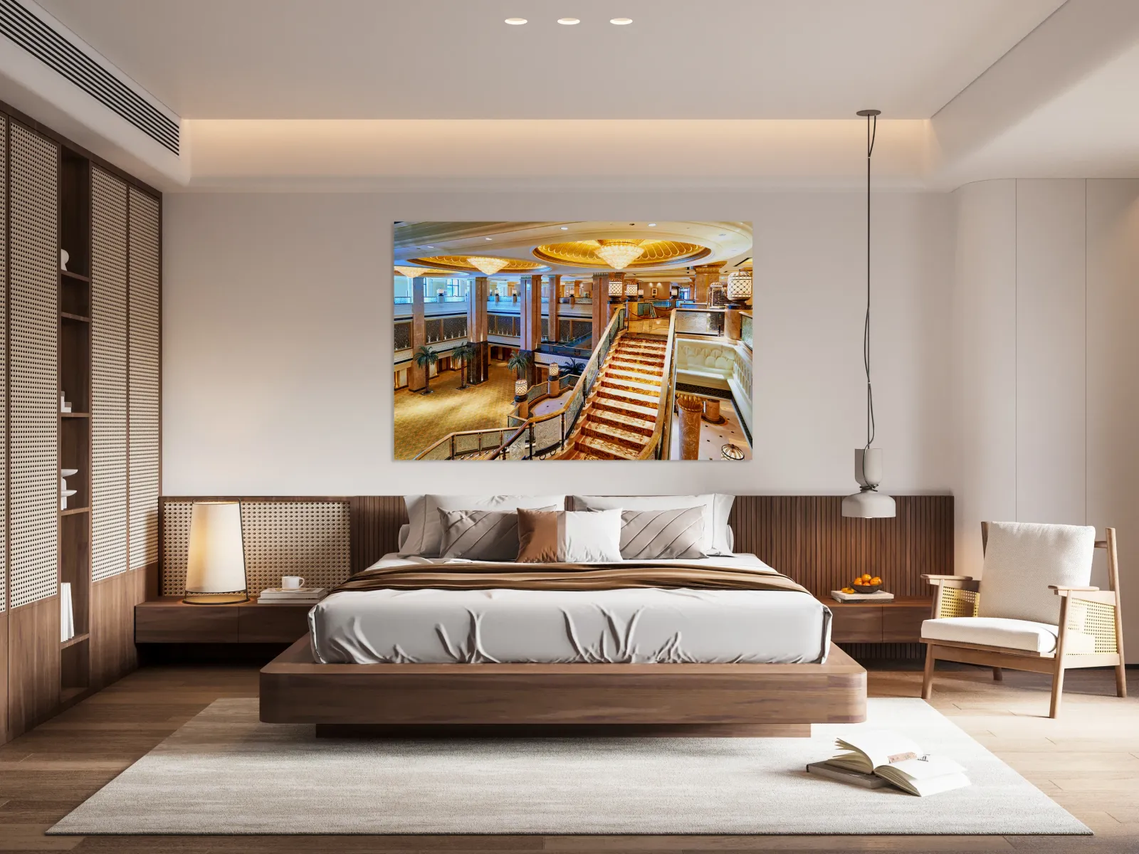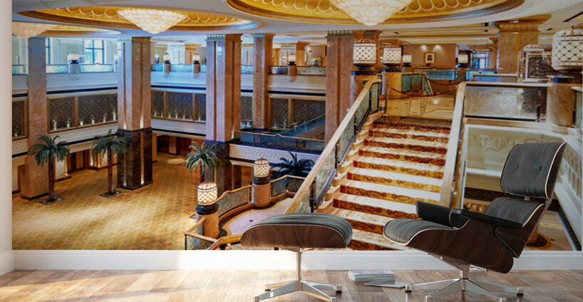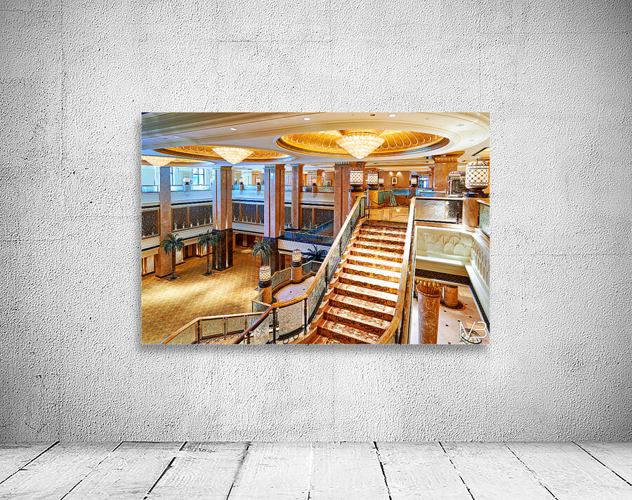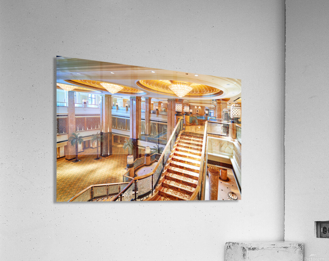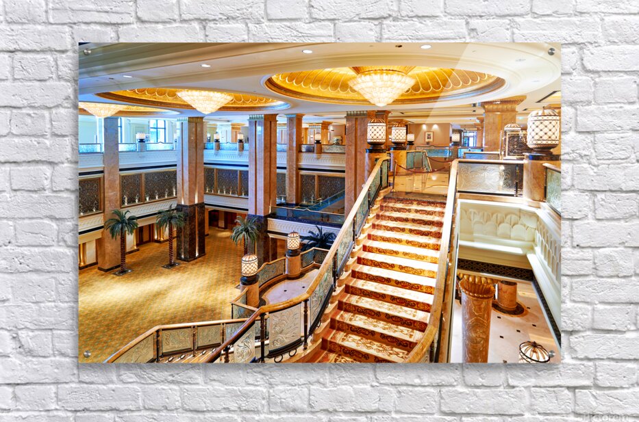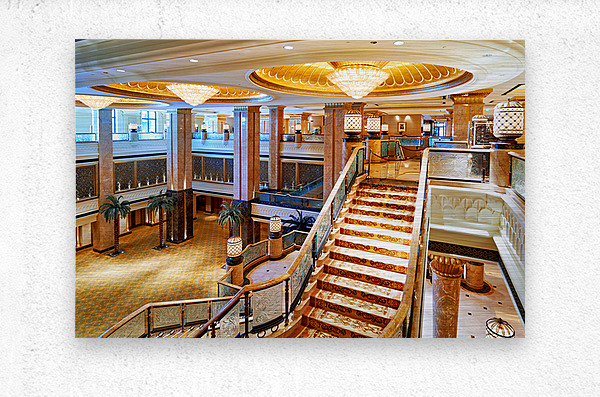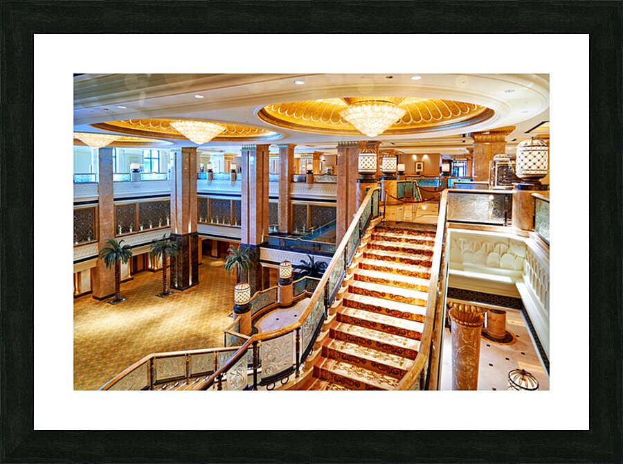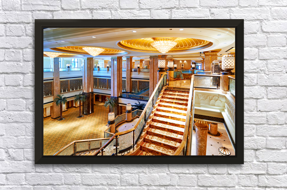 "Interior staircase at Abu Dhabis Emirates Palace Hotel" in a framed print.