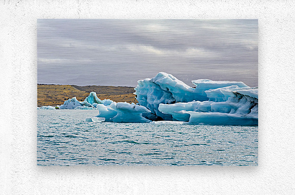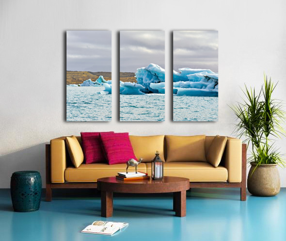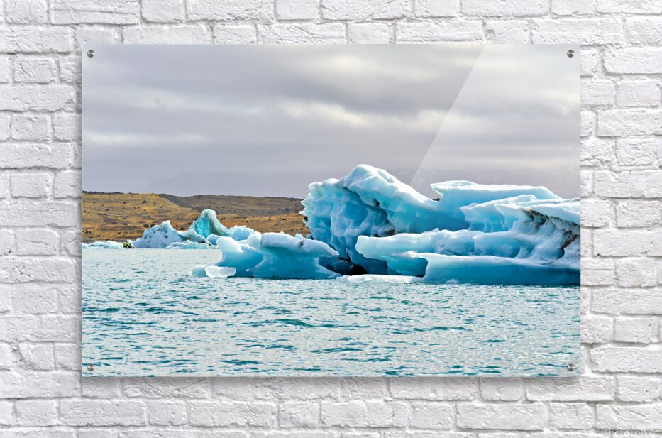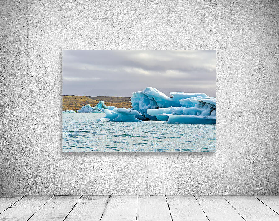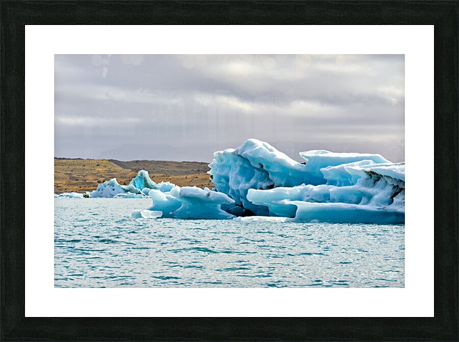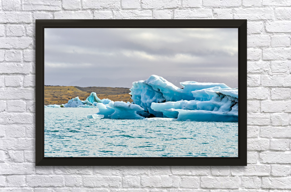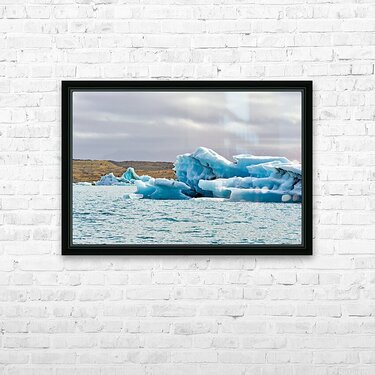 "Glacier ice formations at Jokulsarlon Lagoon in Iceland" in a framed print.