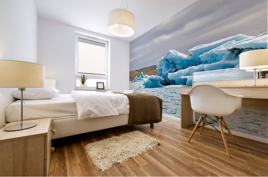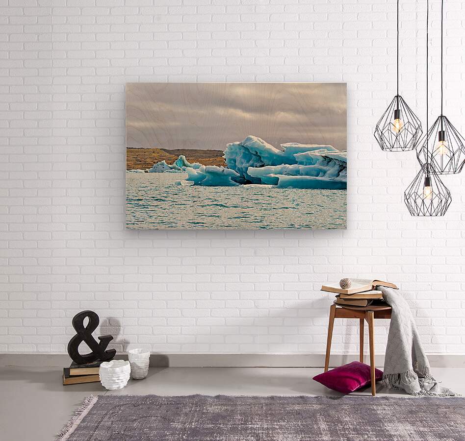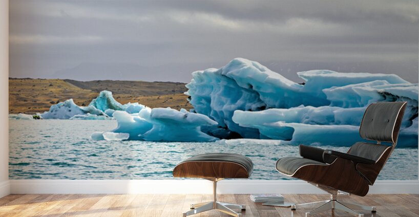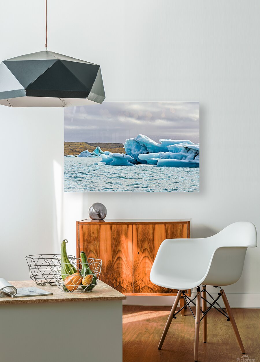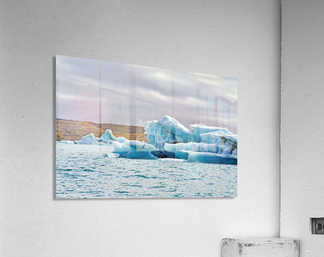 "Glacier ice formations at Jokulsarlon Lagoon in Iceland" in a framed print.