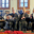 Four musicians play traditional instruments in Istanbul Turkey while whirling dervishes perform during a sufi event. The atmosphere is lively.
