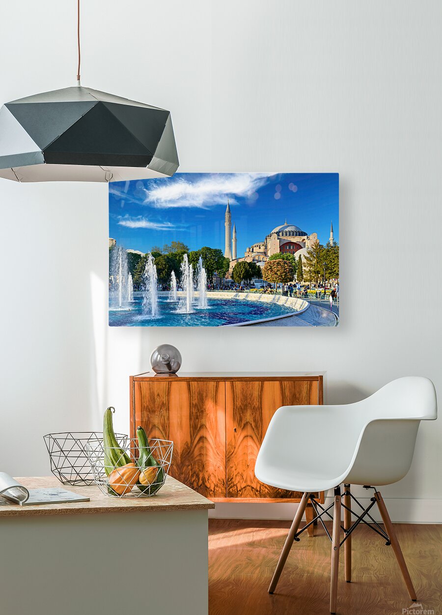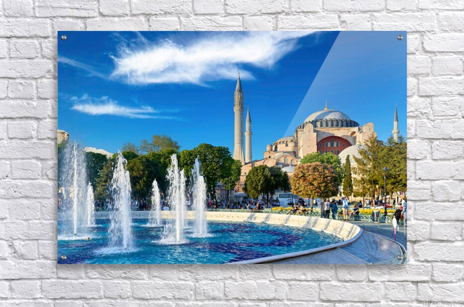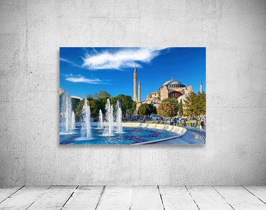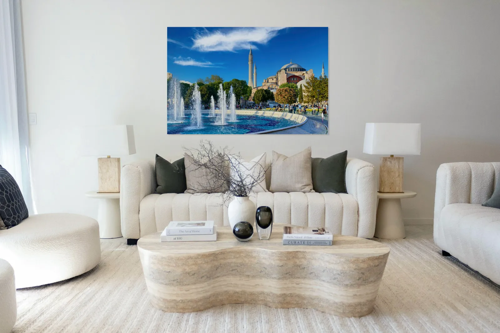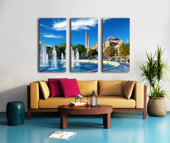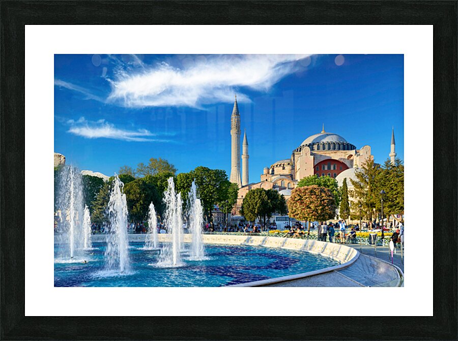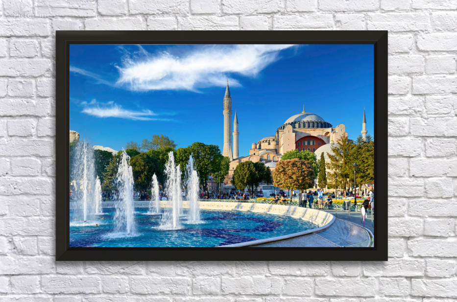 "Hagia Sophia in Istanbul with fountain in front" in a framed print.