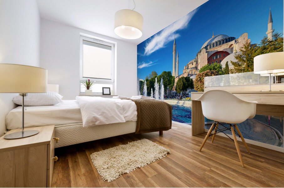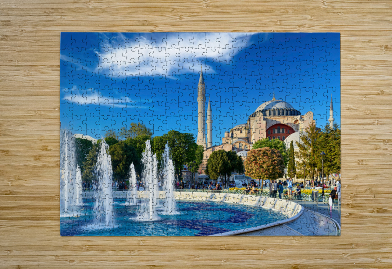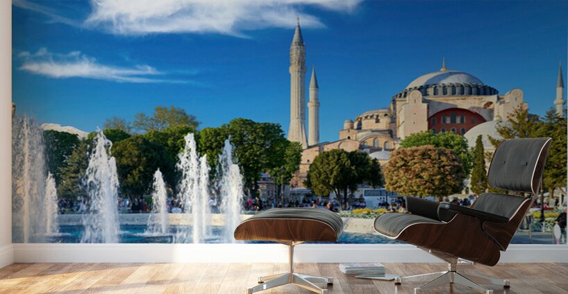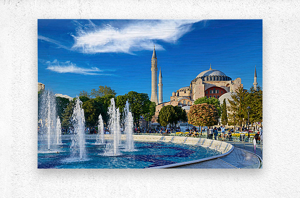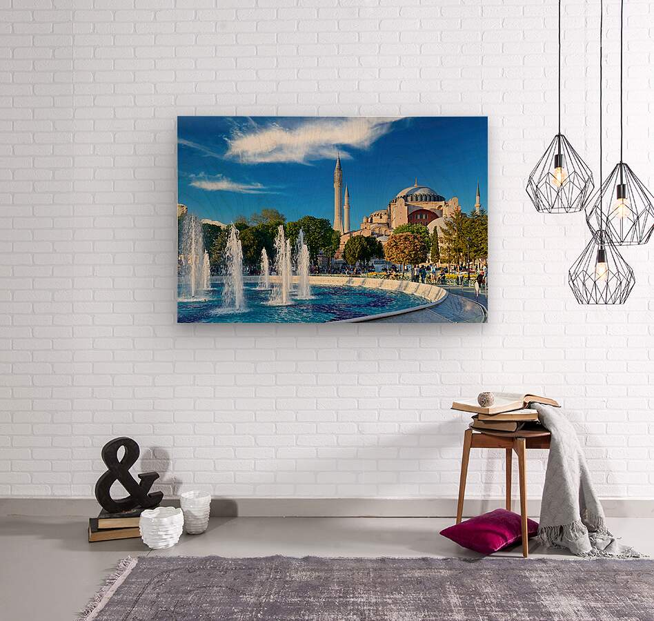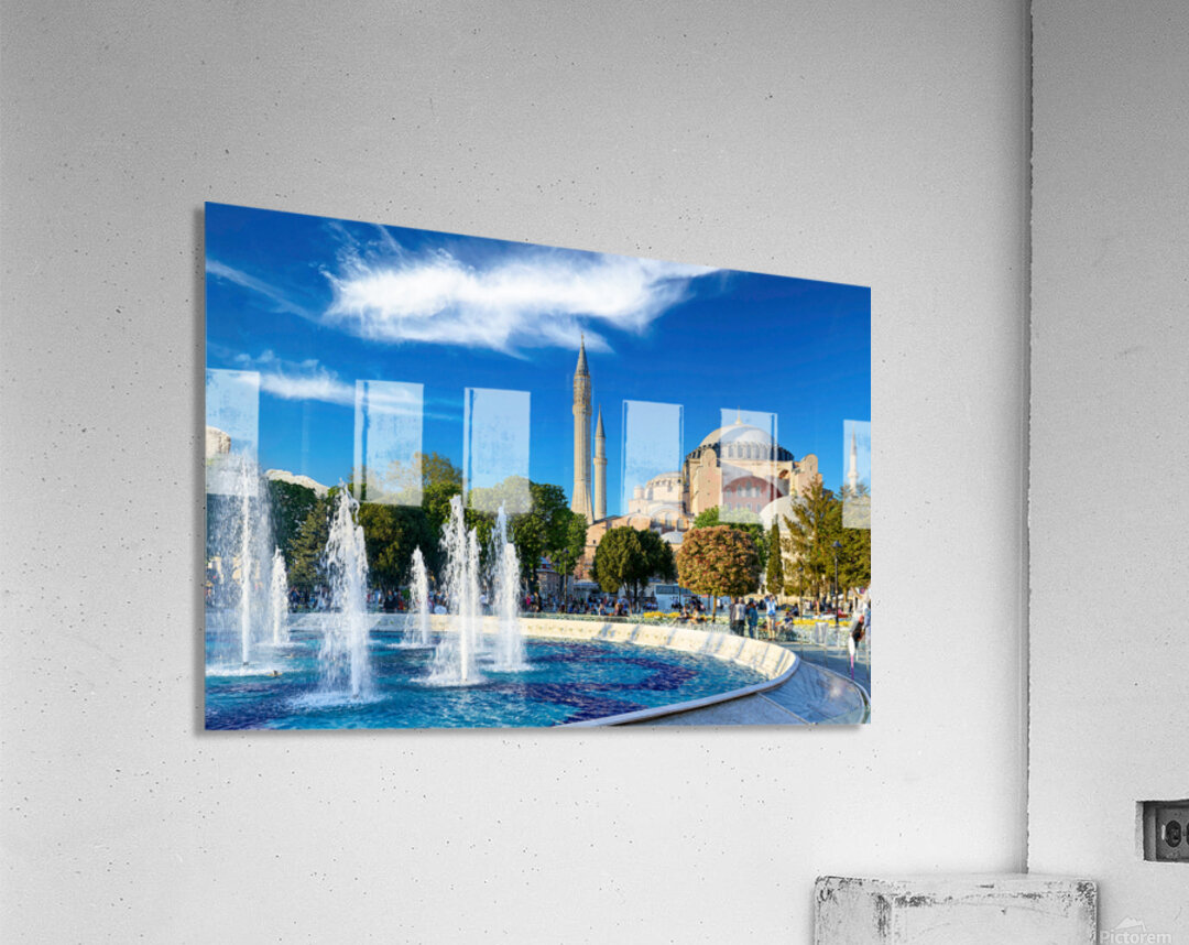 "Hagia Sophia in Istanbul with fountain in front" in a framed print.