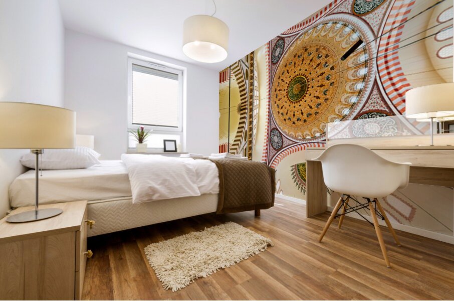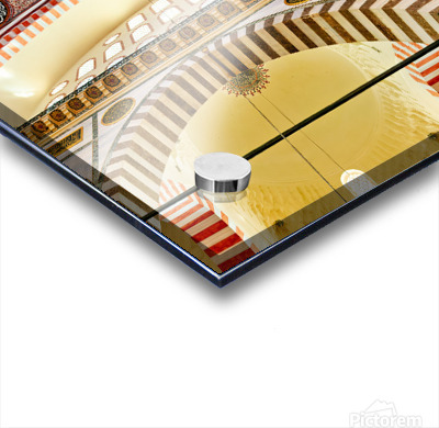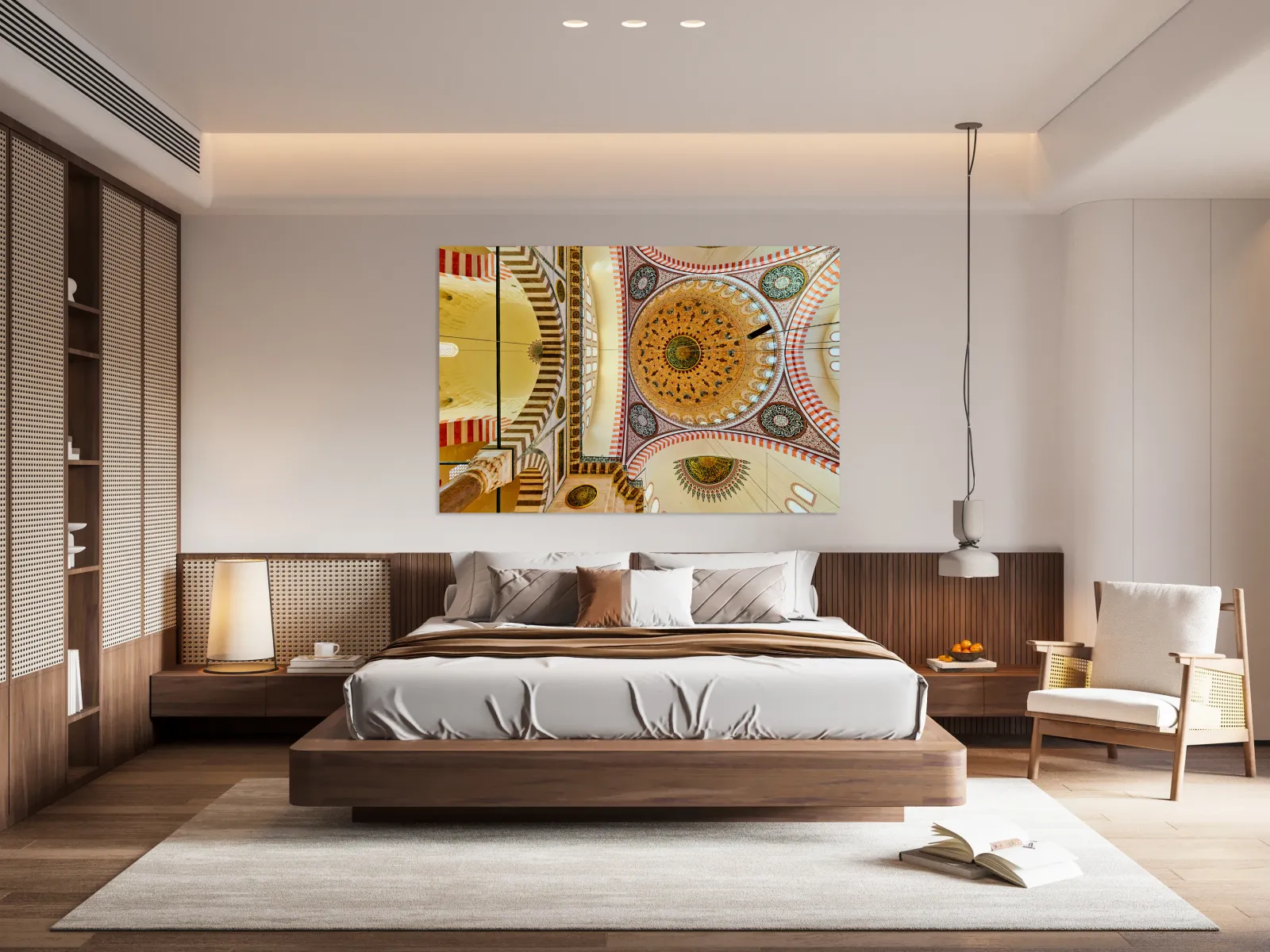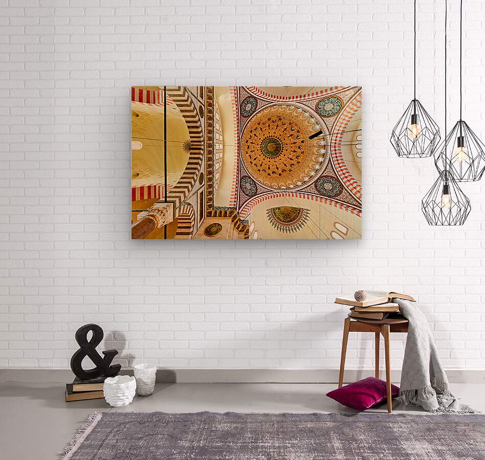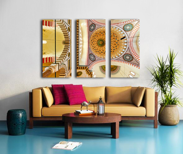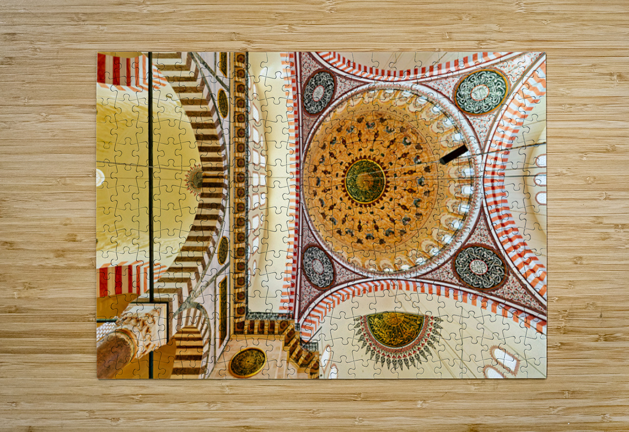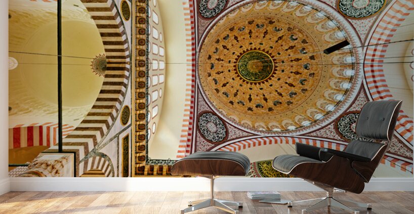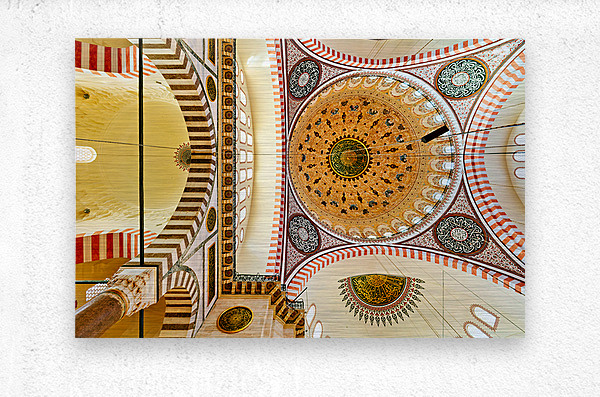"Suleymaniye Mosque ceiling shows dome and architecture details" in a framed print.