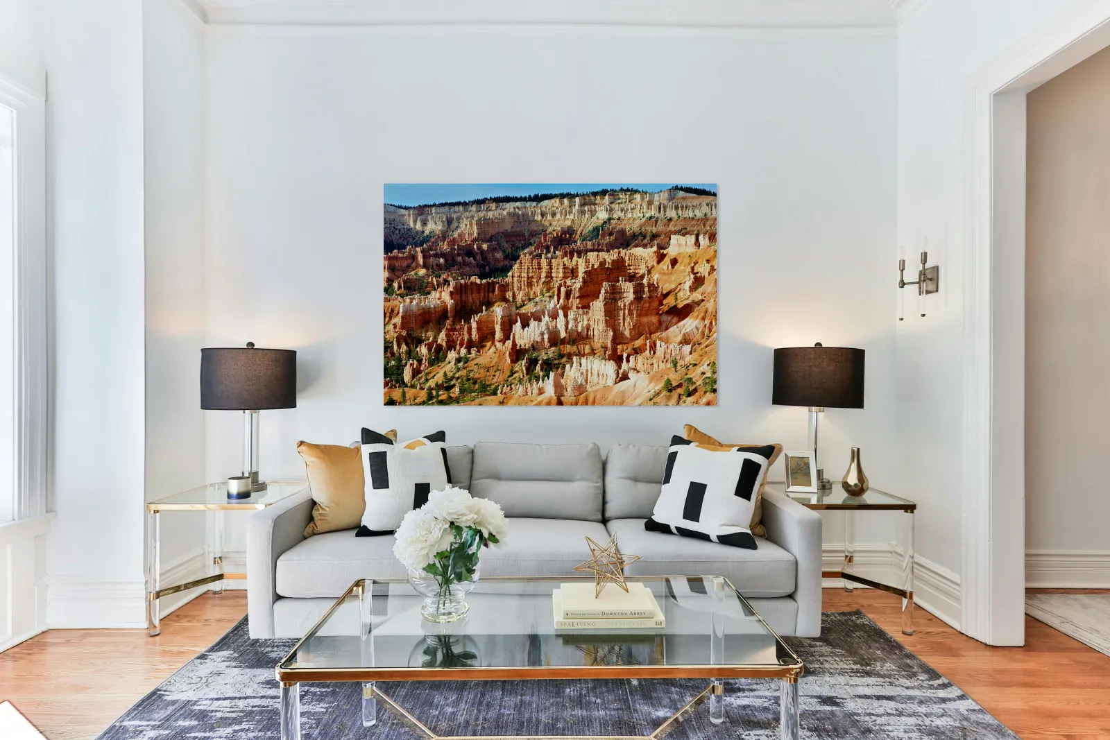 Printed to the edge - Ready to hang - provided with 4 premium polished aluminum stand off ( wall screws and mounting hardware provided )