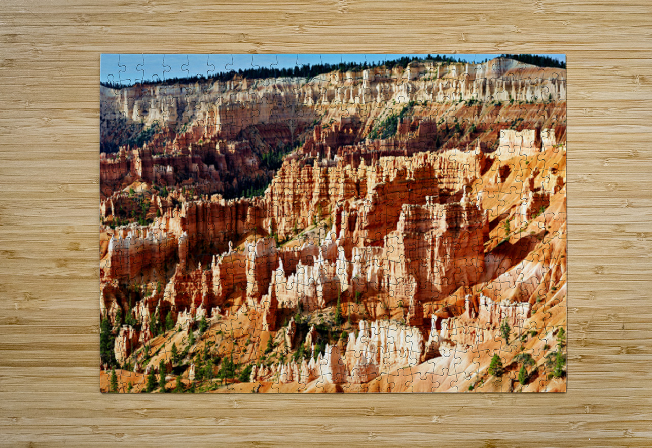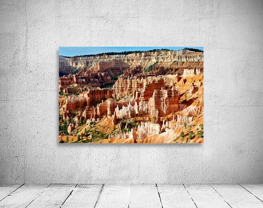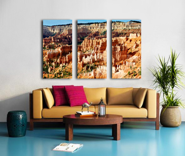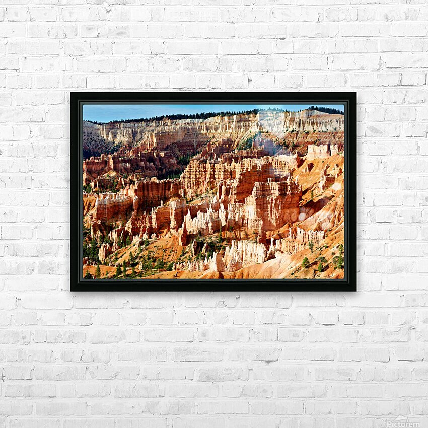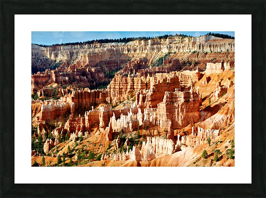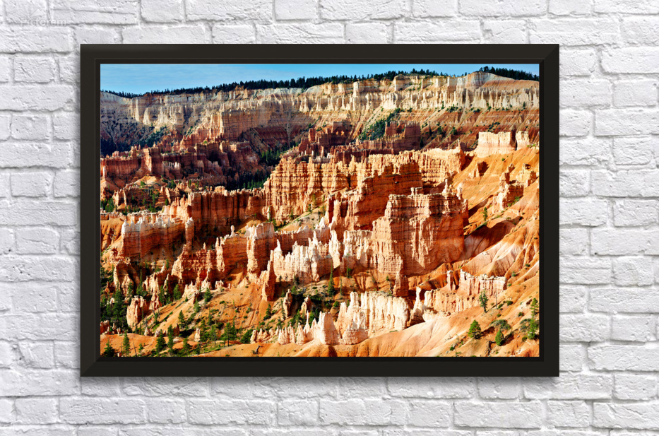 "Sunrise at Bryce Canyon National Park with rock formations" in a framed print.