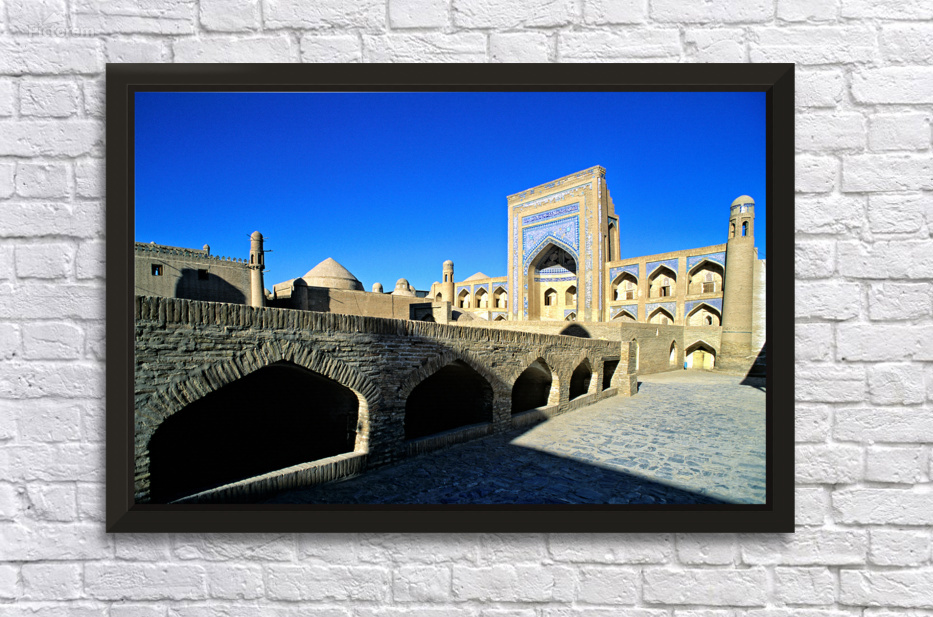 "Exploring the ancient architecture in Khiva Uzbekistan" in a framed print.